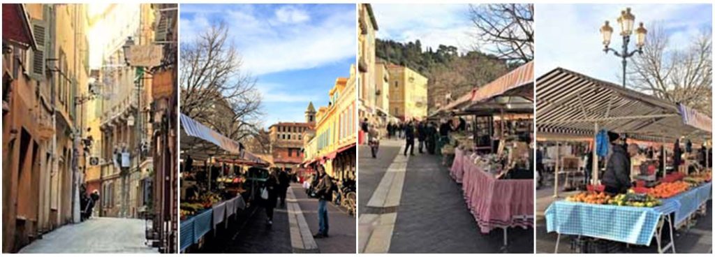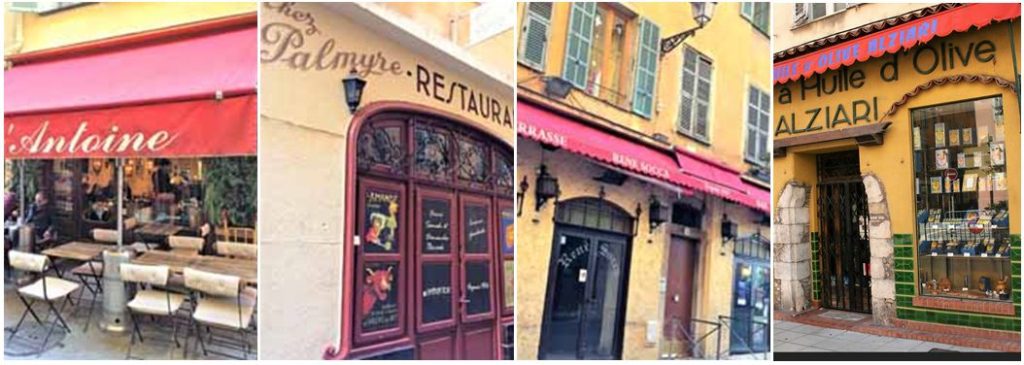 Kukat, hedelmät, vihannekset ja kaikki paikalliset pikkuherkut ostetaan luonnollisesti Cours Saleyalta. Parhaat lihat, parhaaseen hintaan saa St. François -aukiolla sijaitsevasta Chez François -lihakaupasta. Täällä kannattaa varautua jonottamaan, mutta vastapainona kuulet mistä kaupungissa puhutaan ja saat takuuvarmasti hyvää lihaa, hyvään hintaan. Kalan ystävää hemmotellaan aivan lihakaupan kupeessa, sillä samalle aukiolle nousee päivittäin, maanantaita lukuun ottamatta, pieni mutta kattava kalatori. Parhaat ja puhtaimmat mausteet tarjoaa La Maison d’Olive, kahvit ja teet myy Cafés Indien. Parhaasta viinikellarista kilpailevat oikeustalon laidalla sijaitseva Les Grandes Caves de Caprioglio sekä kaupungintalon kupeessa sijaitseva Coté Vin ja oliiviöly ostetaan Alziari’lta. Jälkiruoat haetaan oikeustalon kulmilta. Leivokset haetaan LAC’sta, patongit ja muut leipomoherkut Boulangerie de Palais’ta. Suklaat ja makeiset sen sijaan haetaan ikonisesta Maison Auerista, jossa puitteet ostoksille ovat mitä upeimmat. Jätskit syödään jo legendaksi muodostuneella Fenocchiolla, joka on Nizzan ylpeys, ja syystä. Vuonna 1966 perustettu jäätelöateljee valmistaa yhäkin herkkunsa kaupungin laitamilla ja työllistää lukuisia nizzalaisia. Kaikkiaan yli 94 lajikkeesta on vaikea valita suosikkiaan! Perinteiset vaihtoehdot ovat joutuneet tekemään tilaa eksoottisille kavereilleen, kuten mojitolle, kaktukselle ja basilikalle.