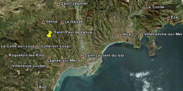 Sisämaassa, noin 20 kilometrin päässä Nizzasta sijaitsee Saint-Paul de Vencen keskiaikainen kylä, joka rakennettiin hyvän matkan päähän rannikosta, jotta sen asukkaat saisivat olla rauhassa saraseenien hyökkäyksiltä. Kallionjyrkänteelle 800-luvulla perustettu kylä rakennettiin paksujen muurien suojaan. Kylän mutkikas sisäänkäynti hämäsi vihollisia. Pääportti on kapea ja syvä holvikaari, joka oli helppo sulkea hyökkäyksiä vastaan ja suojasi vartijoita sateelta ja auringolta. Kylän keskipisteenä oli Saint-Paul de Vencen linna, josta on jäljellä enää vartiotorni. Tässä kolmikerroksisessa kivitornissa on 1700-luvulta saakka toiminut kaupungintalo. St. Pauliin rakennettiin Frans I:n hallituskaudella v. 1537 uudet muurit Savoijin, Itävallan ja Piemonten hyökkäyksiä vastaan. Suuri osa kylän asukkaista joutui jättämään kotinsa, jotta muurin rakentamista varten saatiin rakennusmateriaalia. Kyläläiset eivät muuttaneet kauas kotoaan ja näin sai alkunsa lähistöllä sijaitseva La Colle-sur-Loup’n kylä.