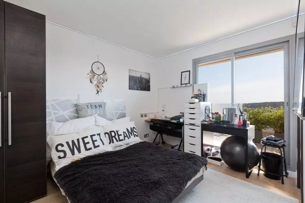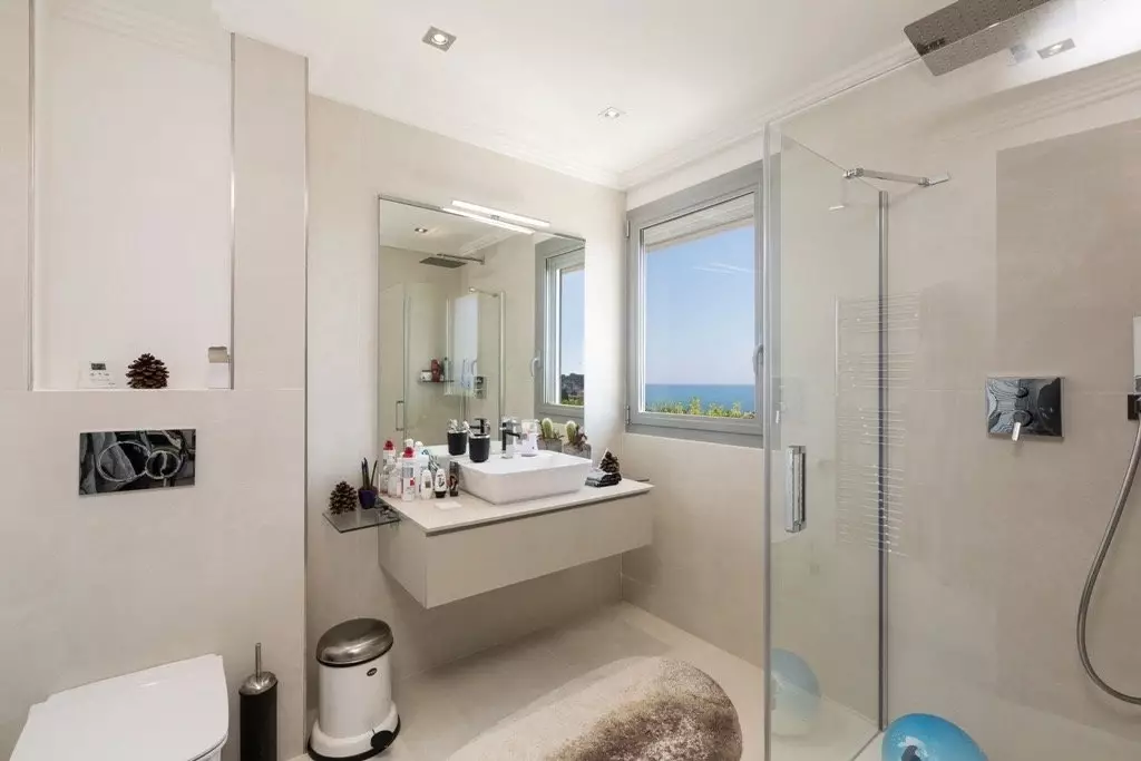 Asunnossa on eteinen, olohuone, avokeittiö, kolme makuuhuonetta, kolme kylpyhuonetta sekä erillinen wc. Kaikista huoneista on käynti n. 200 m2:n terassille, jolta voi ihailla kaupunkia kaikkiin suuntiin ja auringonlaskua Estérelin kukkuloiden taa. Asuntoon kuuluu kaksi autotallia ja kaksi kellarivarastoa.