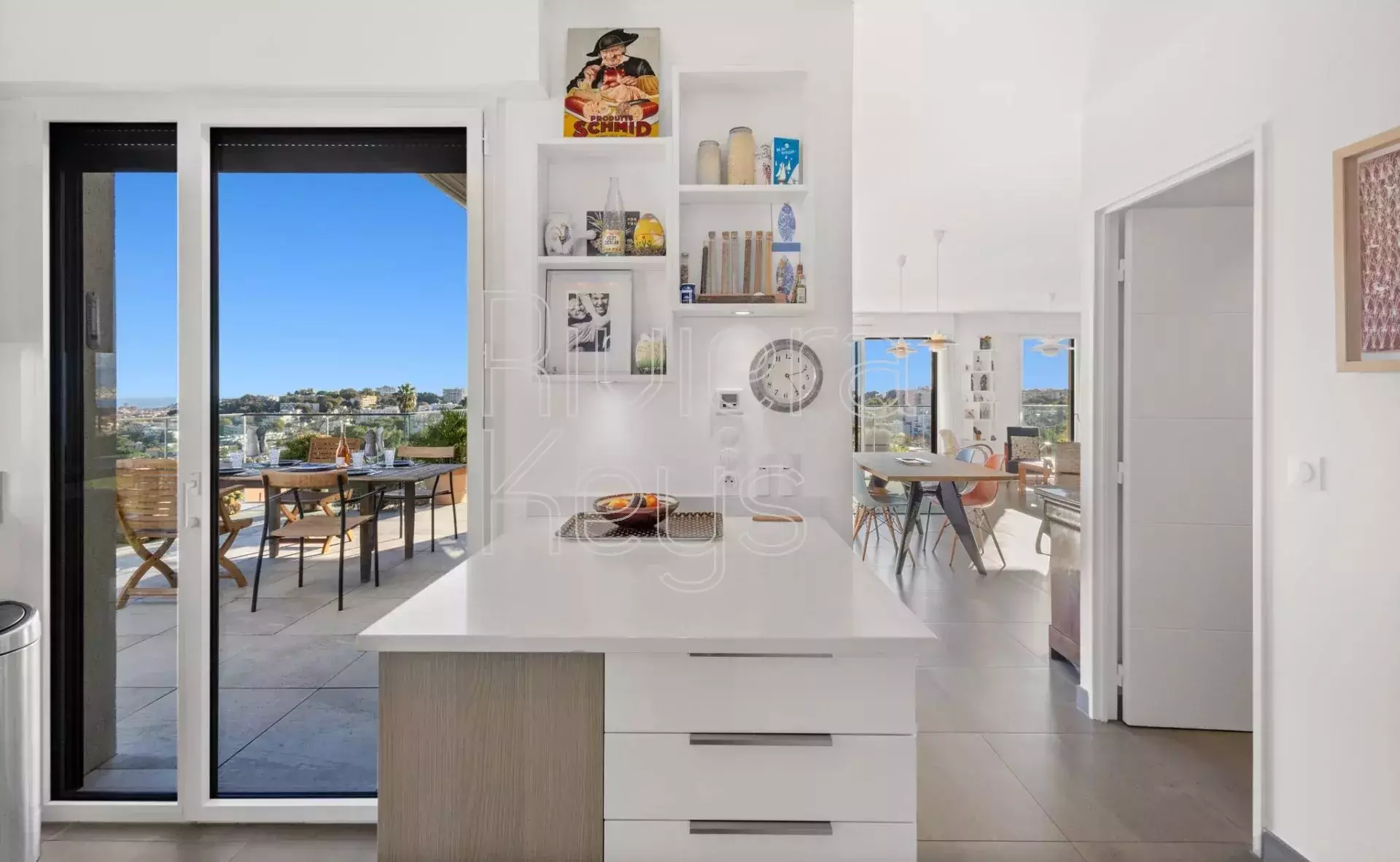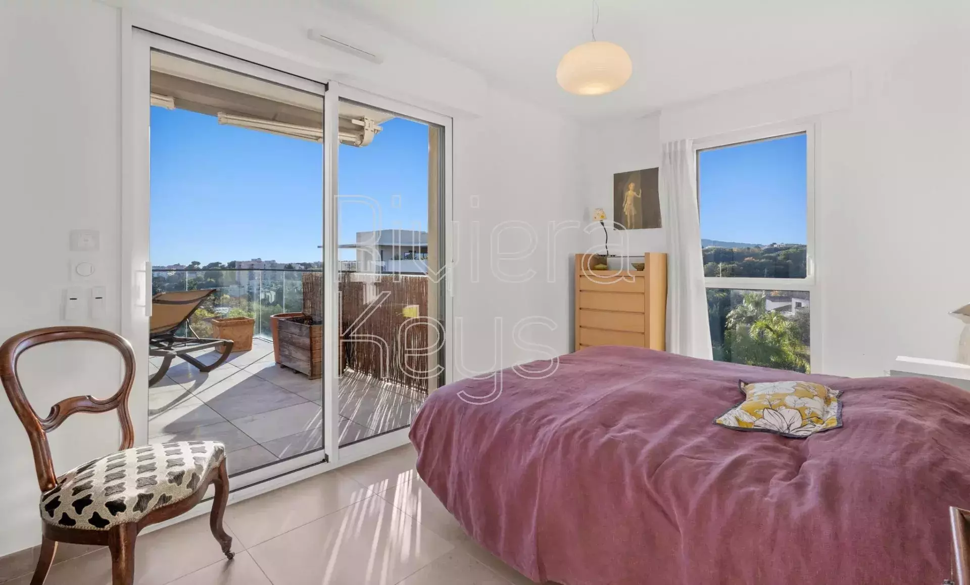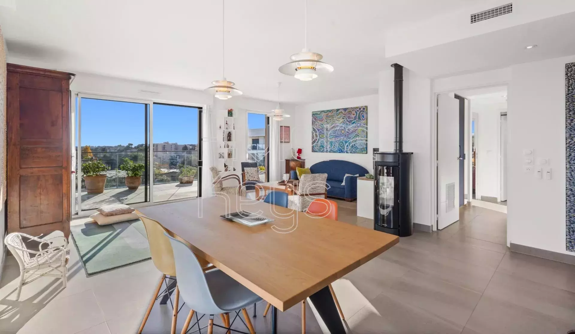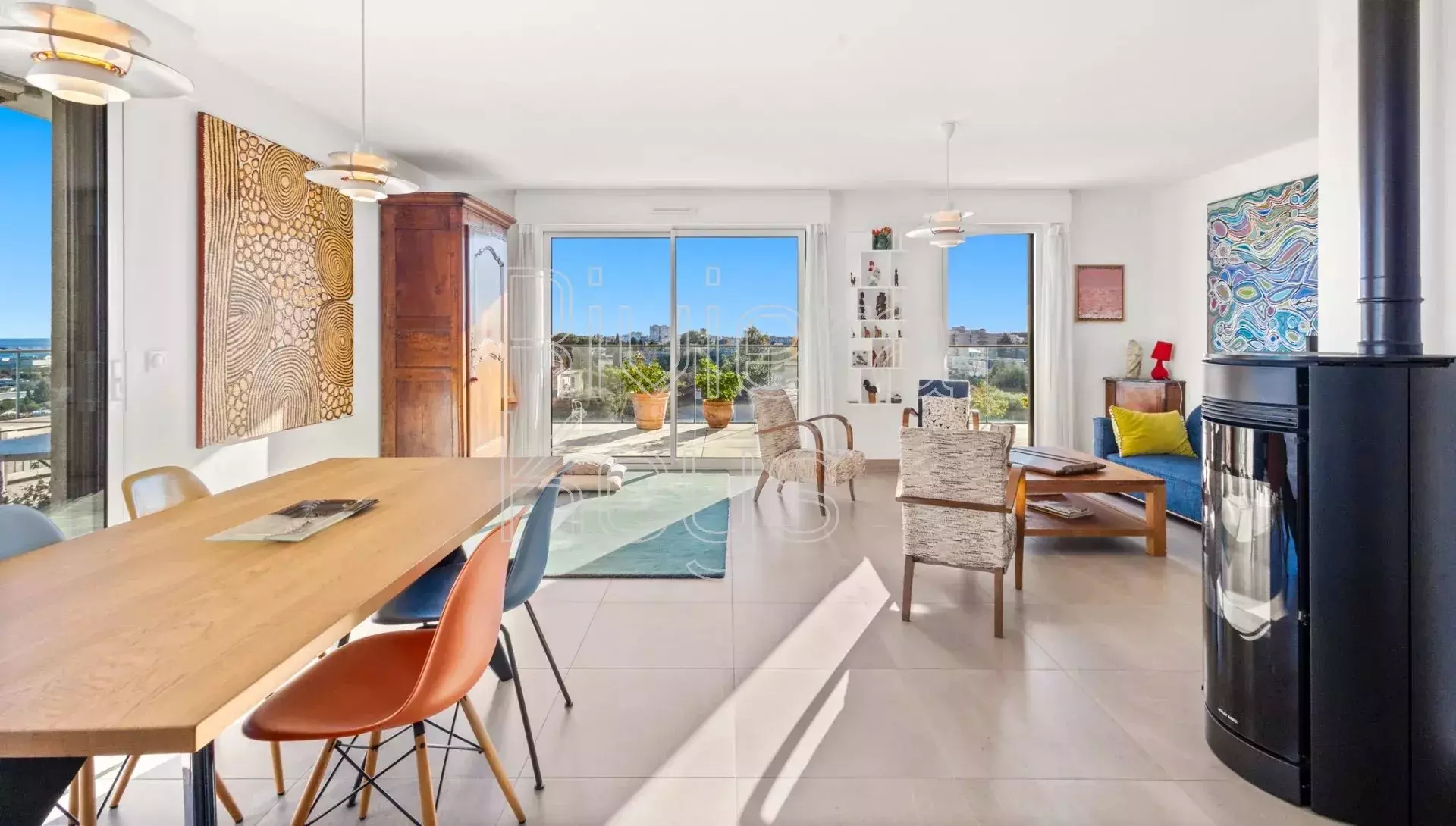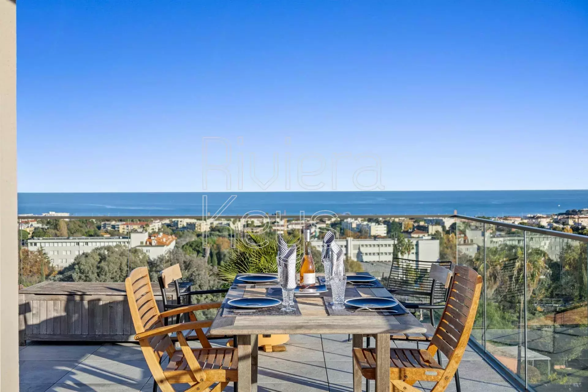 Antibesin Rastinen arvostetulla alueella, ylimmän kerroksen kulmahuoneisto upealla terassilla ja panoraamanäkymin.