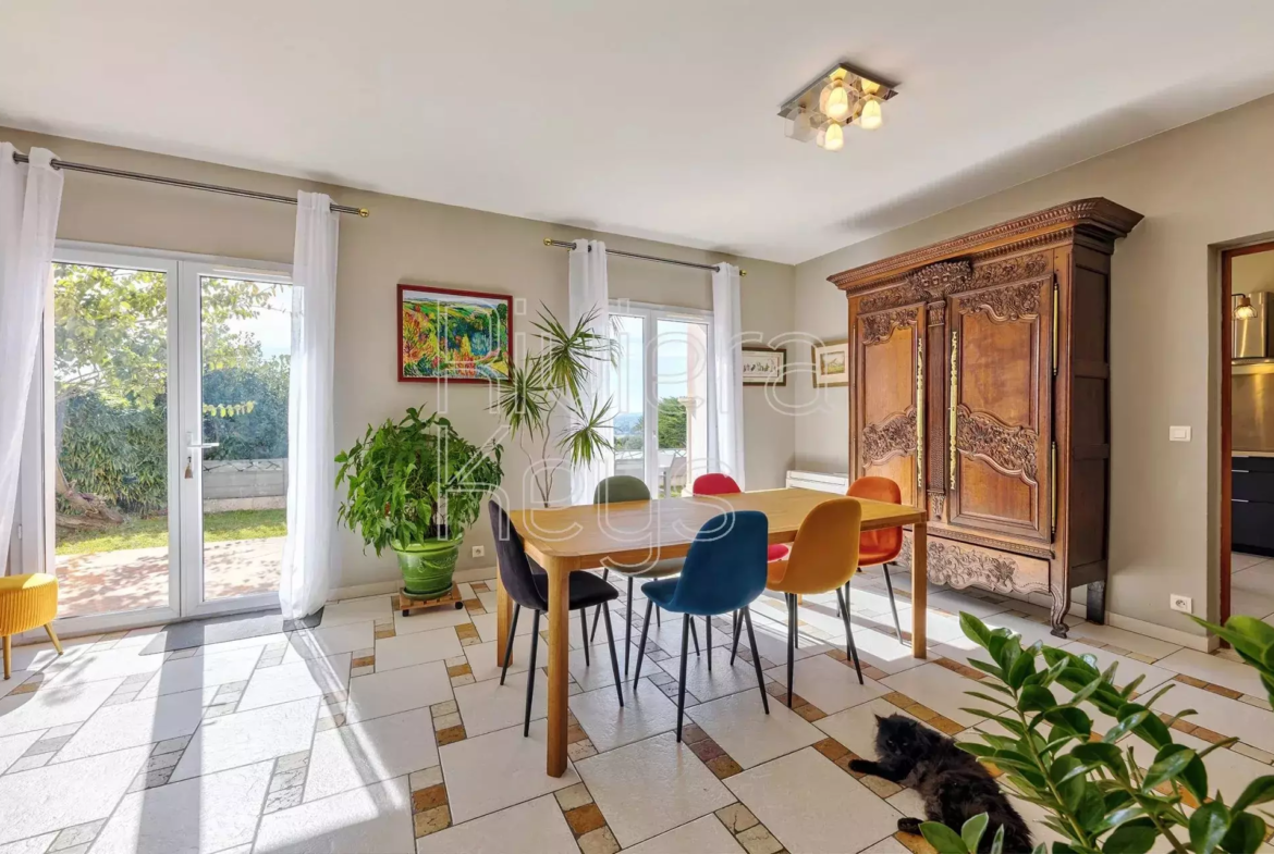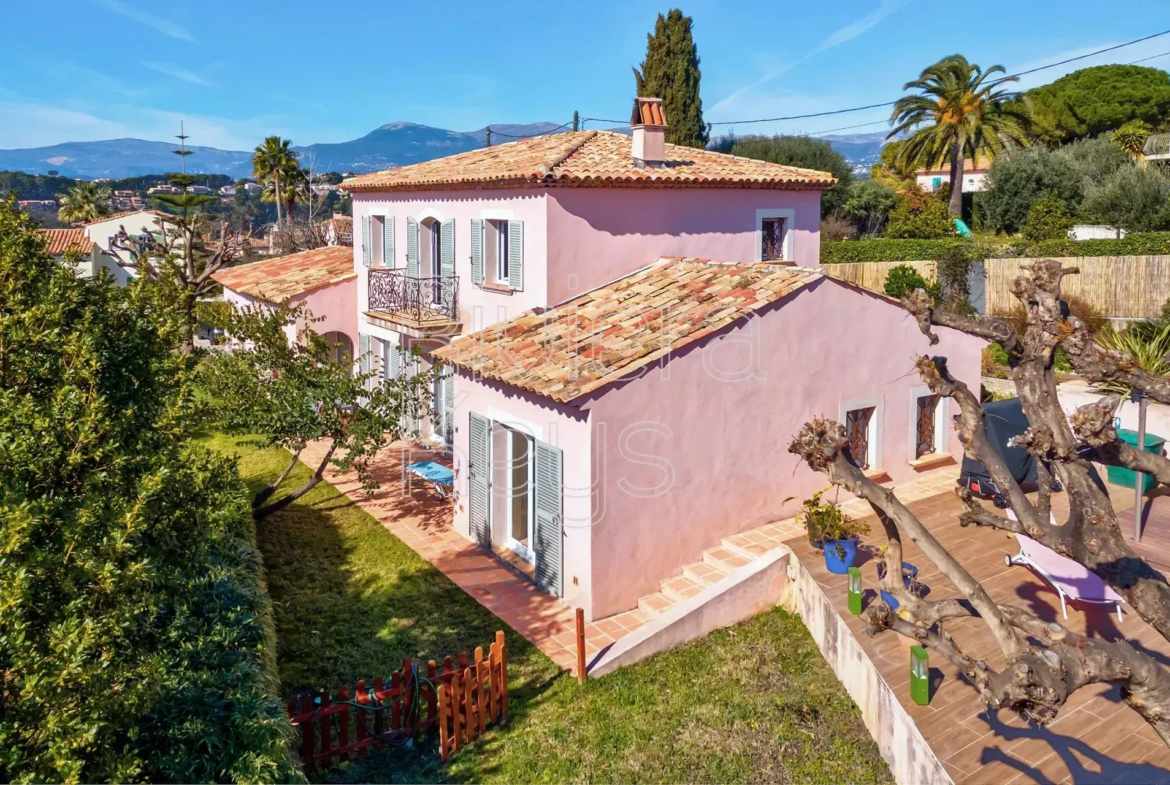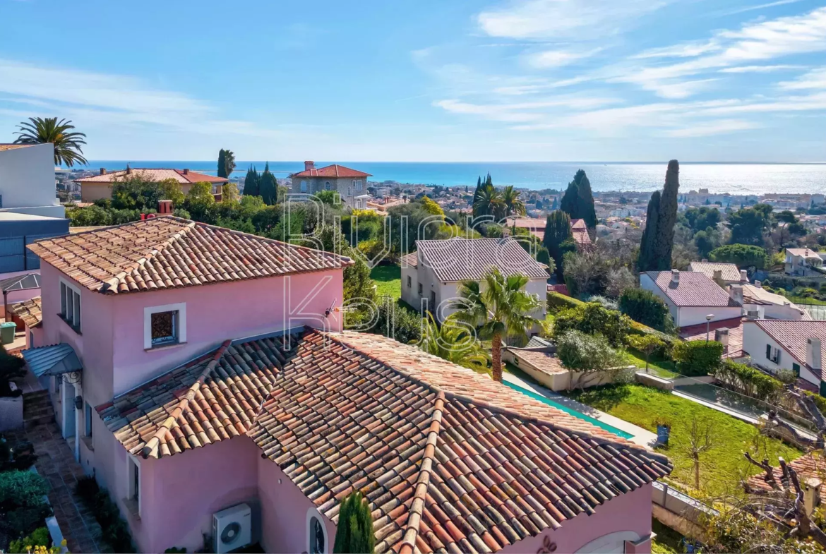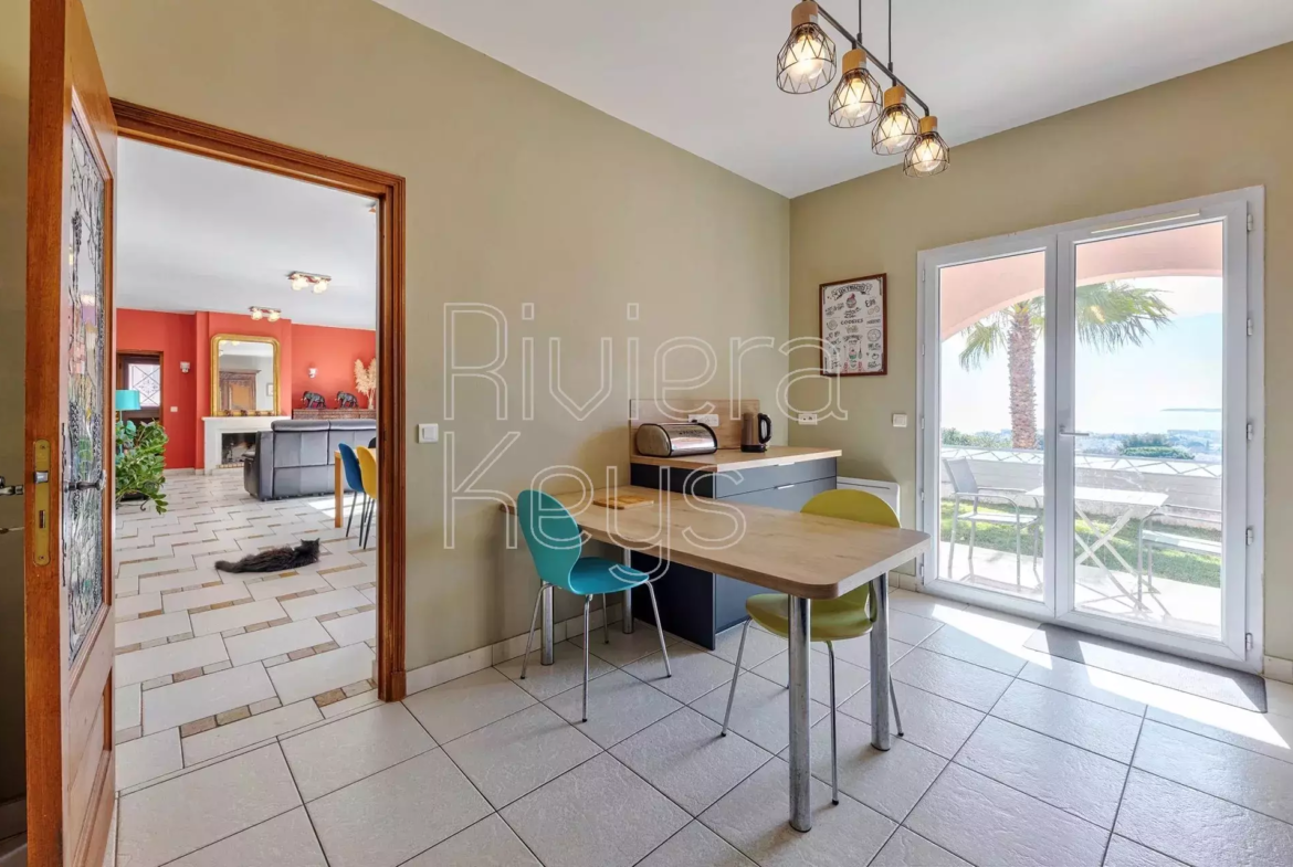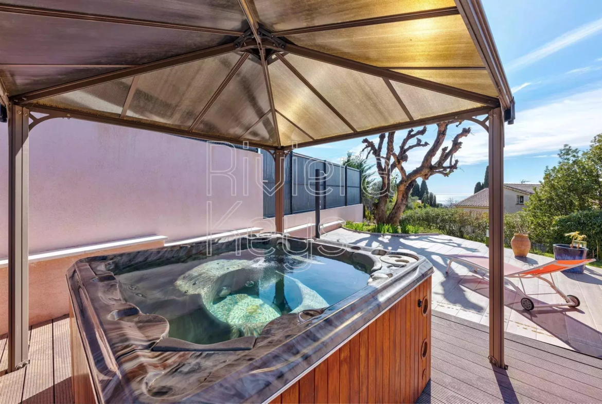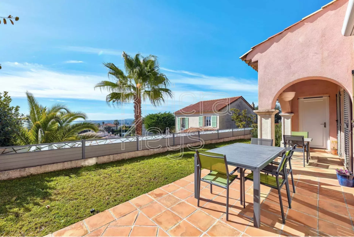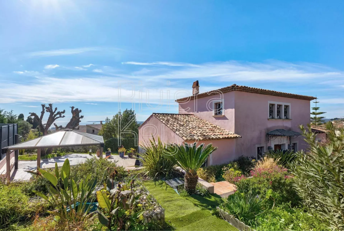 Cagnes-sur-Mer’n kukkulalla, rauhallisella alueella sijaitseva, v. 2005 rakennettu talo, jolta aukeaa kauniit näkymät merelle.