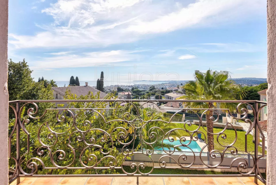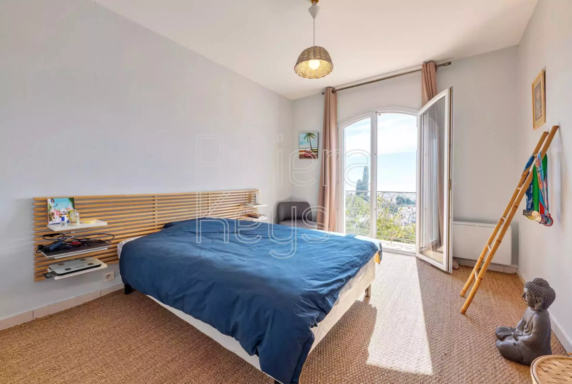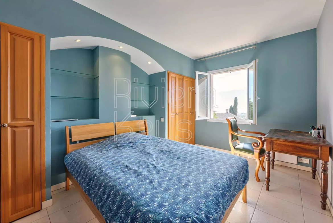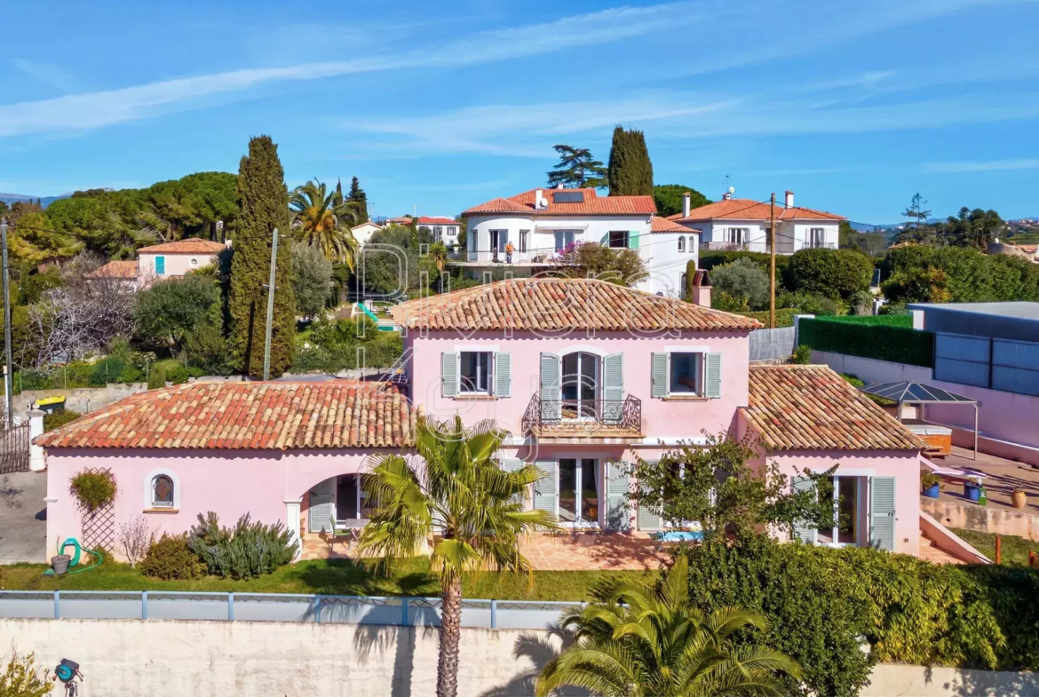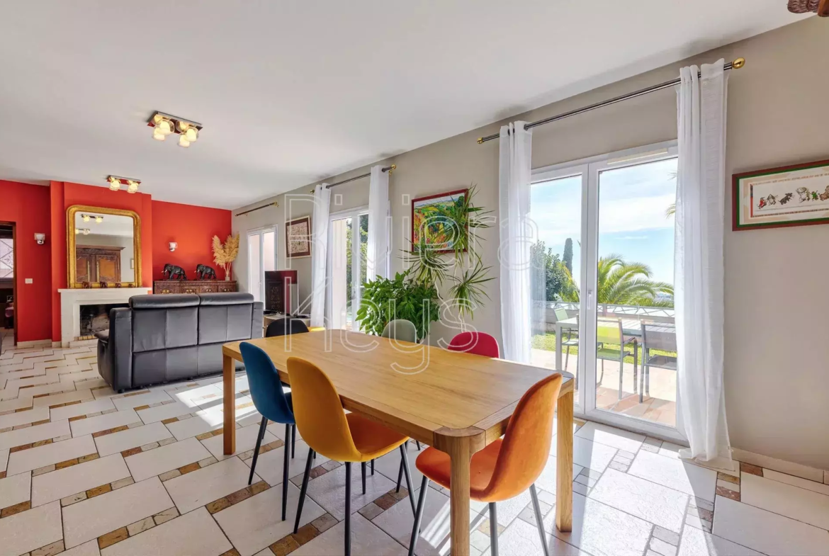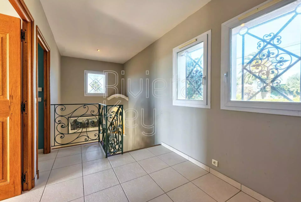 Cagnes-sur-Mer’n kukkulalla, rauhallisella alueella sijaitseva, v. 2005 rakennettu talo, jolta aukeaa kauniit näkymät merelle.