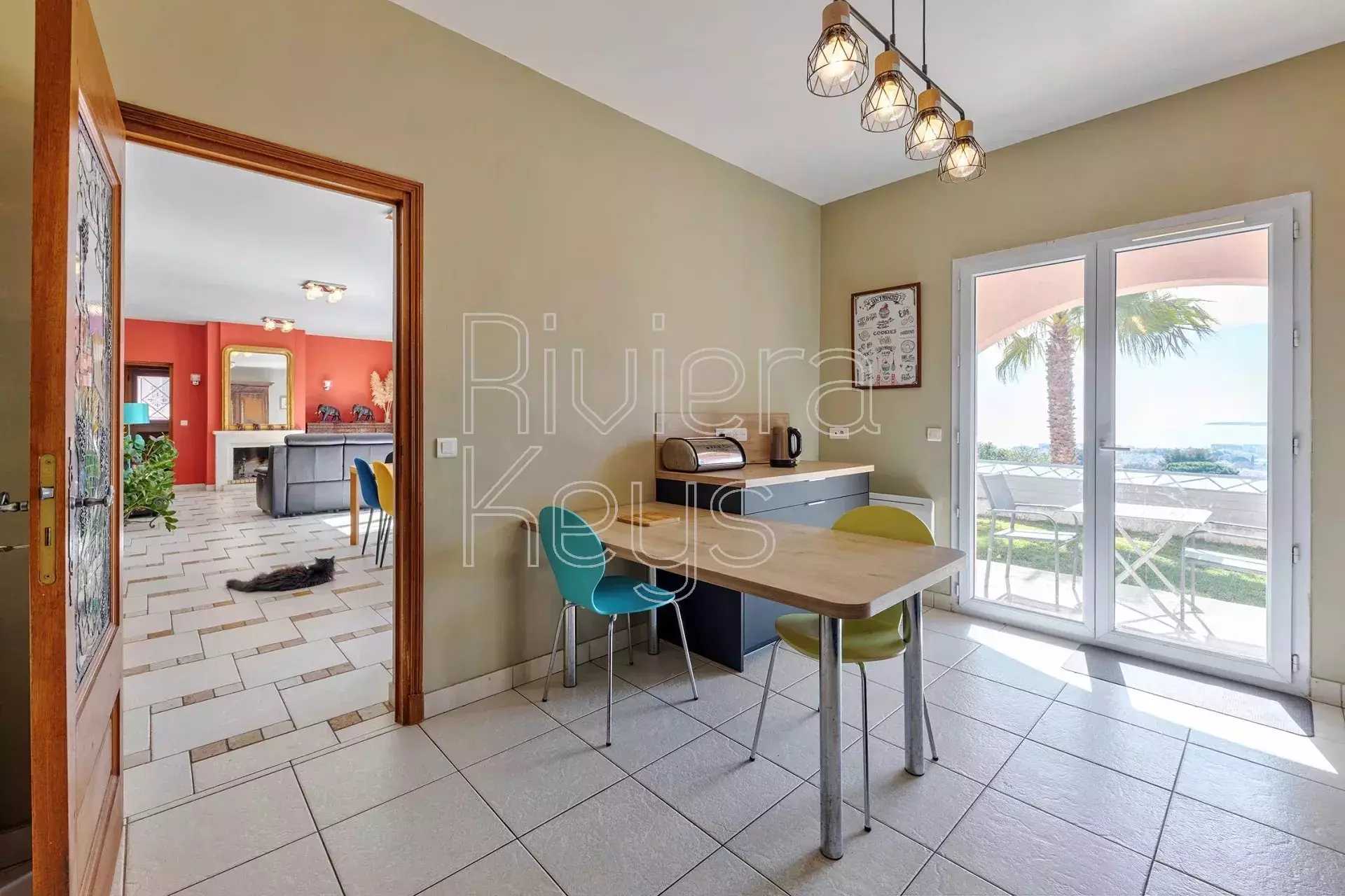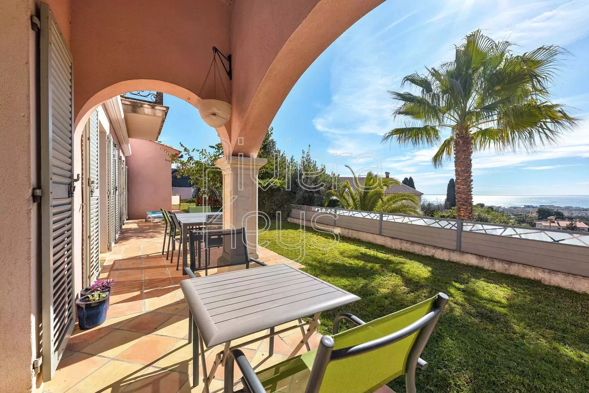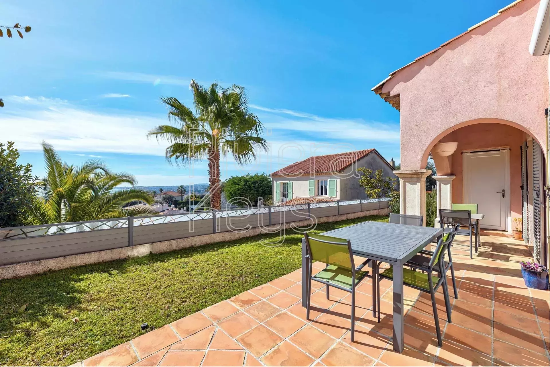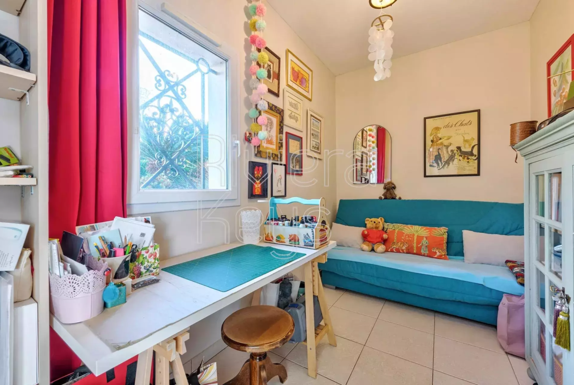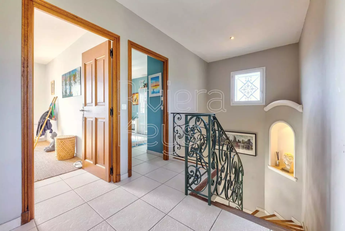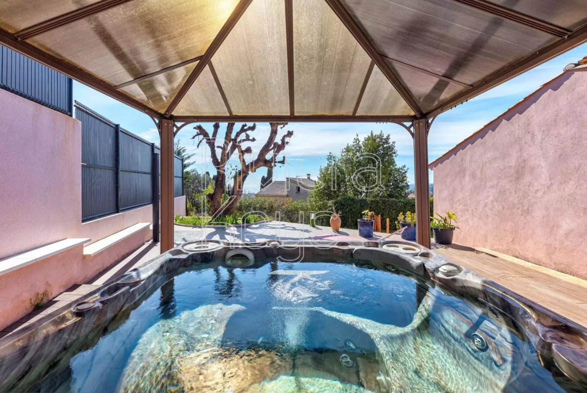 Cagnes-sur-Mer’n kukkulalla, rauhallisella alueella sijaitseva, v. 2005 rakennettu talo, jolta aukeaa kauniit näkymät merelle.