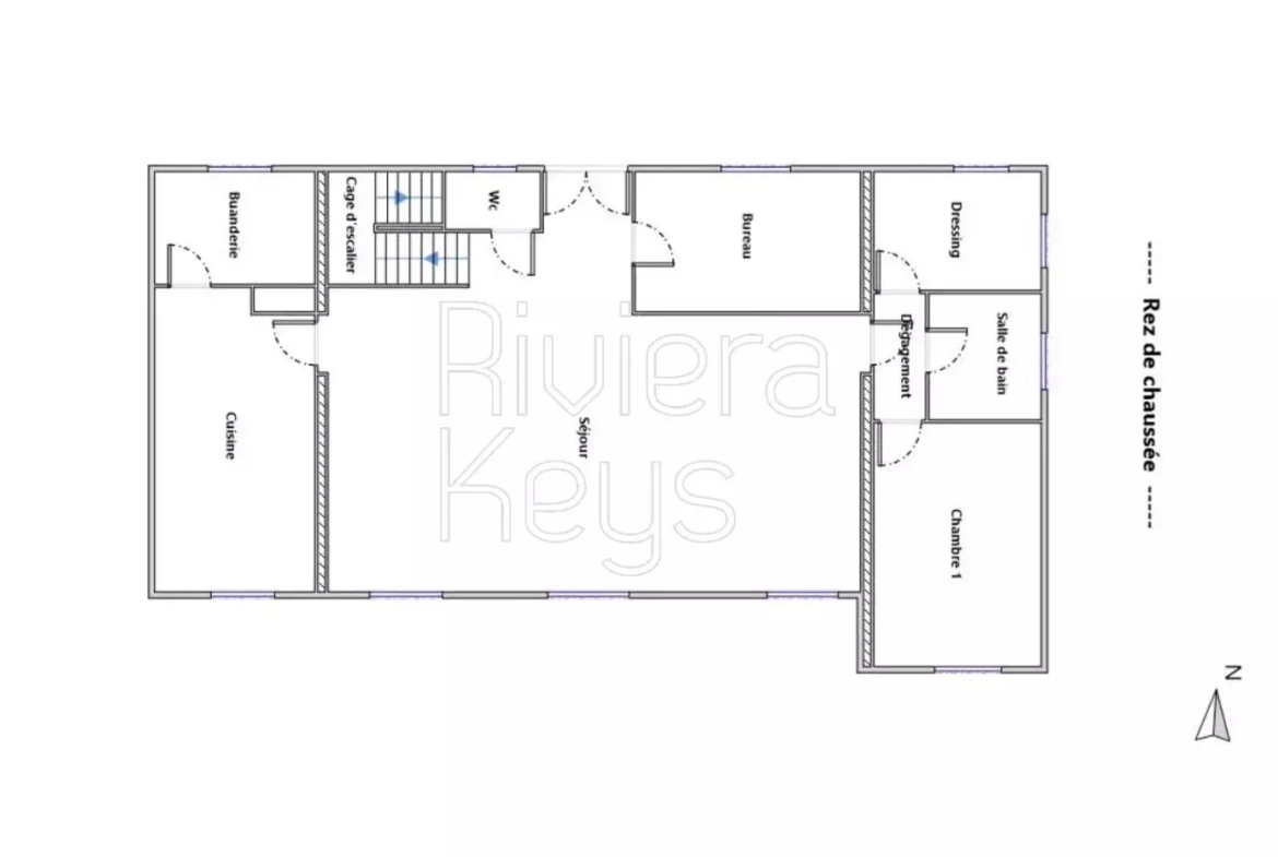 Talon alakerrassa on olohuone ruokailutilalla, keittiö, makuuhuone, työhuone, kylpyhuone, erillinen wc, vaatehuone ja kodinhoitohuone.