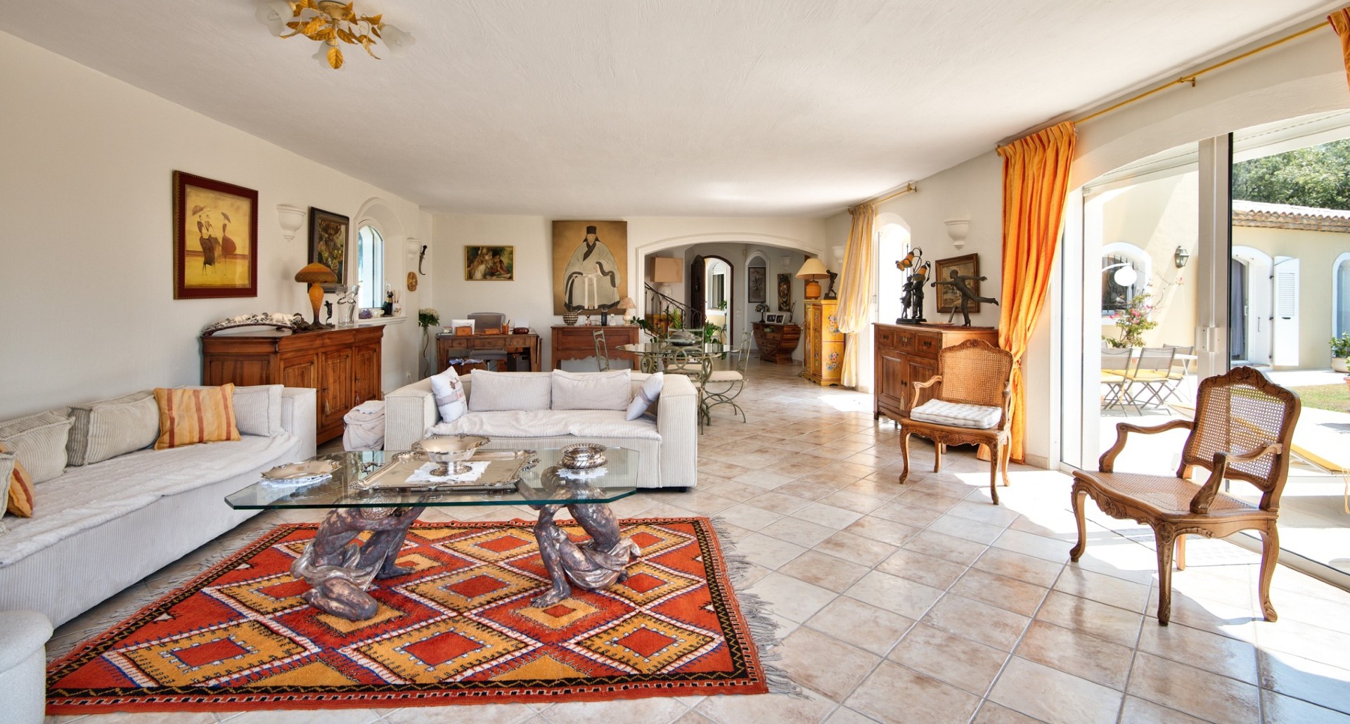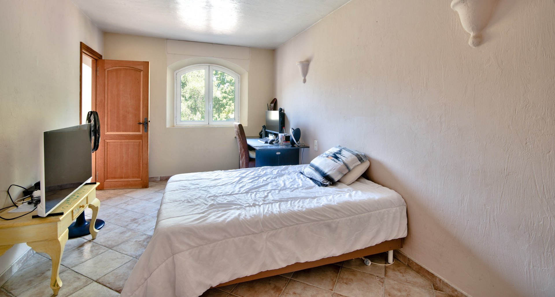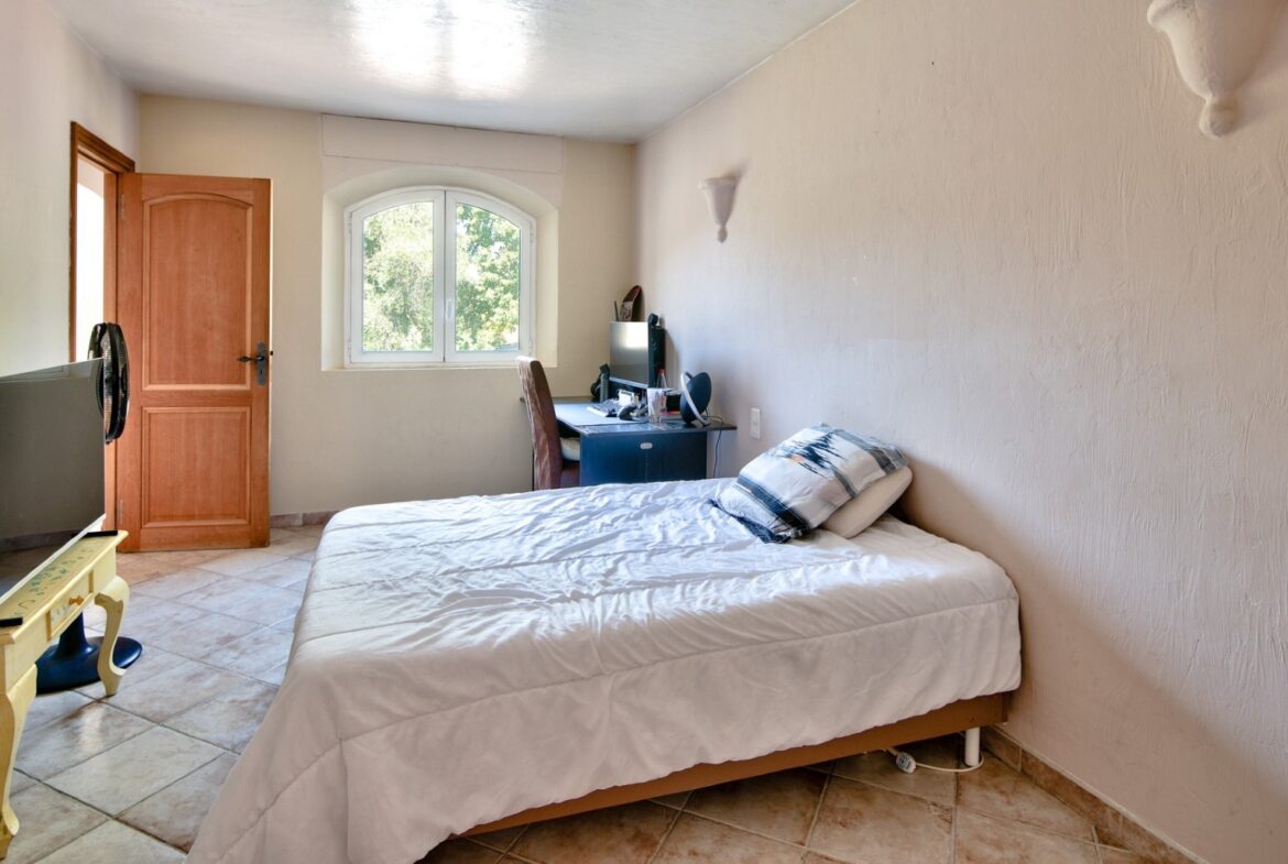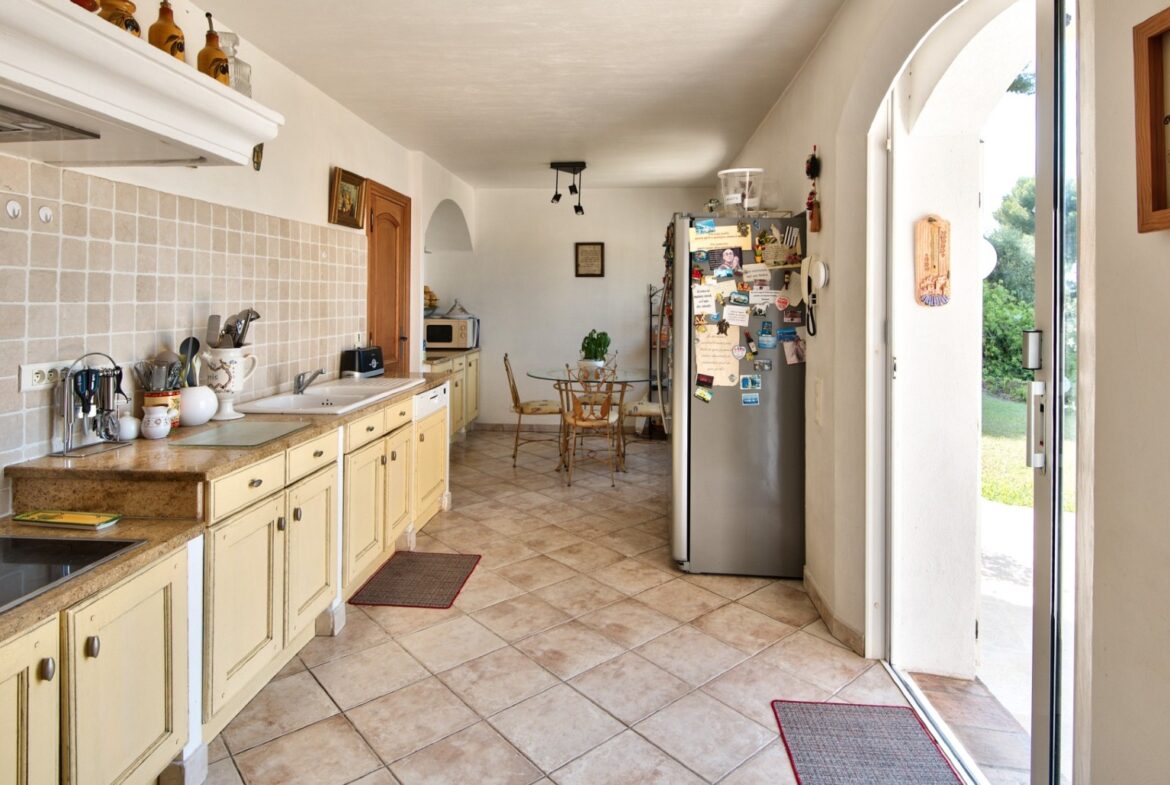 Talossa on tilava olohuone, josta on käynti aurinkoiselle terassille, erillinen keittiö, jossa ruokapöytä ja myös käynti terassille, viisi makuuhuonetta, neljä kylpyhuonetta sekä erillinen yksiö. Pihalla on uima-allas, autotalli sekä ulkoparkkipaikkoja.