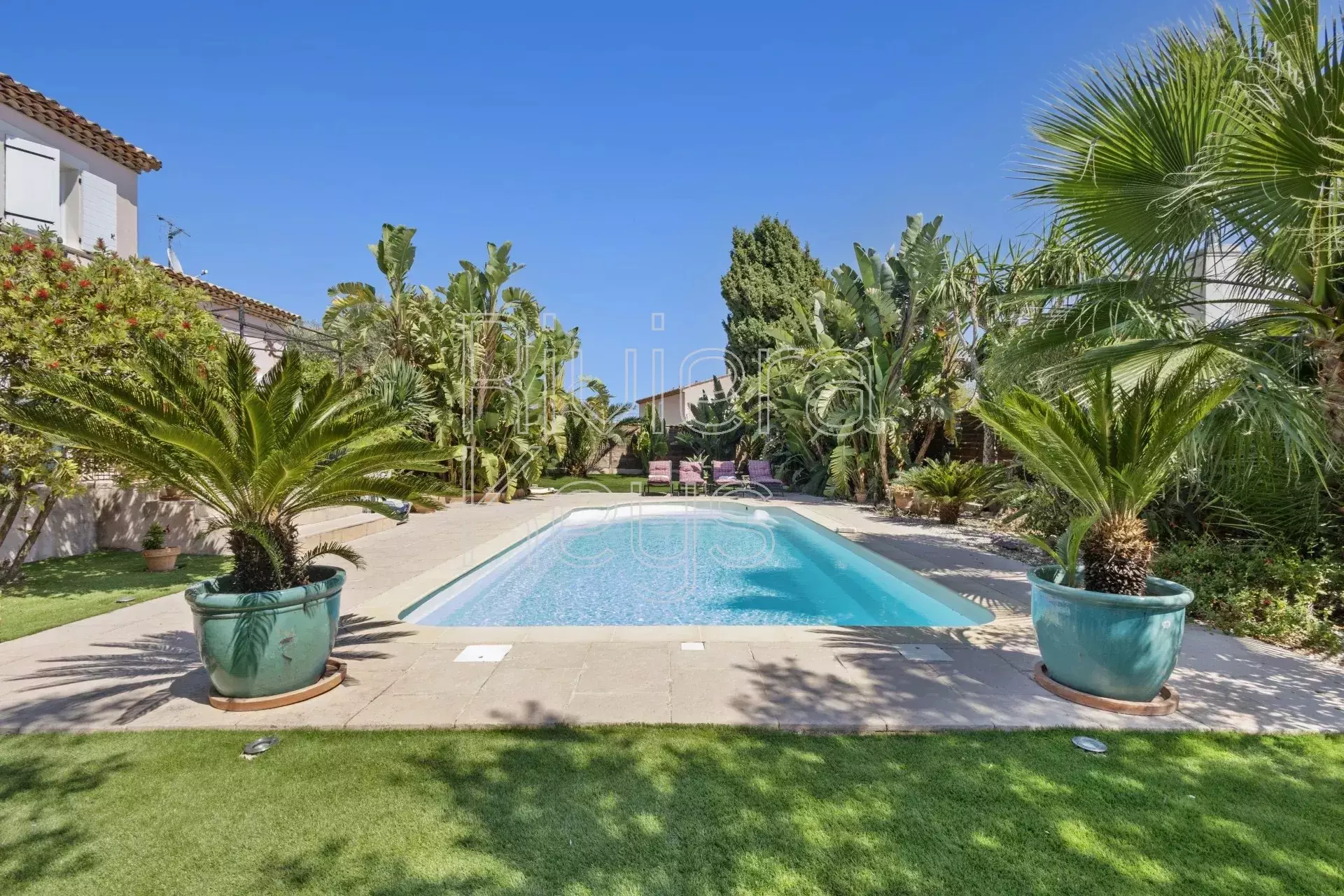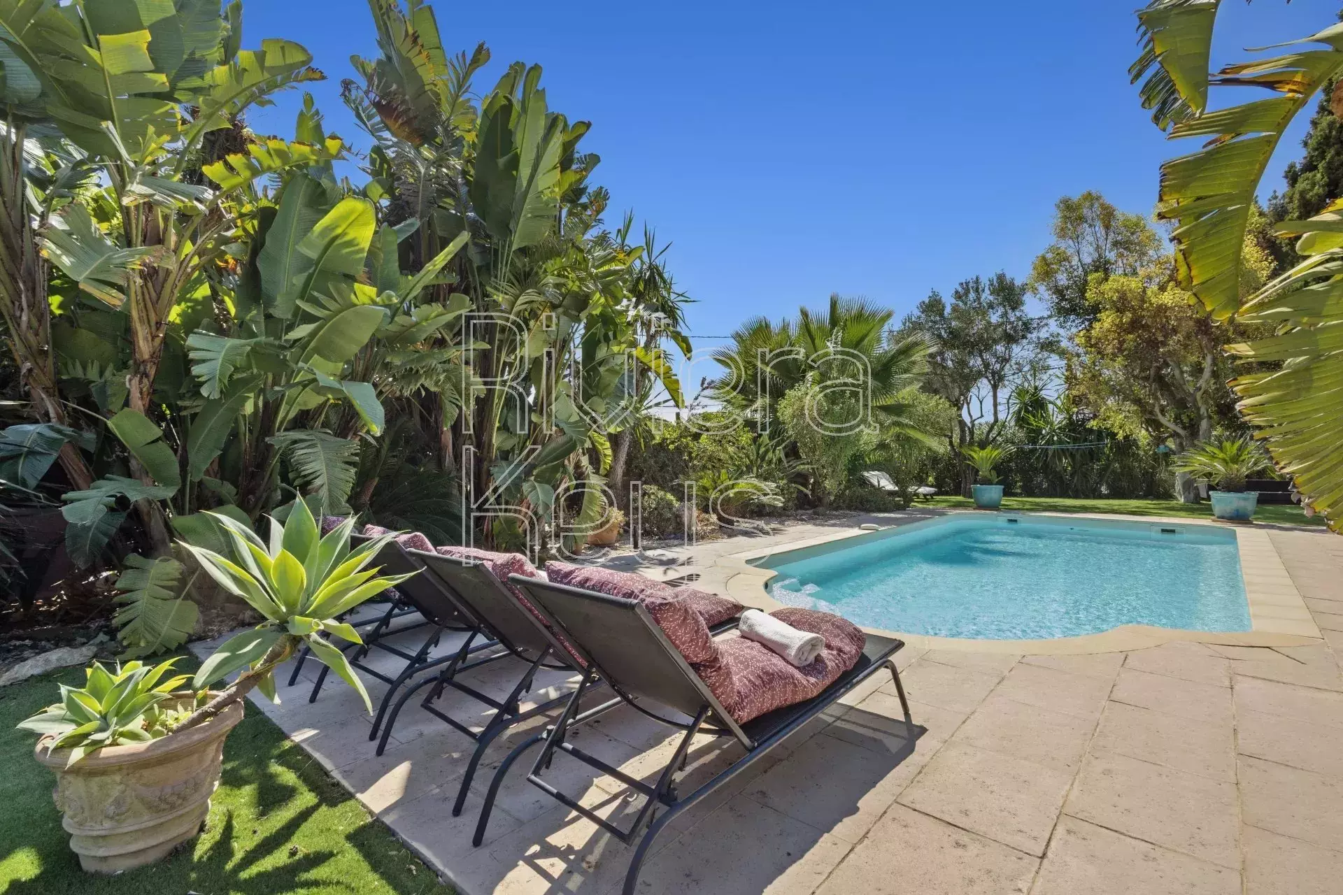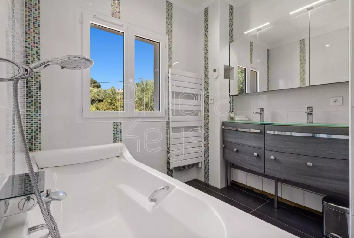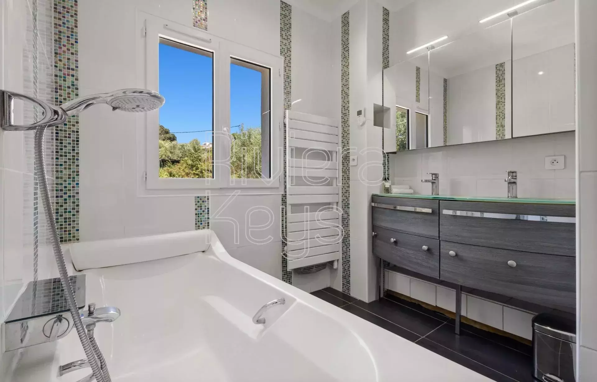 Cagnes-sur-Mer’n suositulla Val Fleurin asuinalueella, päättyvän tien rauhassa sijaitseva, talo uima-altaalla ja merinäkymällä.