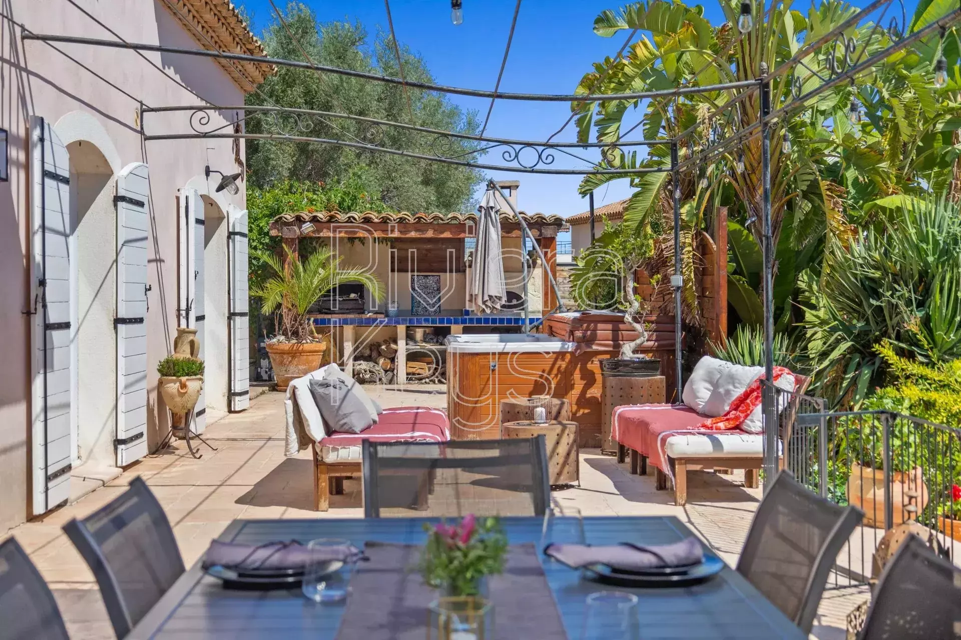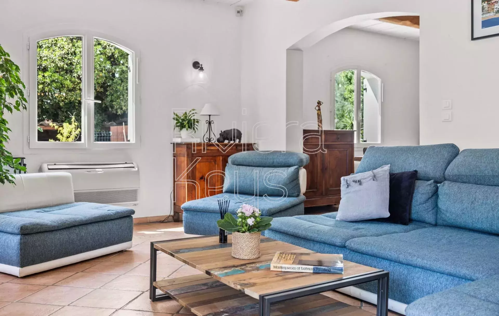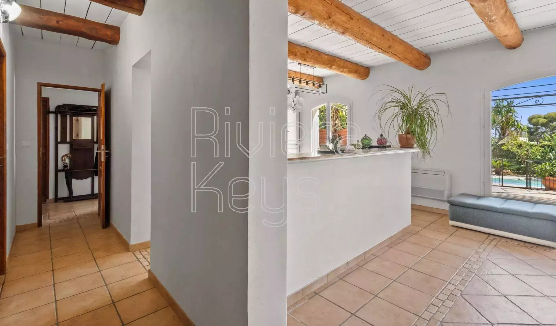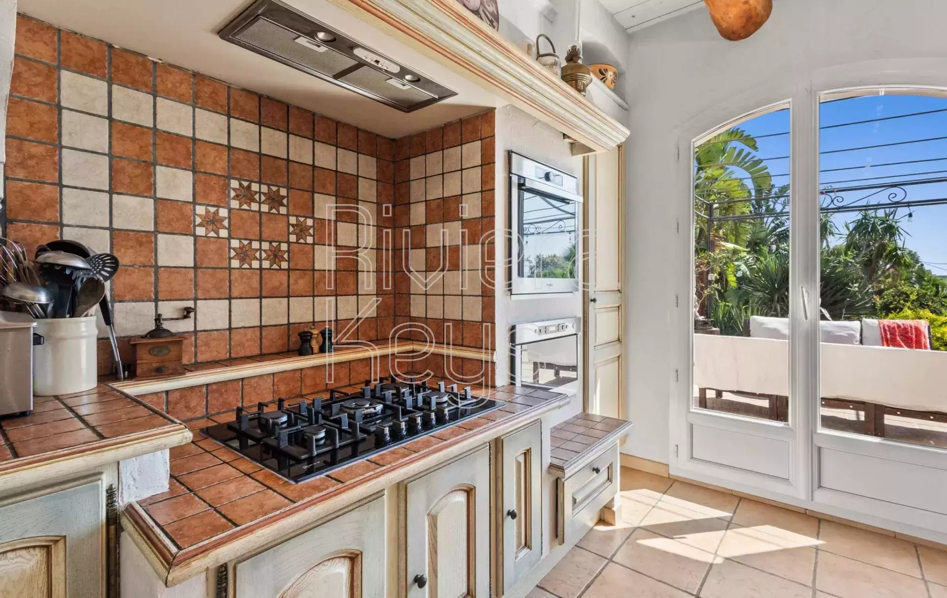 Cagnes-sur-Mer’n suositulla Val Fleurin asuinalueella, päättyvän tien rauhassa sijaitseva, talo uima-altaalla ja merinäkymällä.