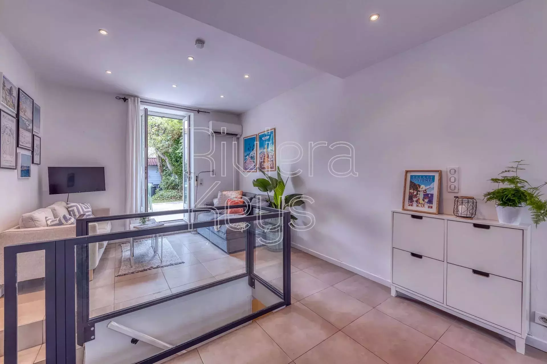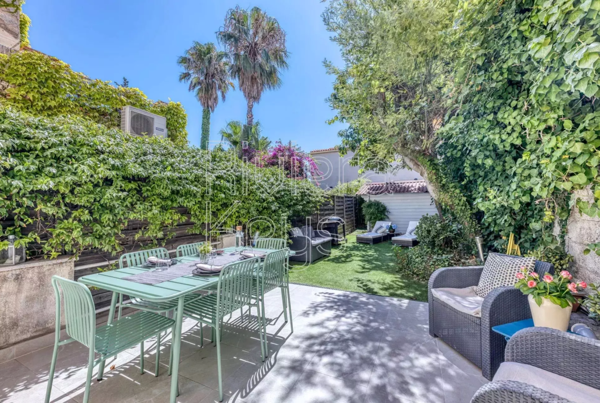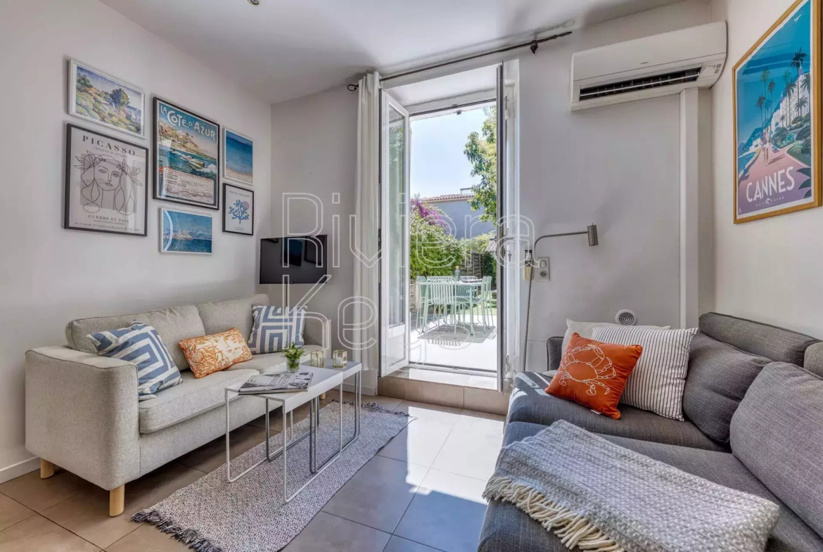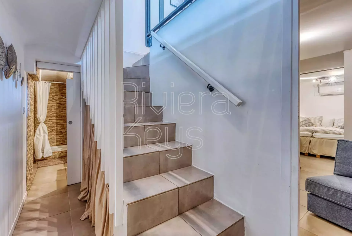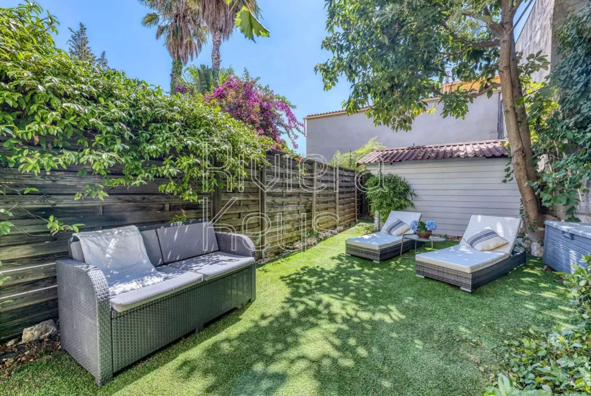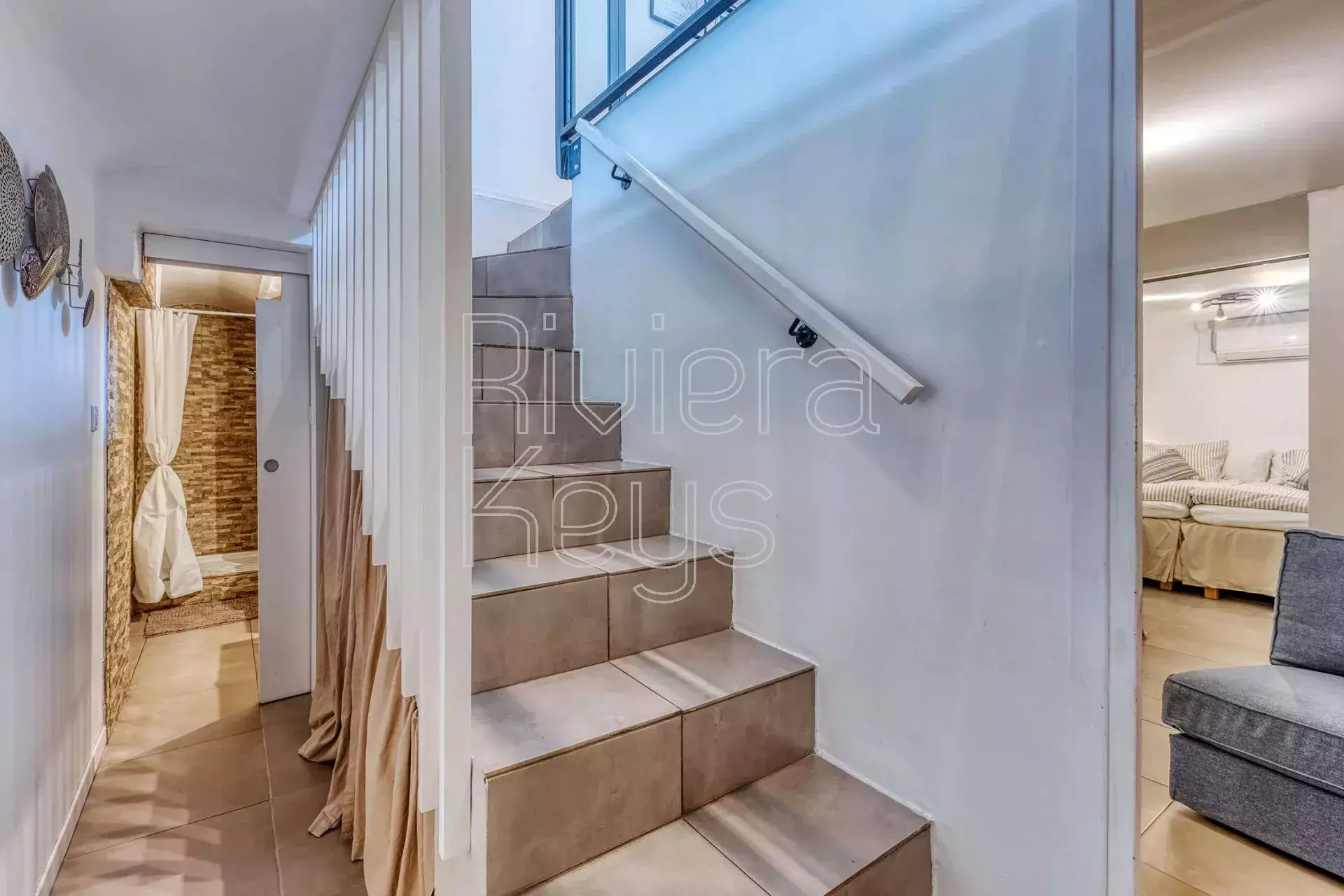 Cannesin Petit Juas’n arvostetulla alueella, rauhallisen tien varrella sijaitseva kaksikerroksinen rivitaloasunto, jolla on oma pieni puutarha.