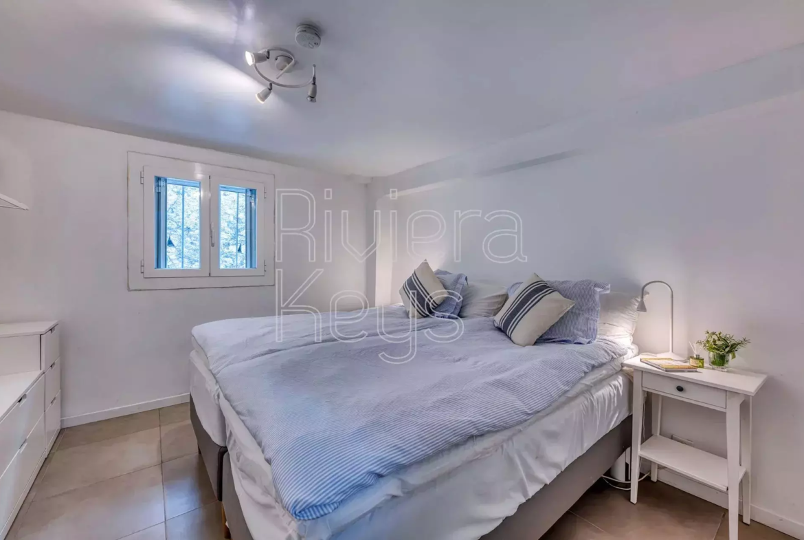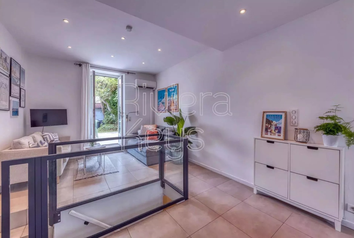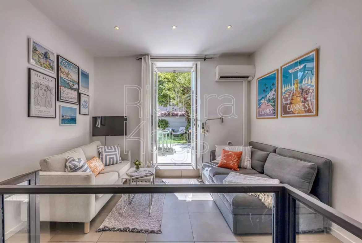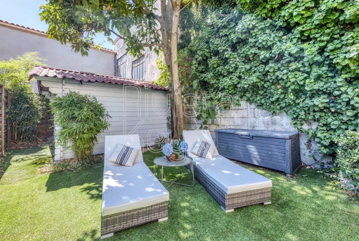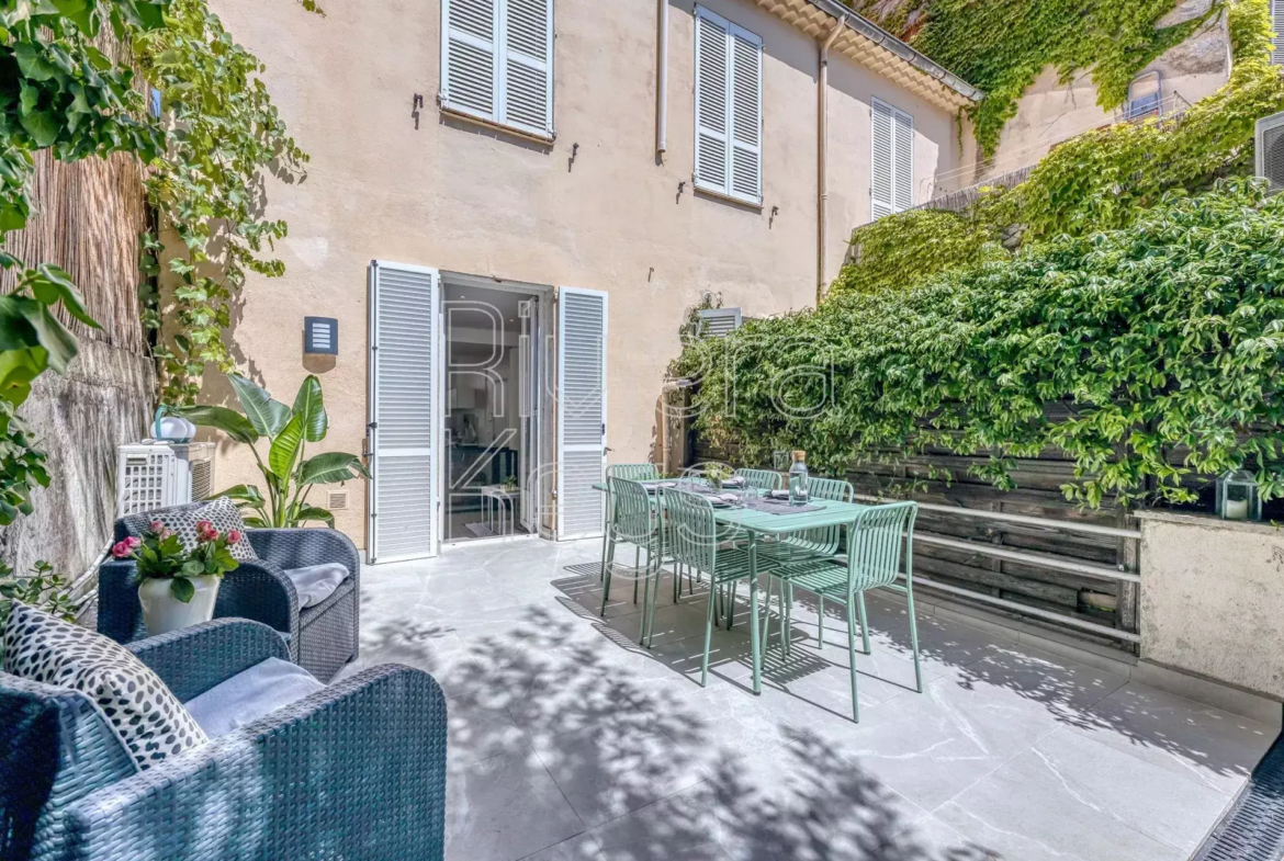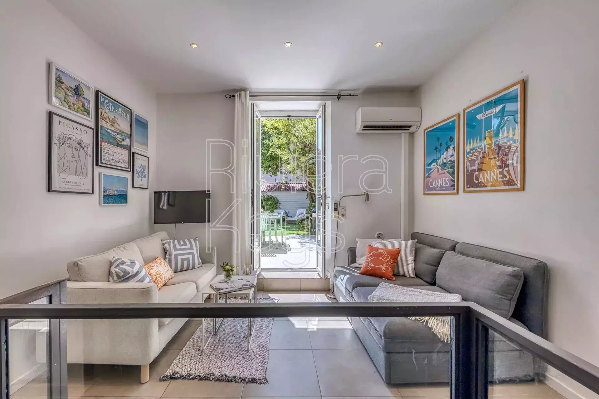 Cannesin Petit Juas’n arvostetulla alueella, rauhallisen tien varrella sijaitseva kaksikerroksinen rivitaloasunto, jolla on oma pieni puutarha.