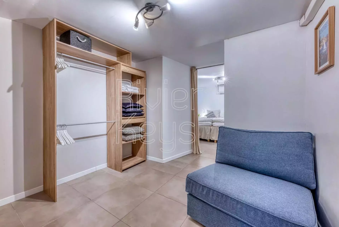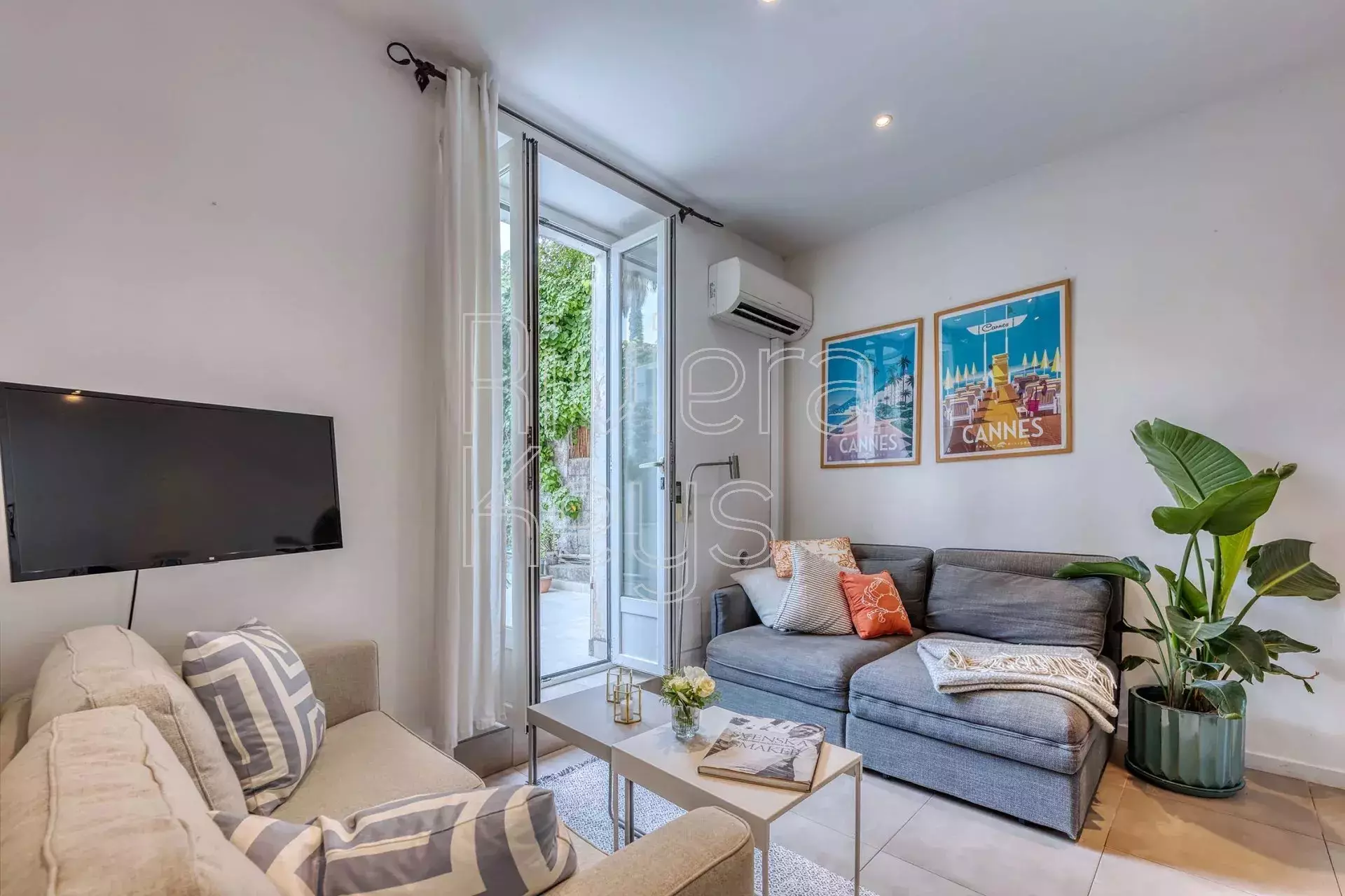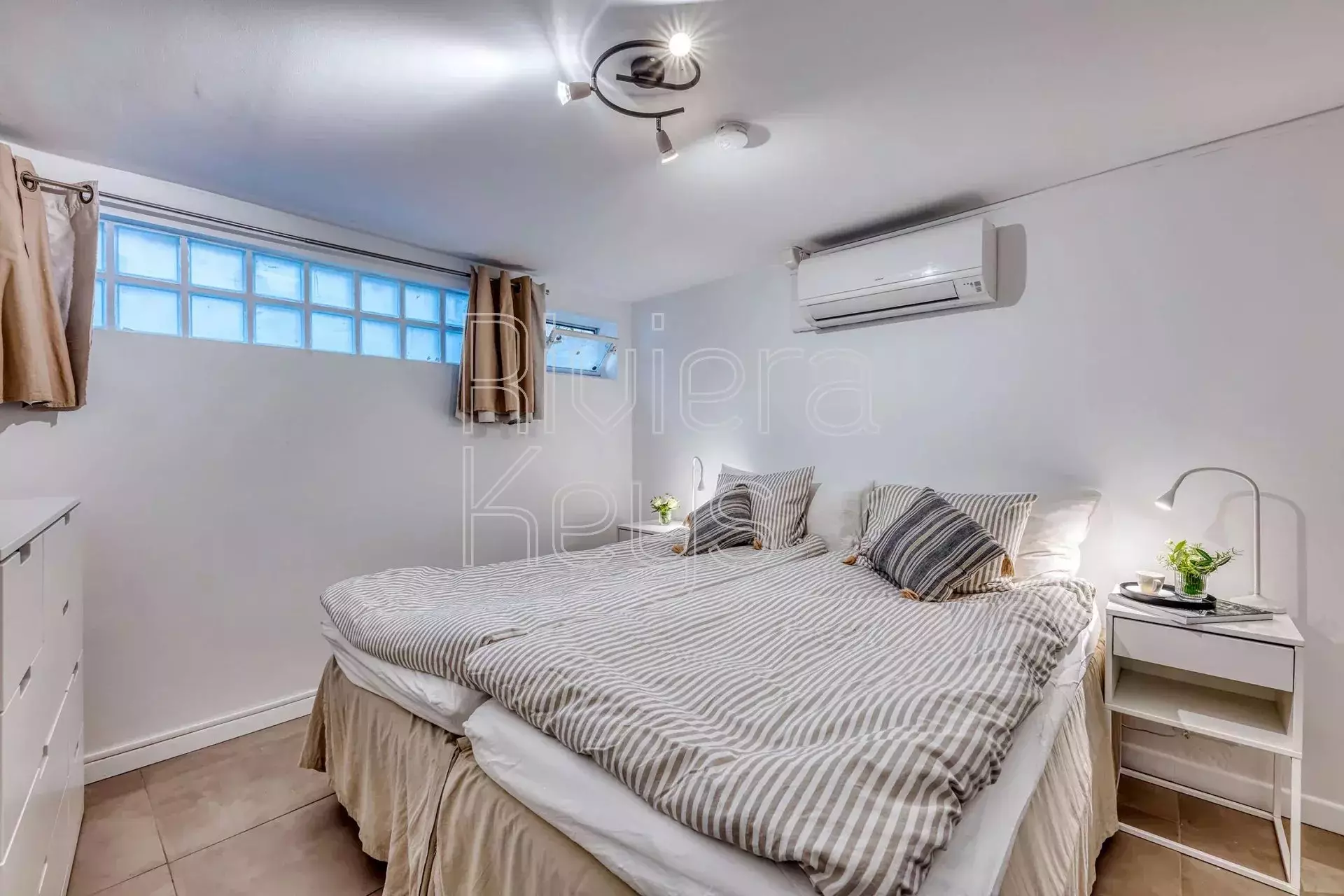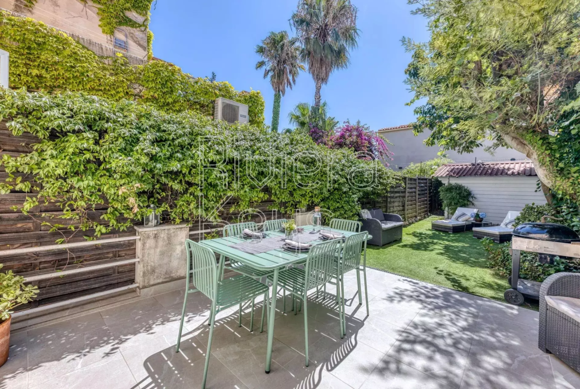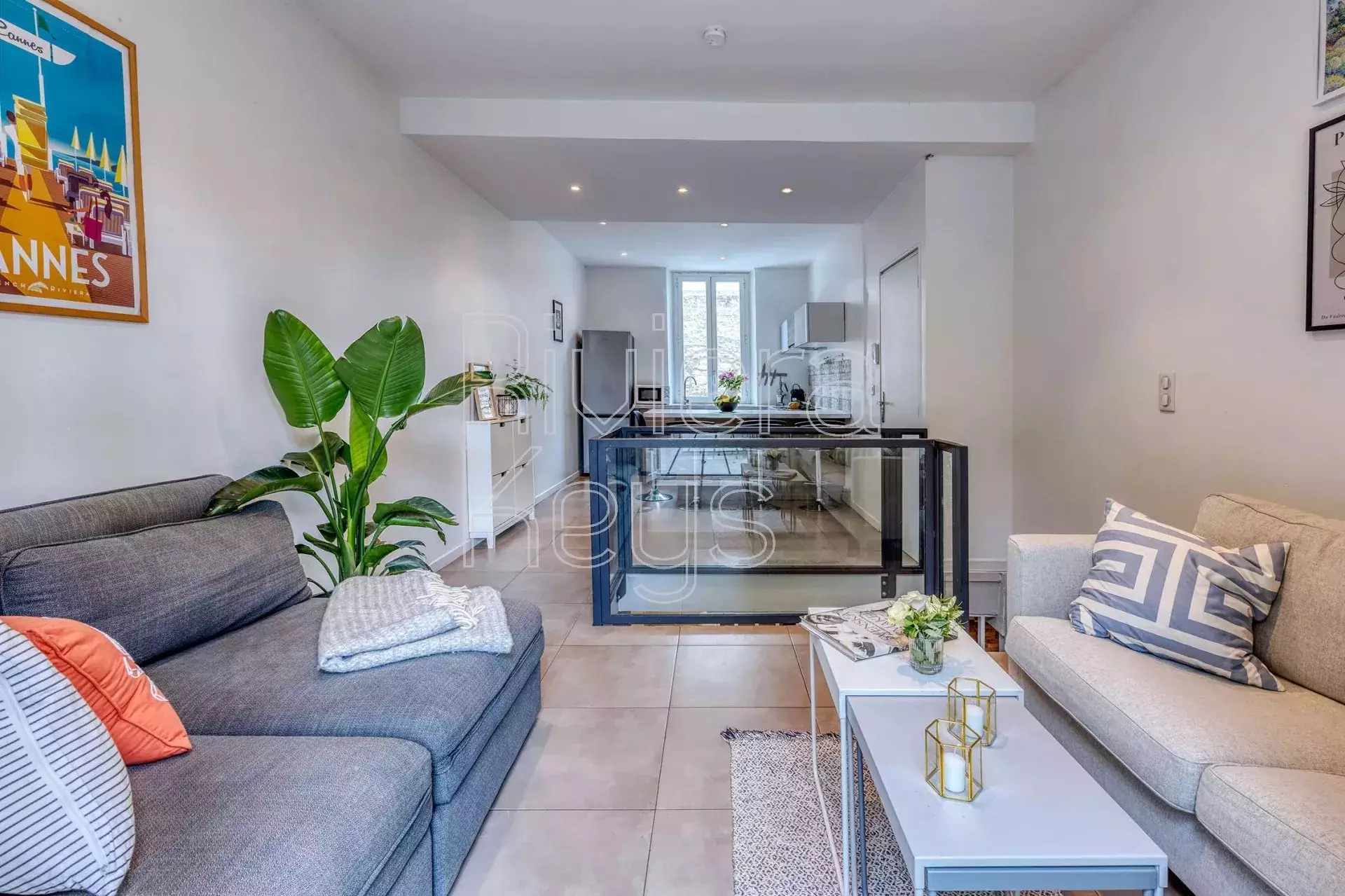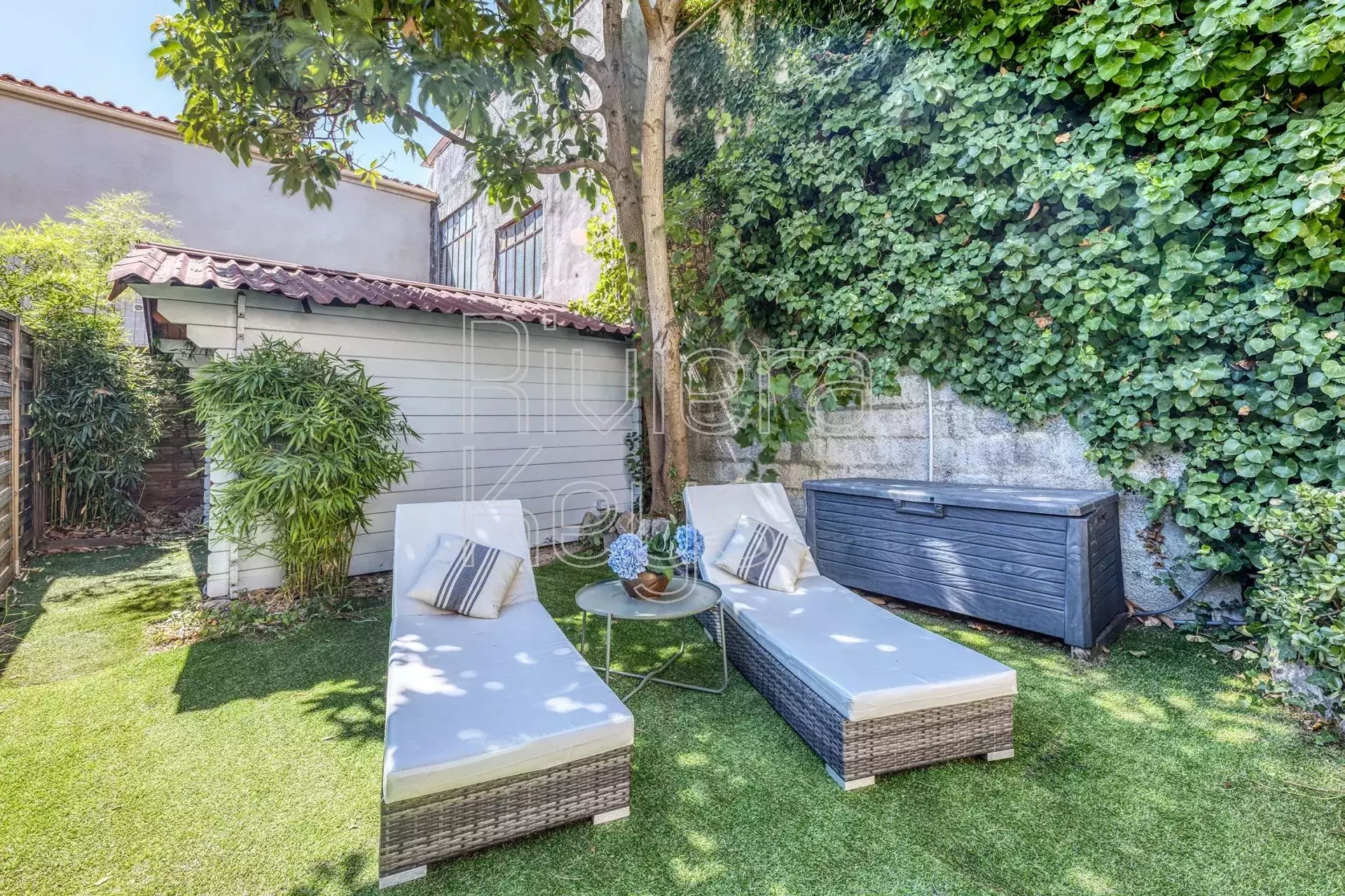 Cannesin Petit Juas’n arvostetulla alueella, rauhallisen tien varrella sijaitseva kaksikerroksinen rivitaloasunto, jolla on oma pieni puutarha.