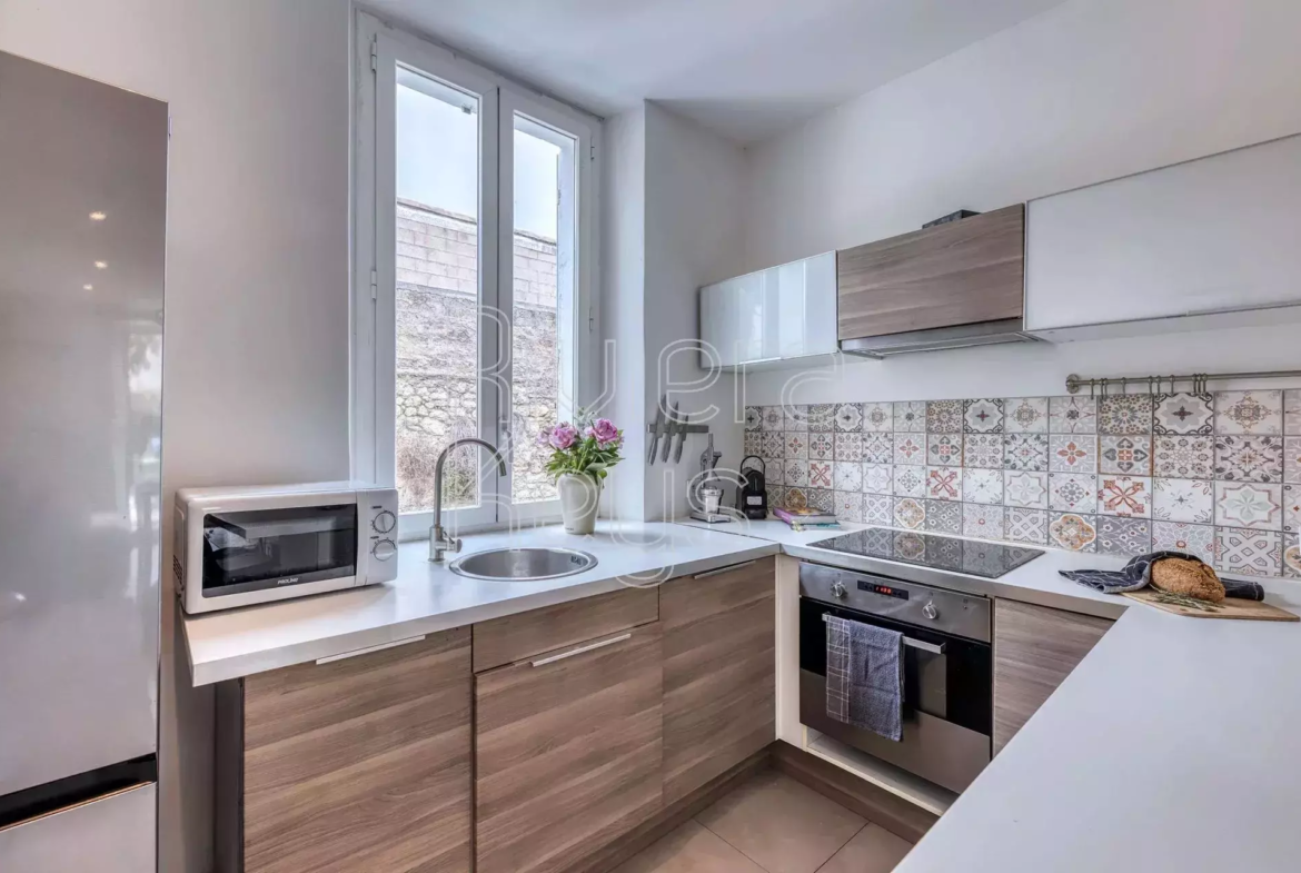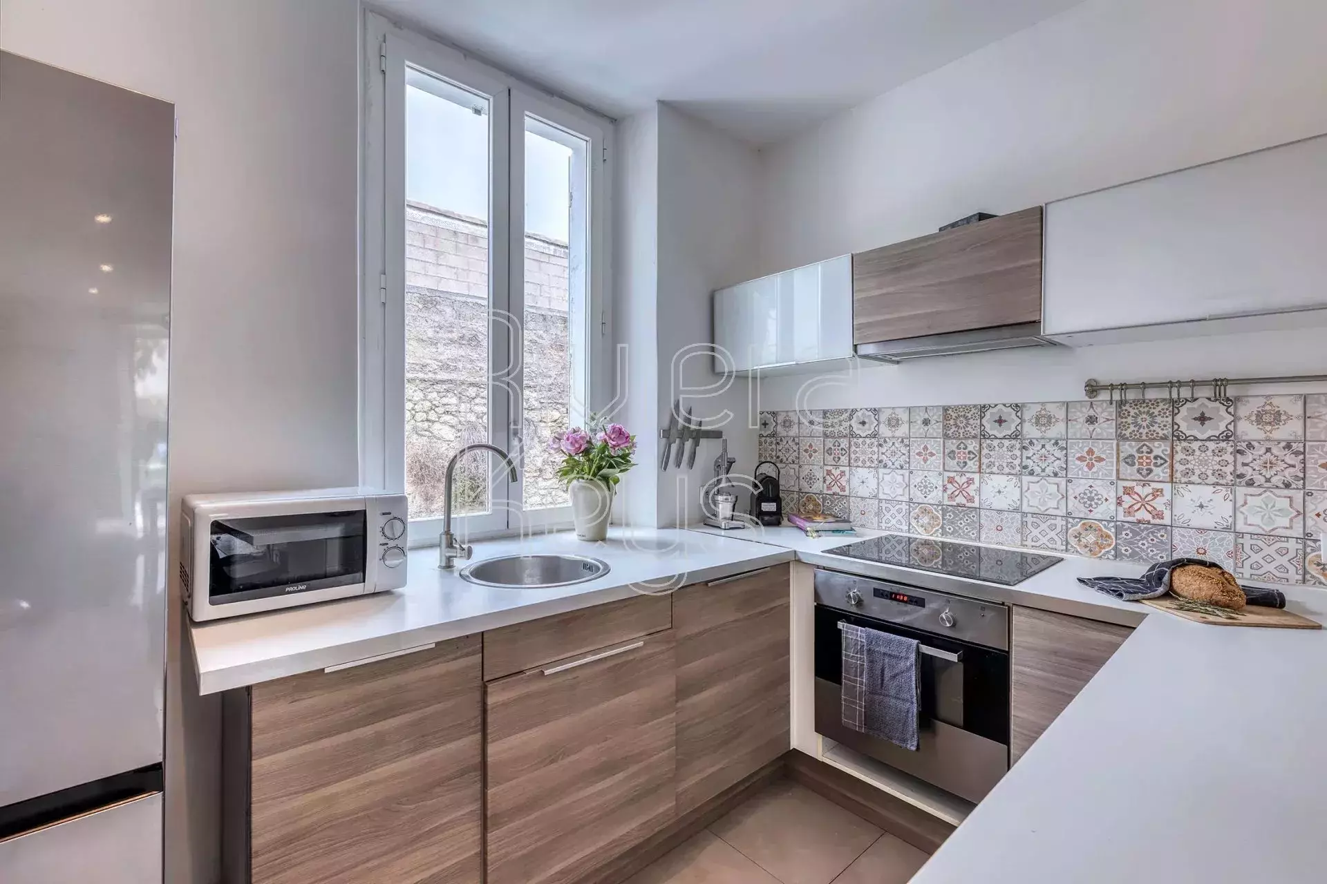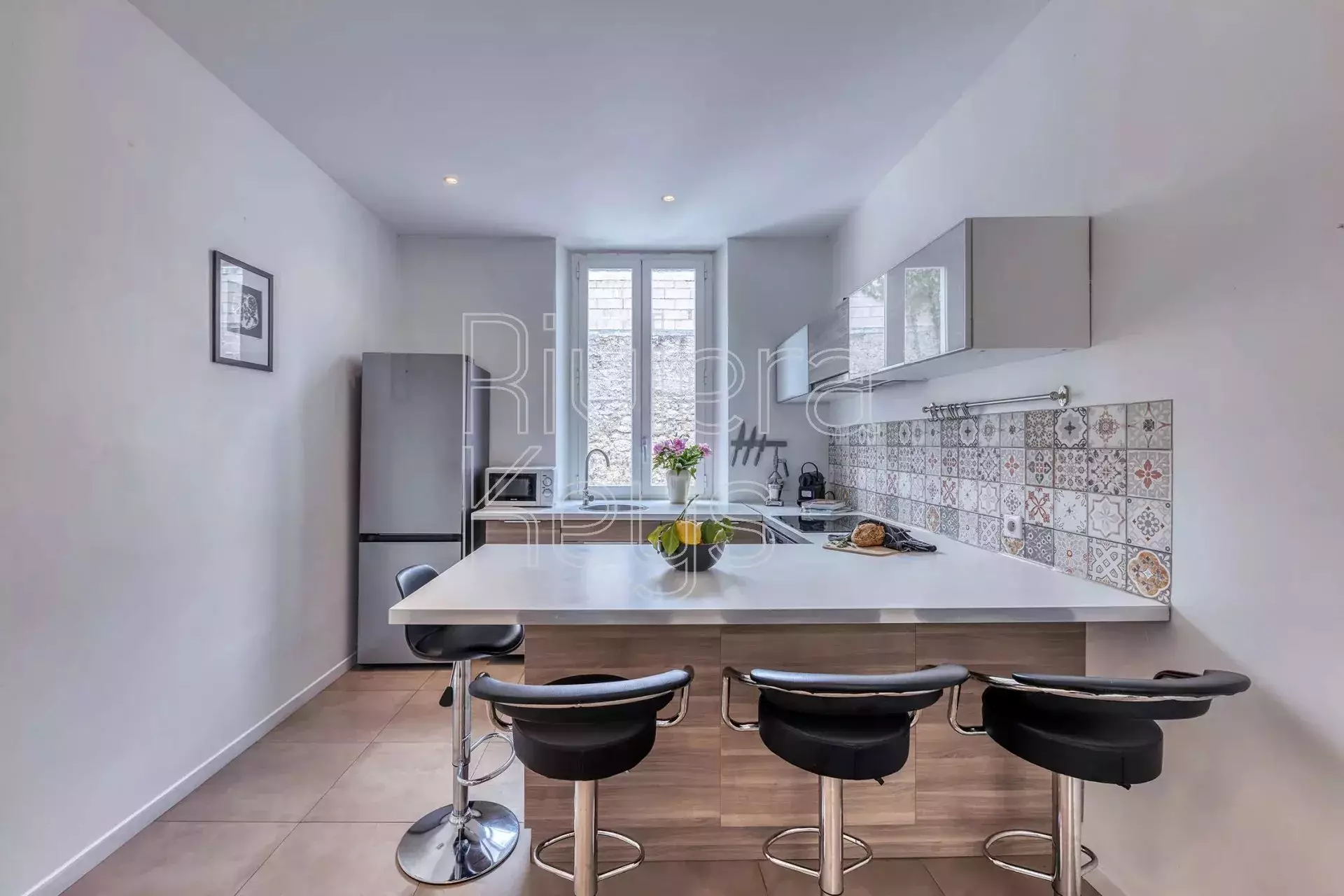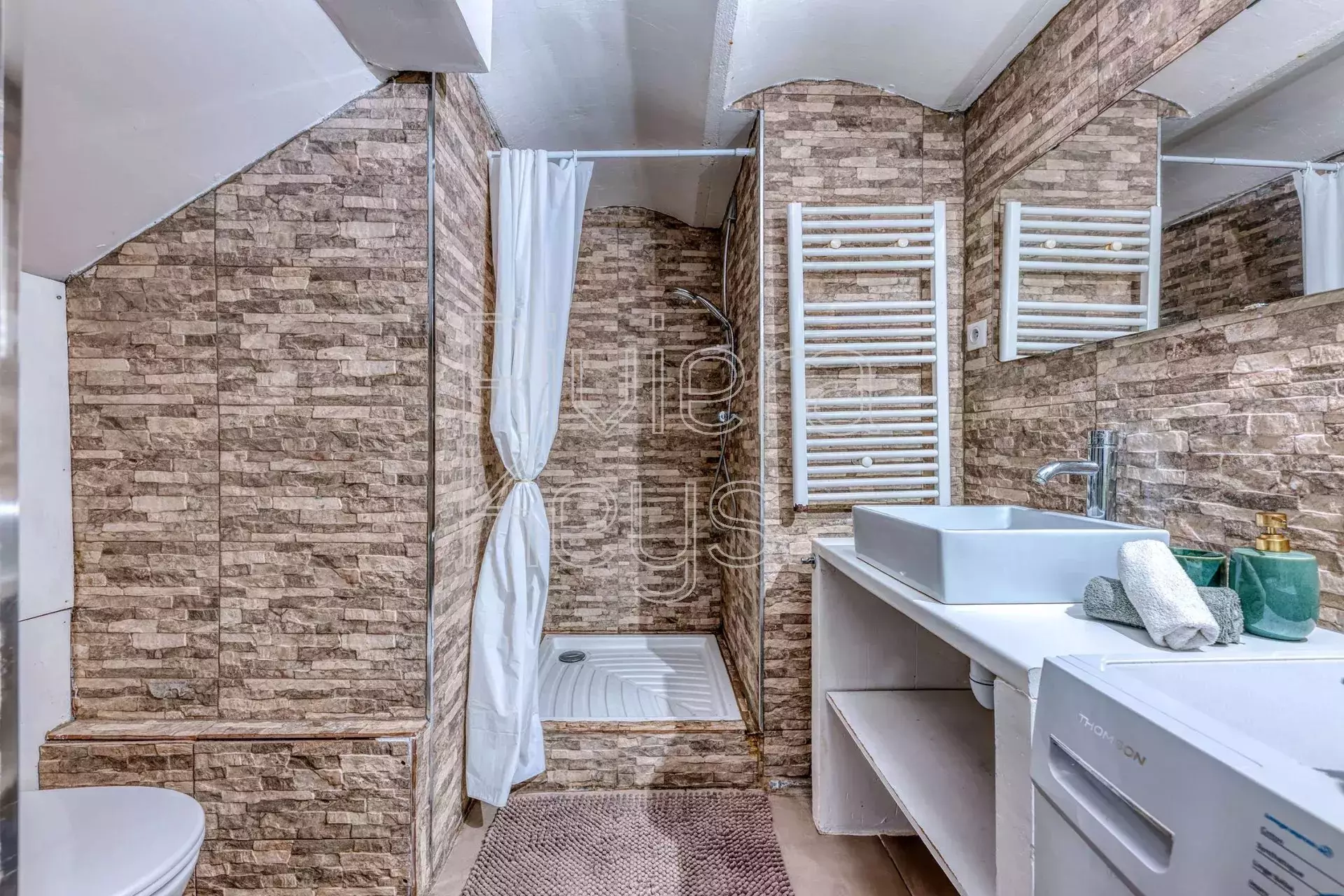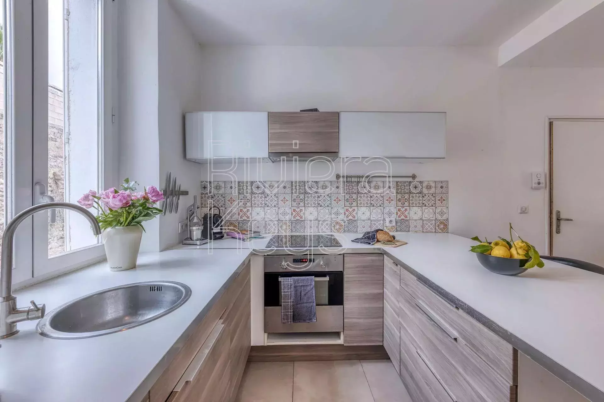 Cannesin Petit Juas’n arvostetulla alueella, rauhallisen tien varrella sijaitseva kaksikerroksinen rivitaloasunto, jolla on oma pieni puutarha.