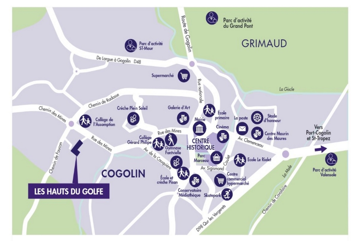 Les Hauts du Golfe tulee olemaan viehättävä, provencelaistyylinen rivitaloyhtiö n. 15 minuutin kävelymatkan päässä Cogolinin vanhan kaupungin kaupoista, ravintoloista, putiikeista ja tapahtumista. Täältä on matkaa 11 km Saint-Tropez’n legendaariselle kylälle, 7 km Port Grimaud’n satamaan, rannalle ja palveluihin, 10 km golfkentille ja n. 2,5 km supermarkettiin. Nizzan lentokenttä sijaitsee n. 100 km:n päässä. Tämä on rauhallinen ja luonnonläheinen, mutta eloisa alue, jossa palvelut, ranta, Provencen viiniviljelmät ja monet kulttuurielämykset ovat helposti saavutettavissa.