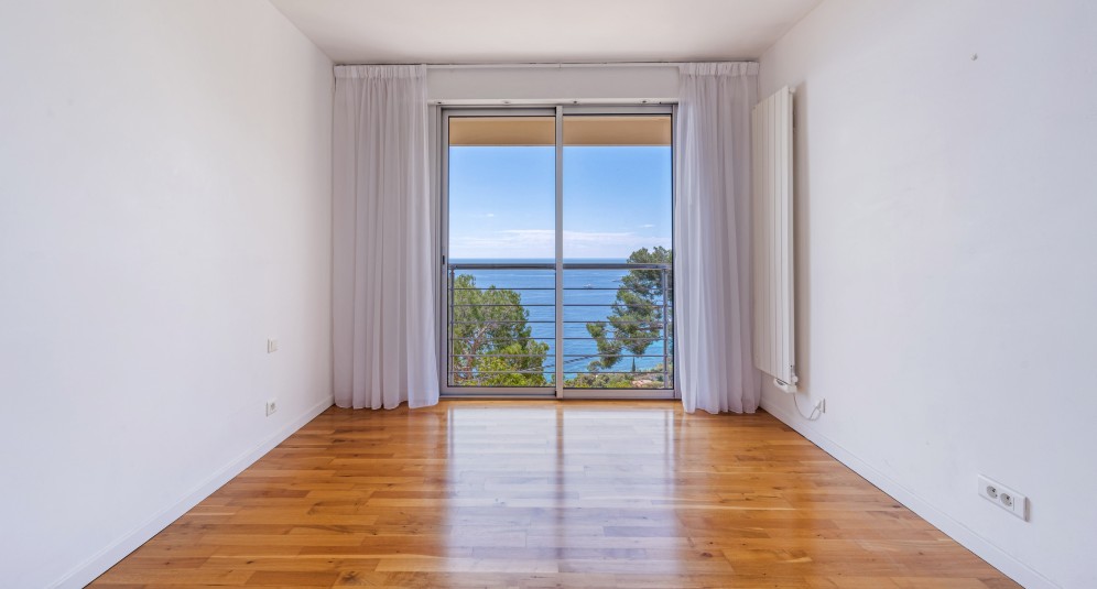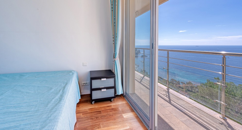 Ezen maisemarinteellä, rauhallisen tien varrella sijaitseva kolmikerroksinen paritaloasunto, jolta aukeaa huikeat panoraamanäkymät merelle.