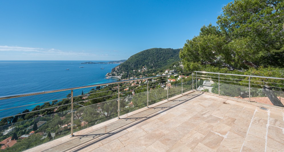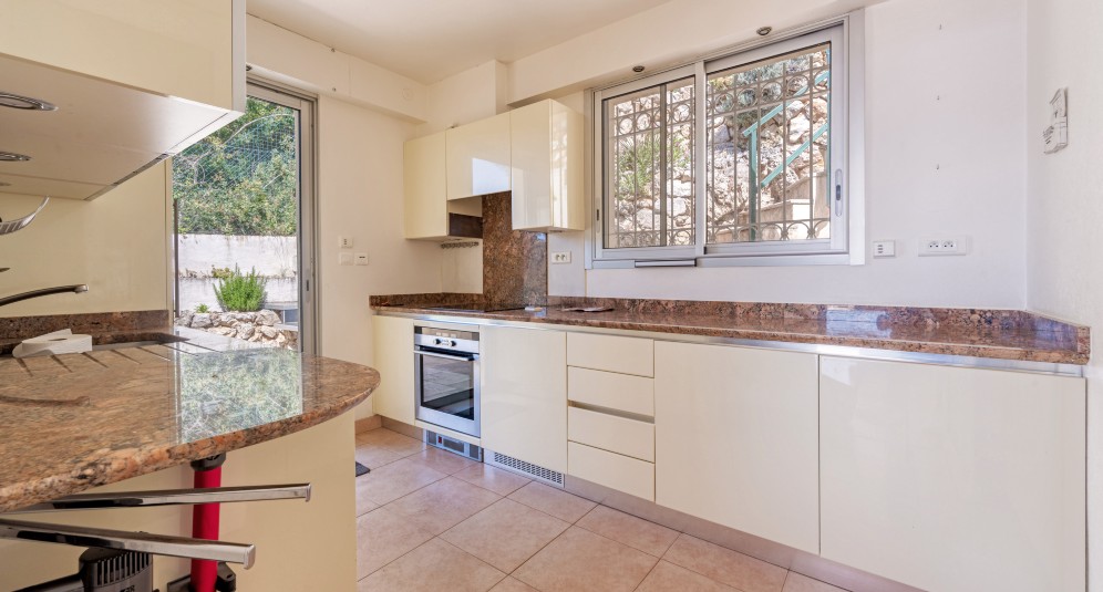 Asunnossa on valoisa olohuone, erillinen keittiö, neljä makuuhuonetta, kolme kylpyhuonetta ja kolme wc:tä. Useita terasseja ja puutarha.