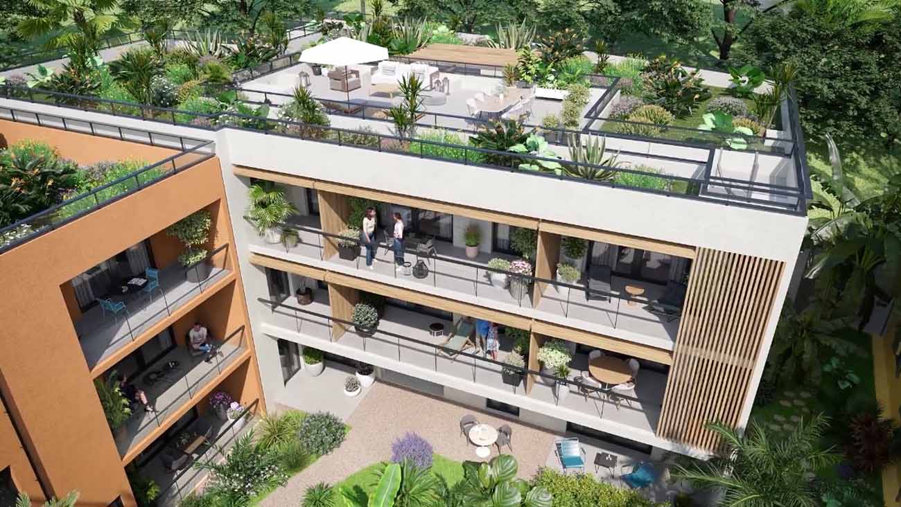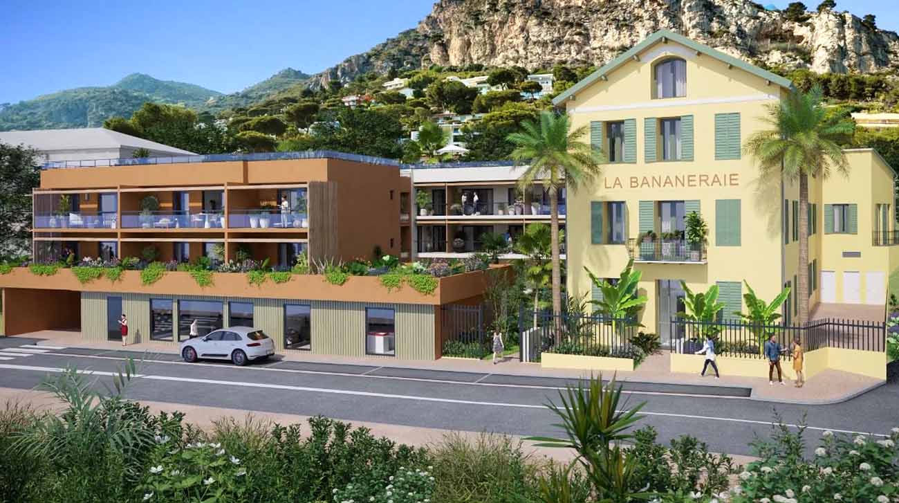Bananeraie on historialtaan legendaarinen, levähdyspaikkana toiminut hotelliravintola, joka on sijainnut tällä tontilla 1800-luvulta lähtien. Sen alkuperäinen rakennus entisöidään ja sen kylkeen nousee kaksi modernia, maisemaan sulautuvaa ja matalaa rakennusta, jotka tarjoavat 24 korkeatasoista asuntoa. Katutasoon tulee kaksi liiketilaa ja kulku portin kautta asuntoihin läpi taloyhtiön ihastuttavan sisäpihan, jonka on suunnitellut kuuluisa maisema-arkkitehti Jean Mus. Puutarhassa tulee olemaan erilaisia palmuja, japanilainen polku, rauhoittavasti kohiseva vesiputousseinä – ja kunnianosoituksena tontin historialle – banaanipuita.