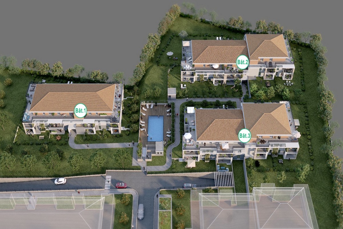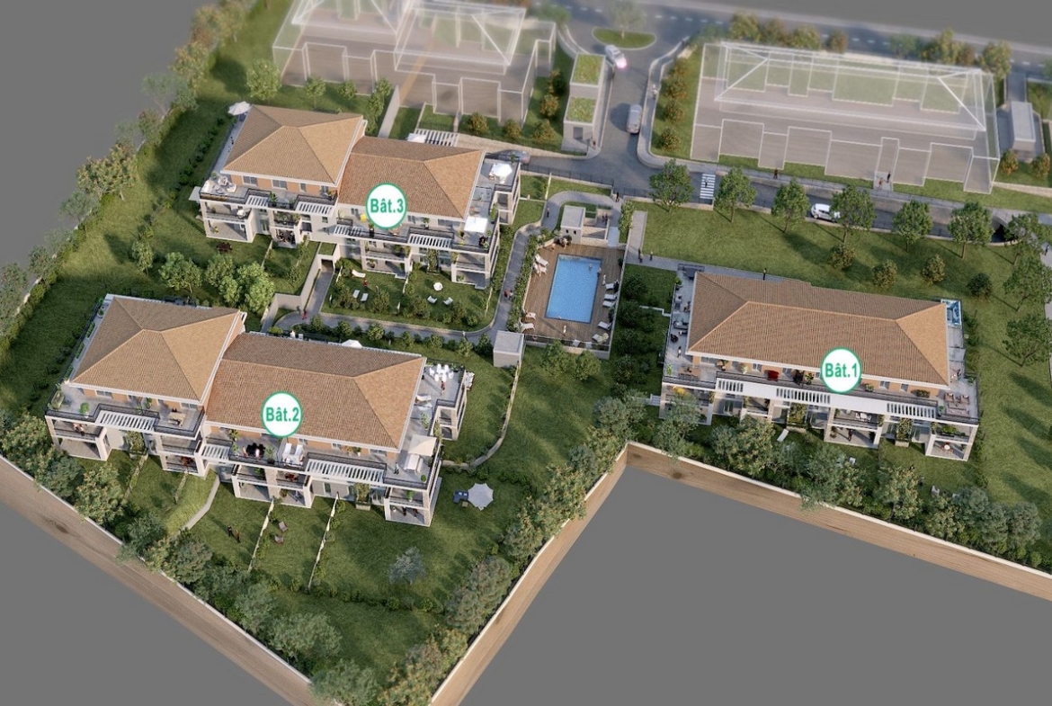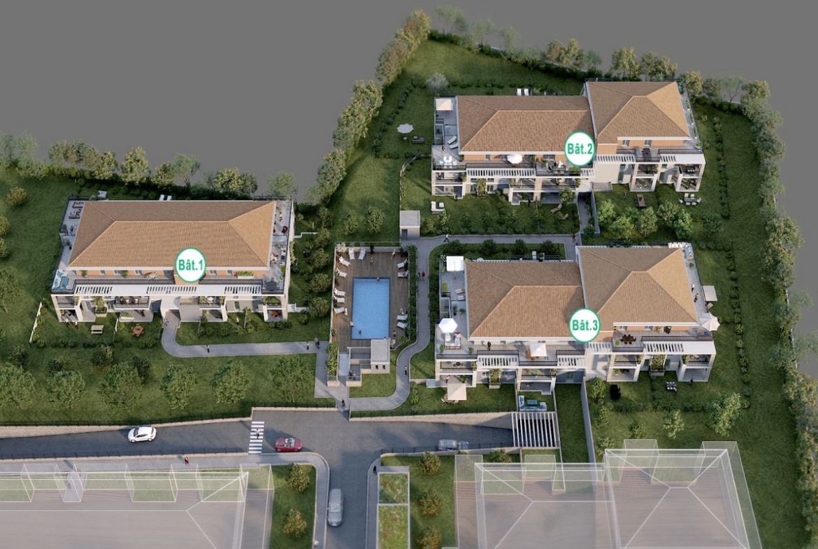 L’Escale muodostuu kolmesta, ranskalaisittain 2-3-kerroksisesta rakennuksesta, joiden väliin ja reunoille jäävä puistoalue rauhoittaa vehreydellään ja joiden keskellä sijaitseva uima-allas viilentää kesäpäiviä. Kaikki parkkipaikat on sijoitettu maan alle, josta on helppo kulku asuinkerroksiin hissillä. Monilla asunnoilla on omaa pihaa – rinneratkaisun vuoksi eri tasoissa. Kaikilla asunnoilla on parveke tai terassia. Asunnoilla on suuret ikkunat, joista aukeaa näkymät taloyhtiön pihalle. Säilytystilaksi on mahdollista ostaa kellarivarasto erikseen.