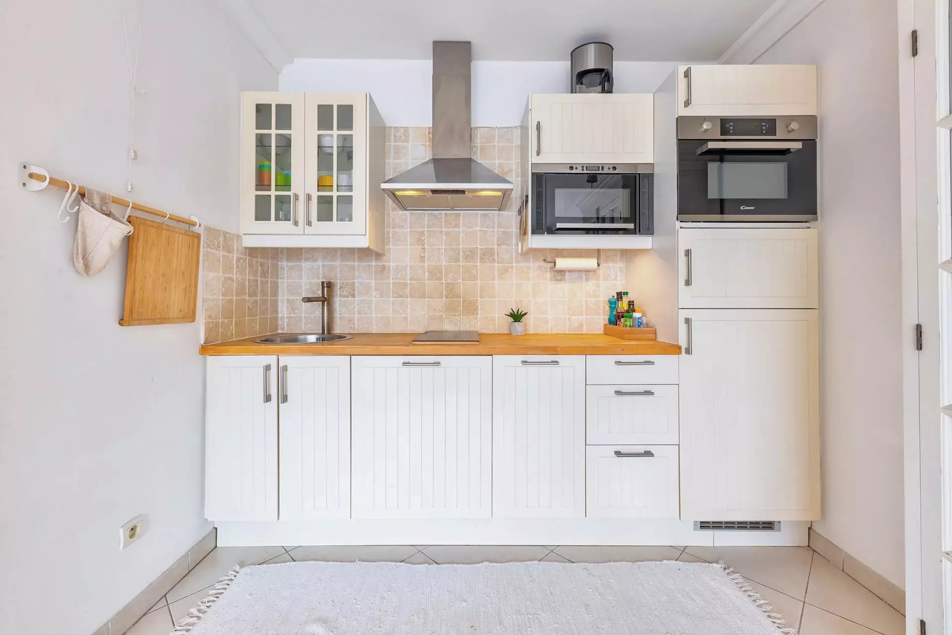 Asunnossa on eteinen, valoisa olohuone avokeittiöllä, makuuhuone, kylpyhuone sekä erillinen wc. Olohuoneesta ja makuuhuoneesta on käynti 12 m2:n terassille, jolta meri pilkahtaa. Asuntoon kuuluu autotalli sekä kellarivarasto.