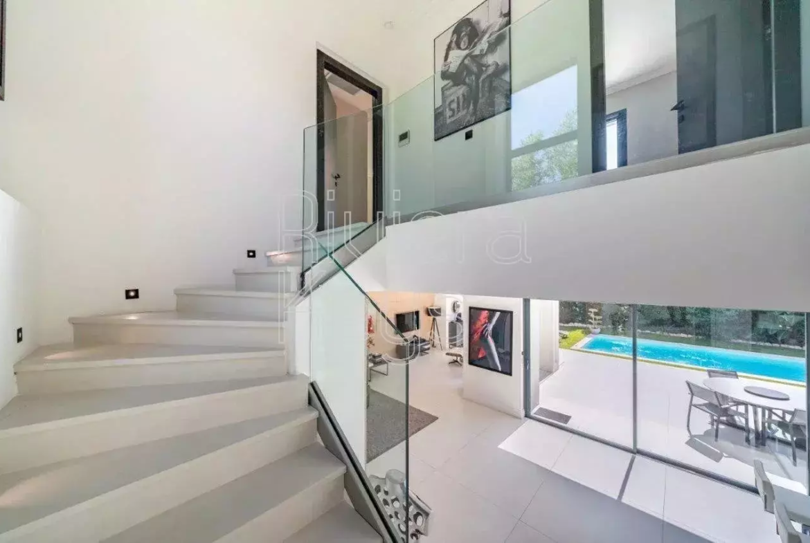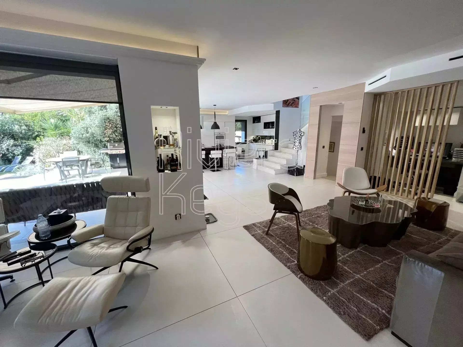 Juan-les-Pins’ssä, rauhallisessa ja suljetussa domainessa sijaitseva, upea erillistalo eteläisellä tontilla ja uima-altaalla.