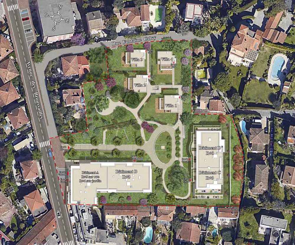 Cinq Sens käsittää kaksi kerrostaloa ja 4 erillistaloa. Niiden väliin jää poikkeuksellisen suuri viheralue, johon istutetaan välimerellisiä kasveja, kuten oliivi-, magnolia- ja hedelmäpuita sekä palmuja. Kaikki autopaikat tulevat sijaitsemaan maan alla, jotta puutarhassa vallitsisi rauha. Kaikilla asunnoilla tulee olemaan ulkotilat, joista valtaosalla on avoimet ja vehreät näkymät kauniiseen puutarhaan. Taloilla on omat yksityiset pihat.