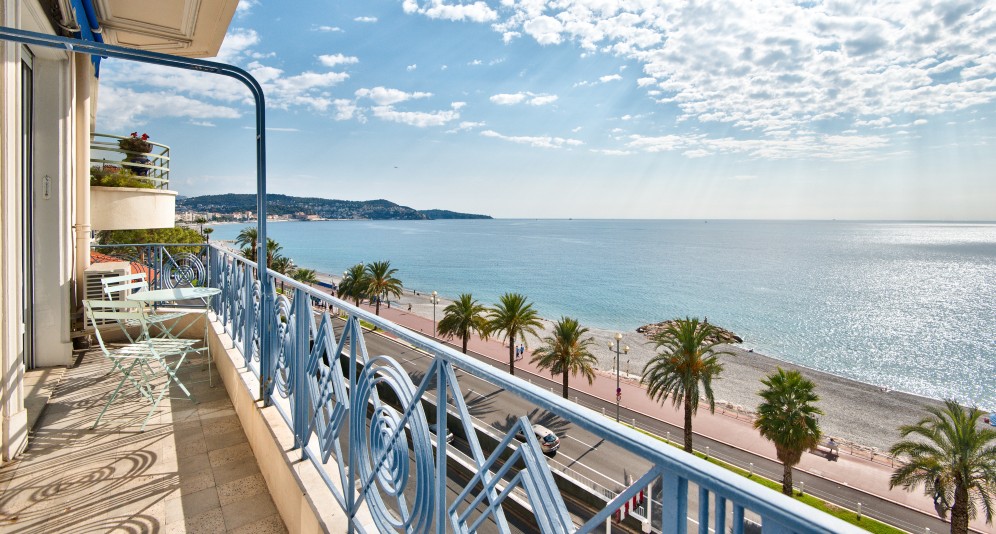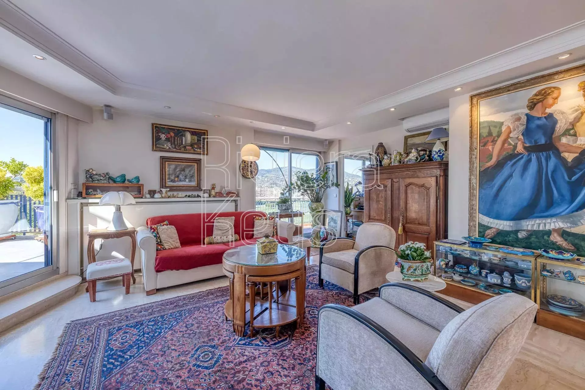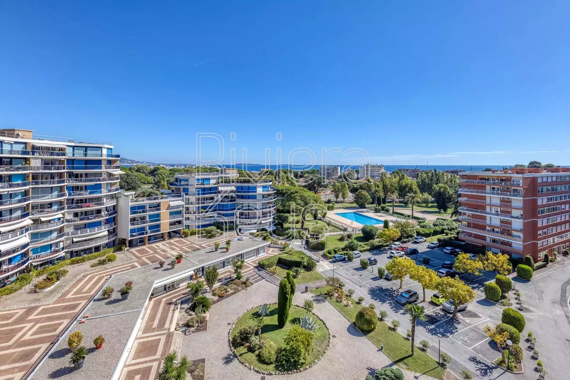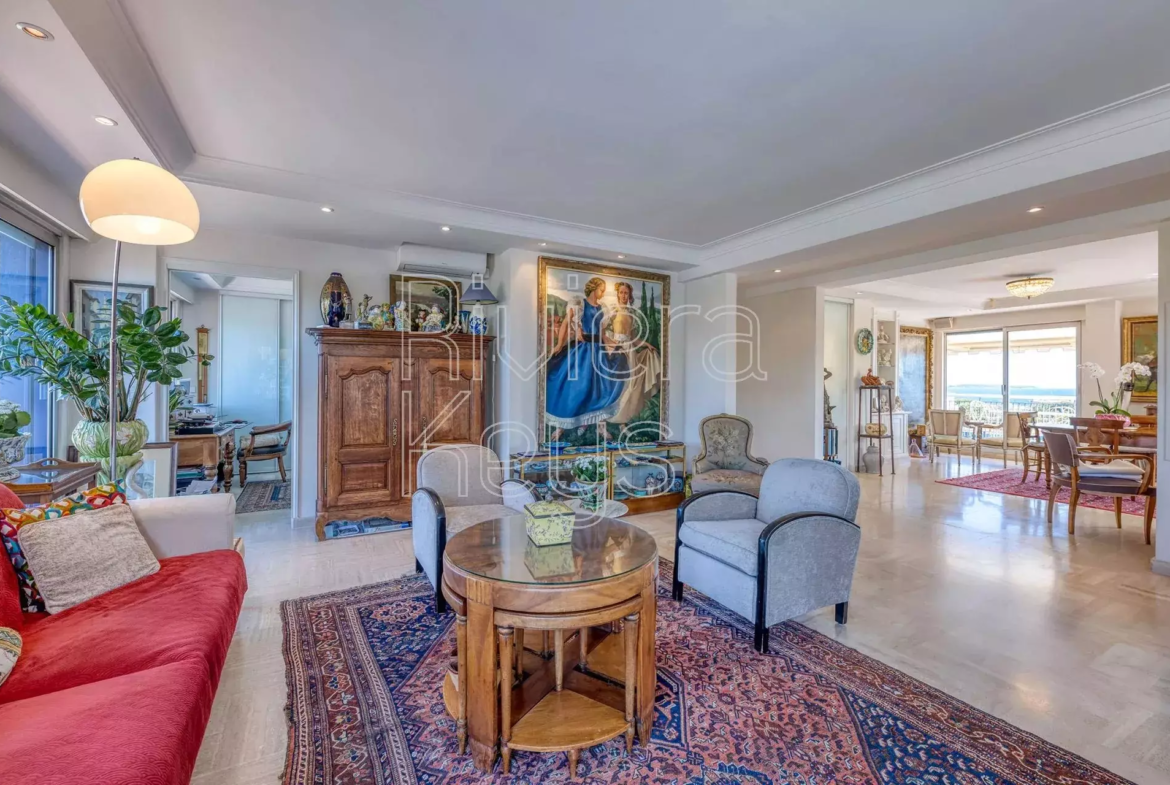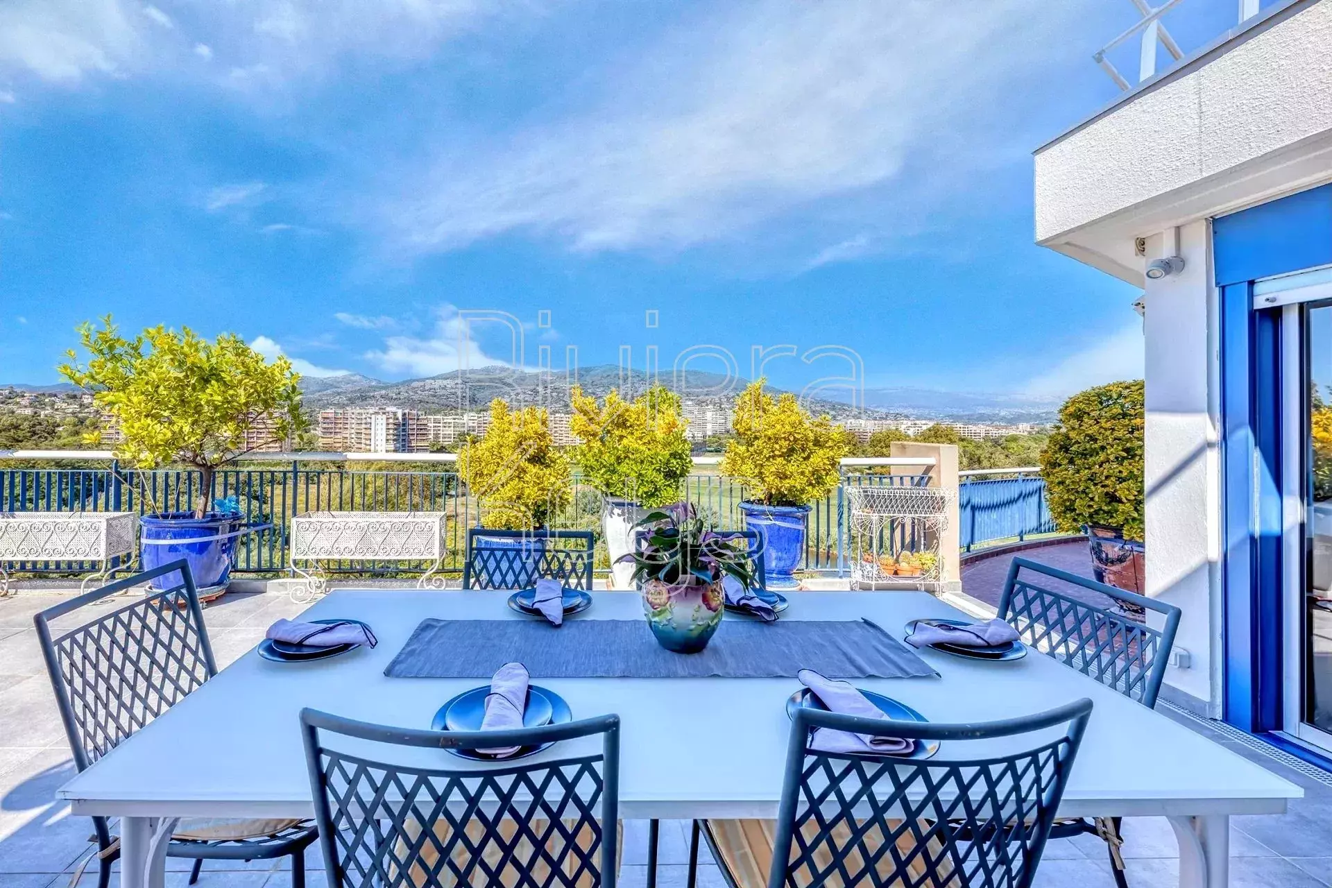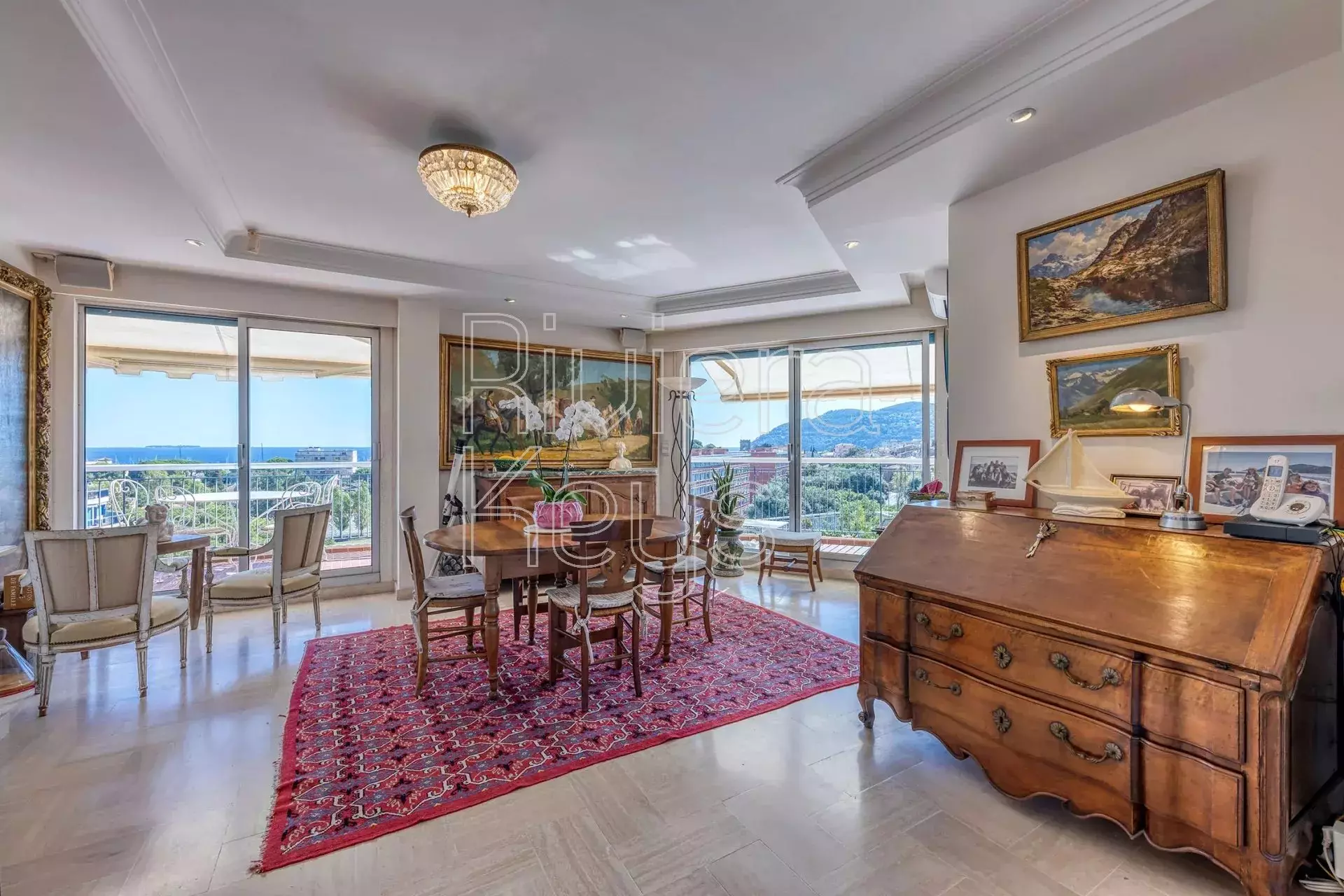 Mandelieu-la-Napoulessa sijaitseva, ylimmän kerroksen asunto, jolla suuri terassi ja panoraamanäkymät merelle.