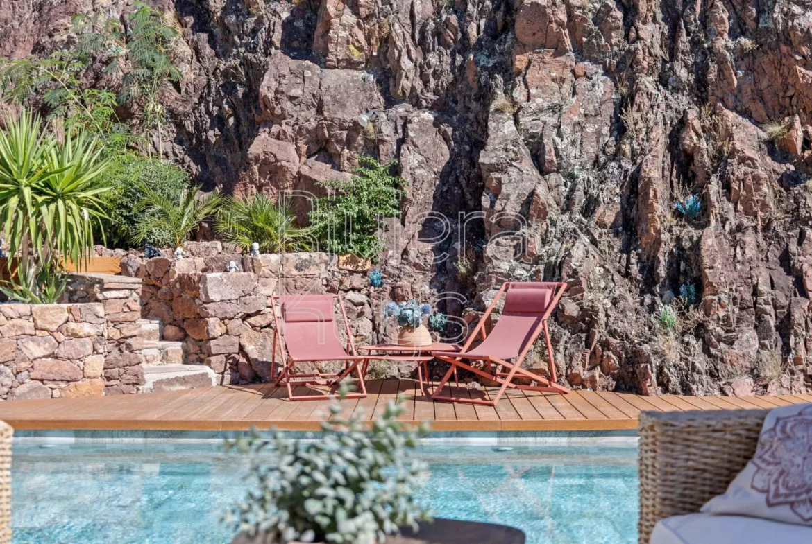 Mandelieu-la-Napoulessa, suljetussa domainessa, Estérelin kukkuloiden rauhassa sijaitseva remontoitu talo, jolta aukeaa jylhät maisemat.