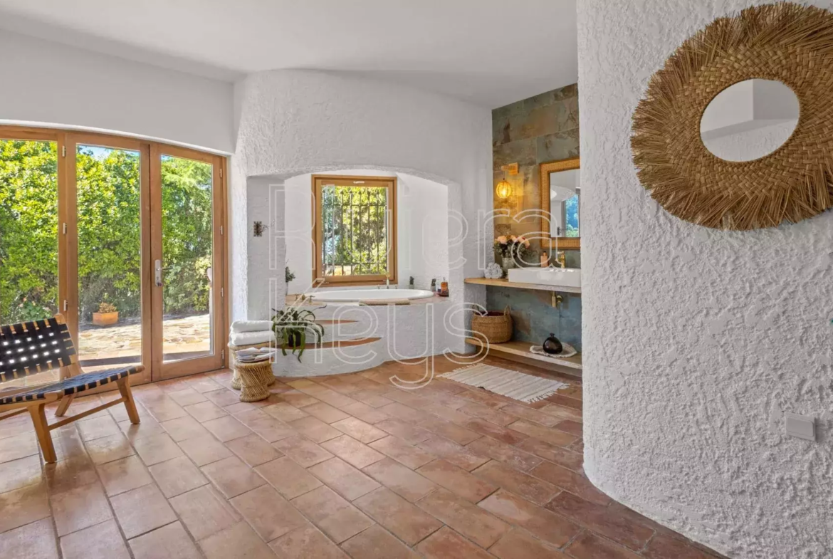 Talon alakerrassa on tunnelmallinen olohuone ja puoliavoin keittiö, makuuhuone omalla kylpyhuoneellaan sekä kellari. Yläkerrassa on kolme makuuhuonetta omilla kylpyhuoneillaan sekä työhuone. Kahdesta makuuhuoneesta on käynti yläterasseille. Olohuoneesta on käynti suurelle alaterassille, jossa lämmitetty uima-allas.