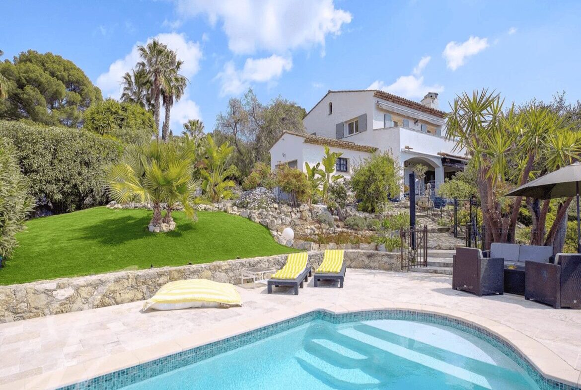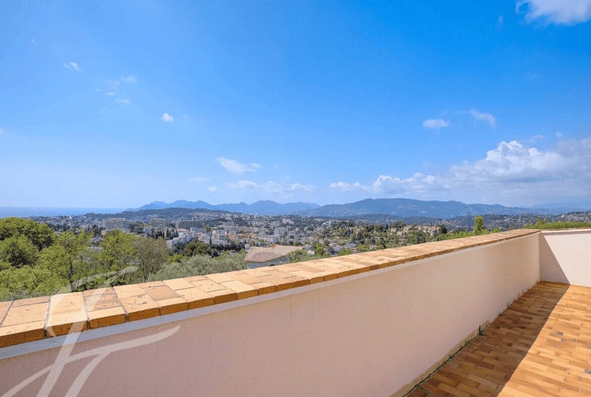 Mougins’n arvostetulla asuinalueella, lähellä Le Cannet’a ja Cannesia sijaitseva, täysin remontoitu talo, jolta aukeaa panoraamanäkymät merelle ja kukkuloille.