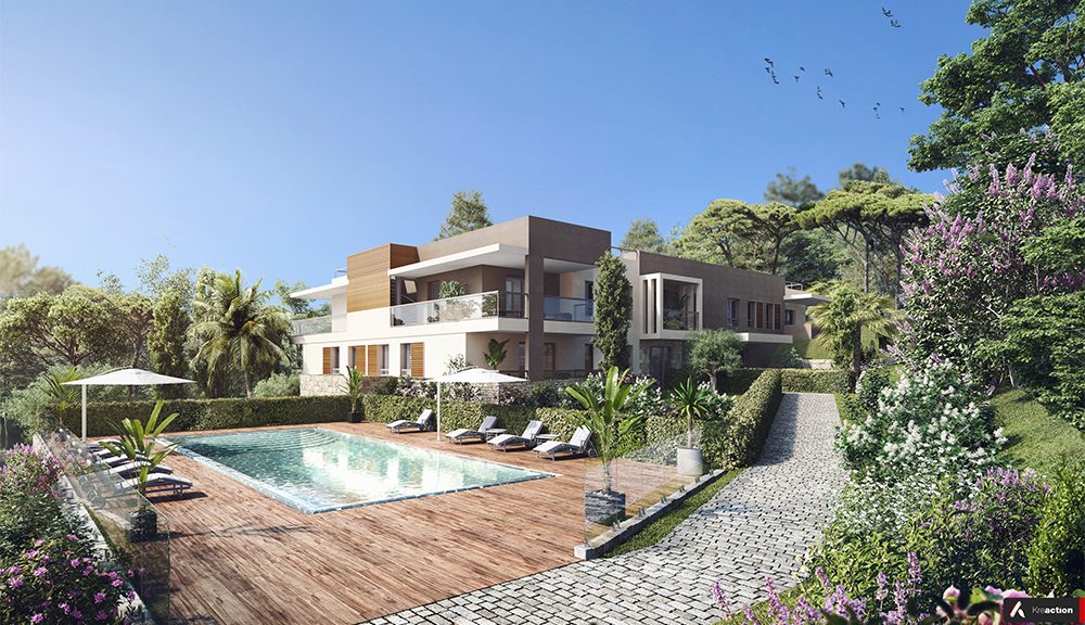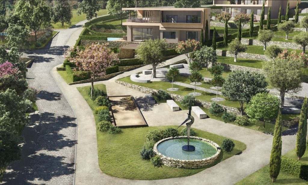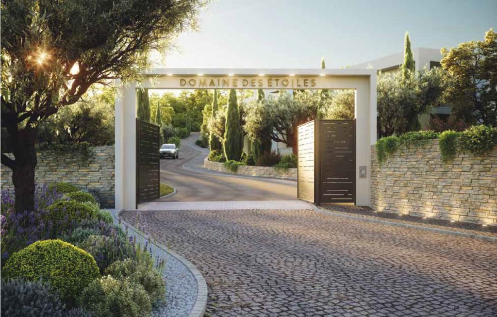 Domaine des Etoiles on luksustason taloyhtiö ja se rakennetaan rauhalliselle ja vehreälle kukkulalle Mouginsiin. Mouginsin pittoreskin vanhan kaupungit tunnelmalliset ja tasokkaat ravintolat ja taidegalleriat sijaitsevat vain 1,5 kilometrin päässä. Golfin ystäville taloyhtiön sijainti  on ihanteellinen, sillä lähimmälle kentälle ajaa vajaassa kymmenessä minuutissa. Yhteys moottoritielle on näppärä ja Nizzan lentokentälle ajaakin puolessa tunnissa.