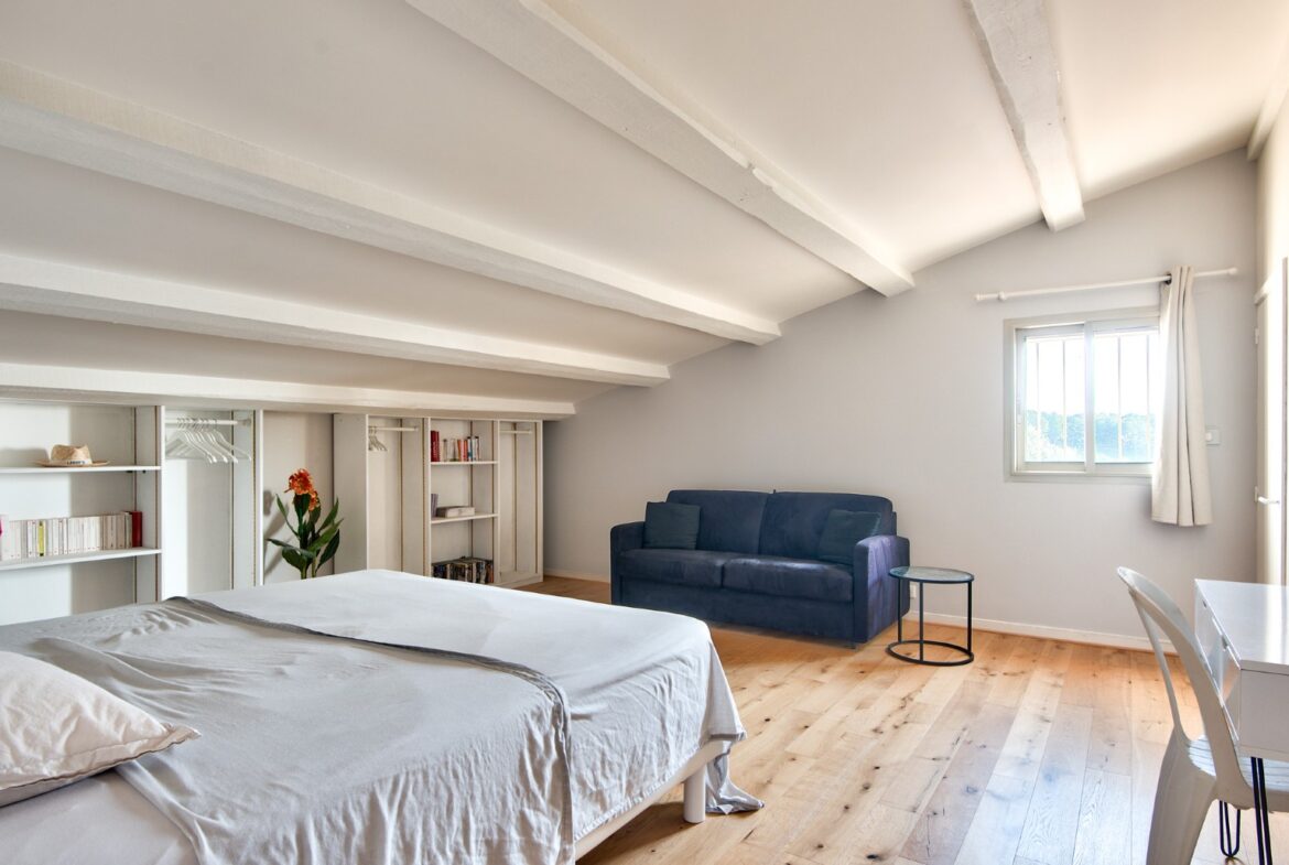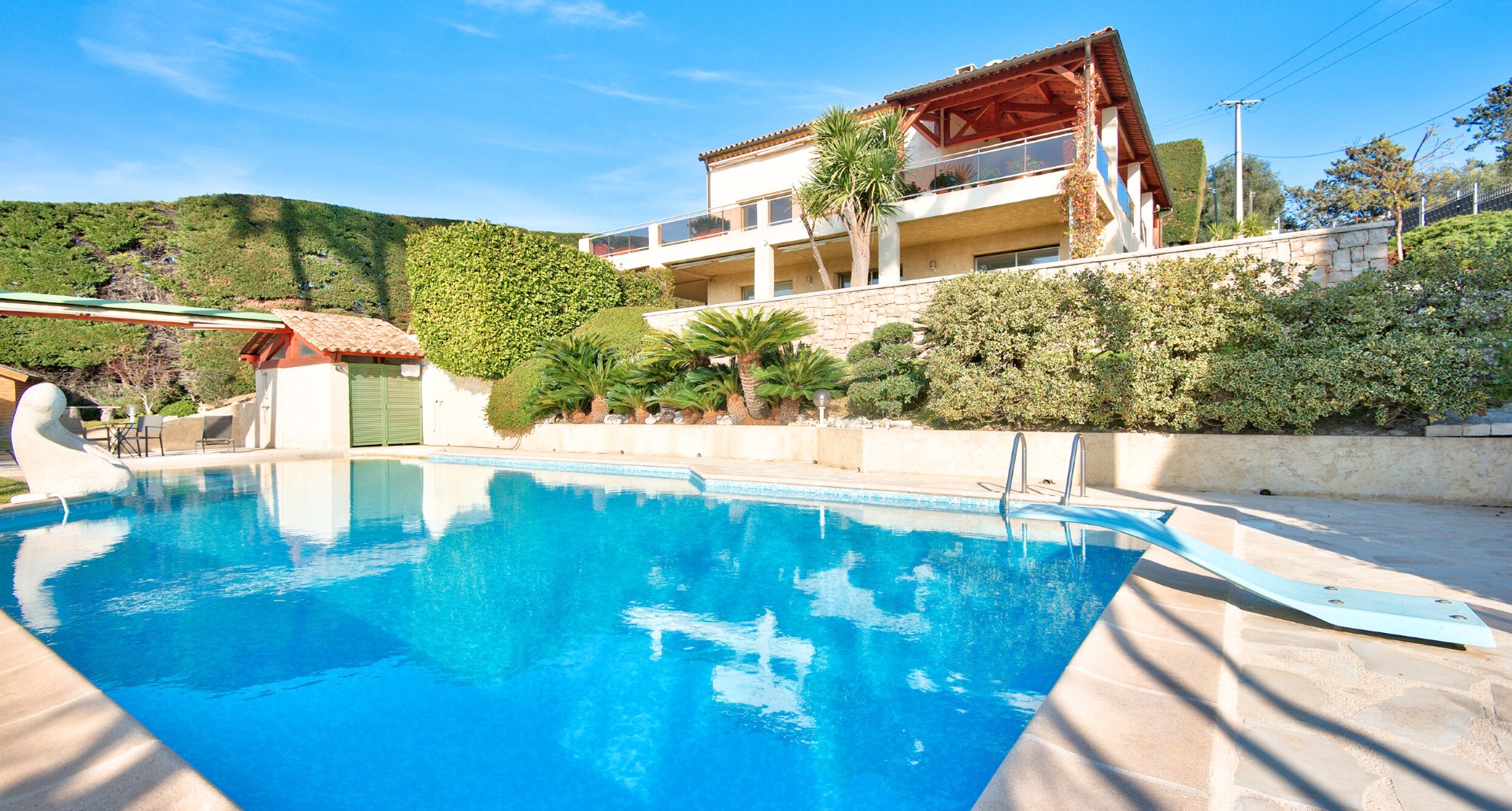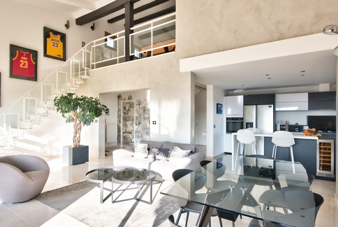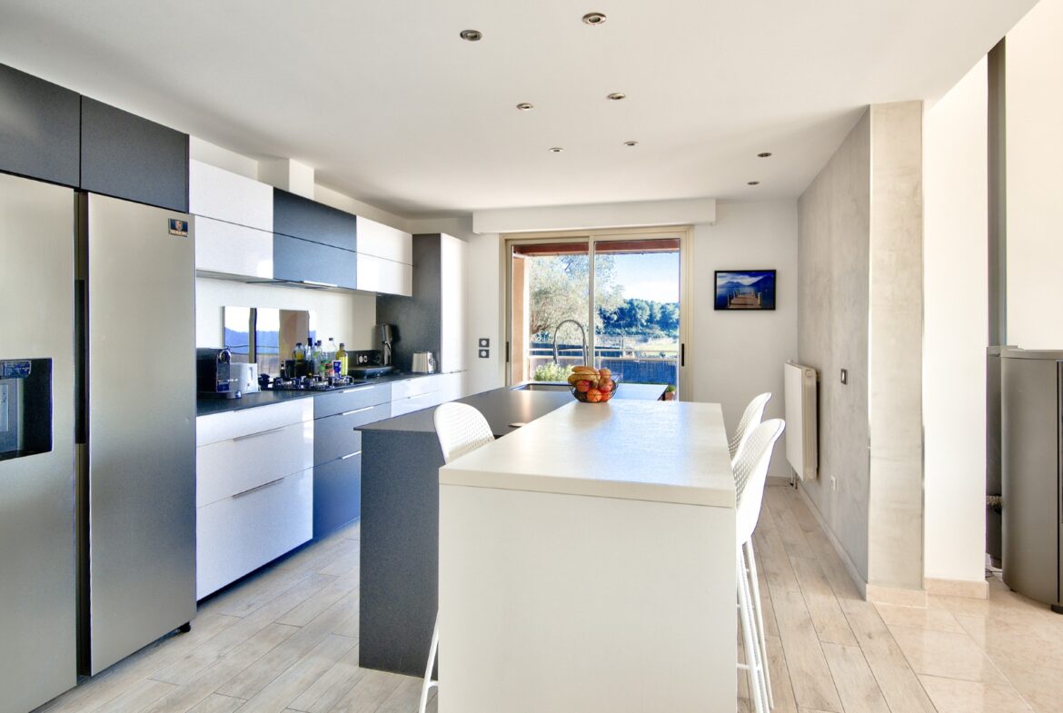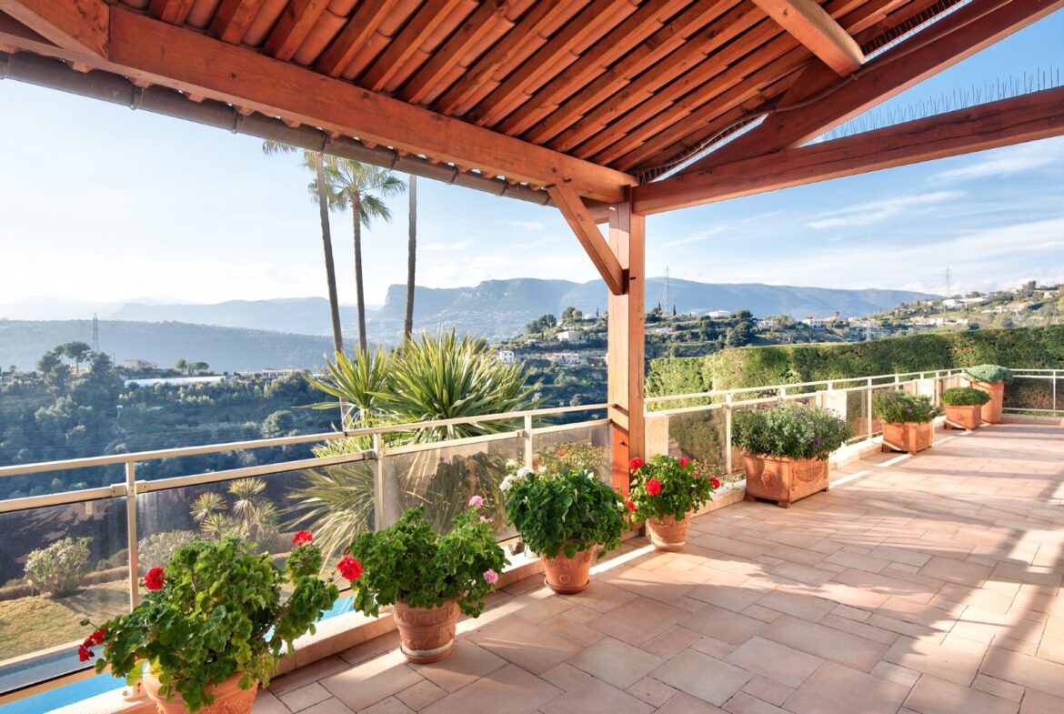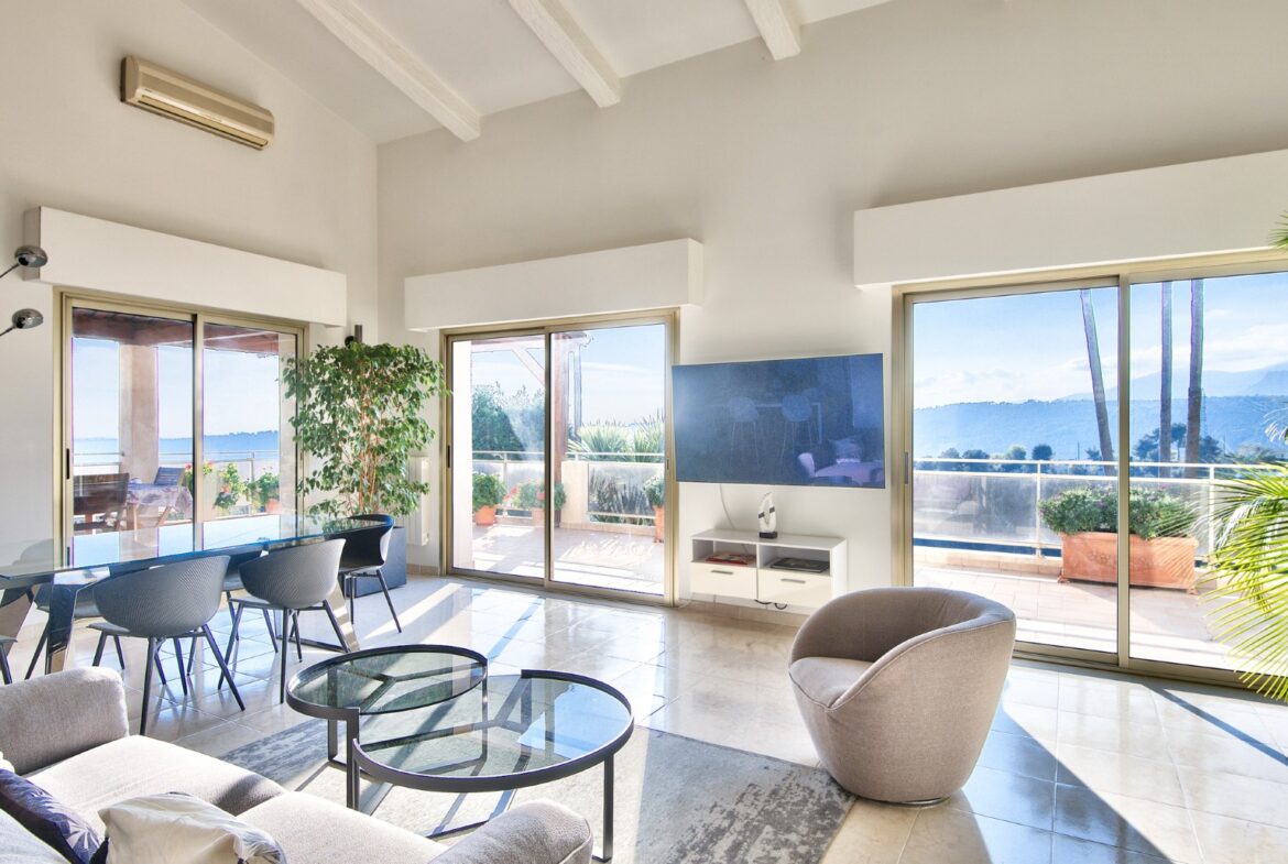 Nizzan Cremat’n kukkualla, rauhallisella ja vehreällä alueella sijaitseva kahdesta erillisestä asunnosta muodostuva talo, jolta aukeaa avoimet näkymät kukkuloille ja Cap d’Antibesiin saakka.