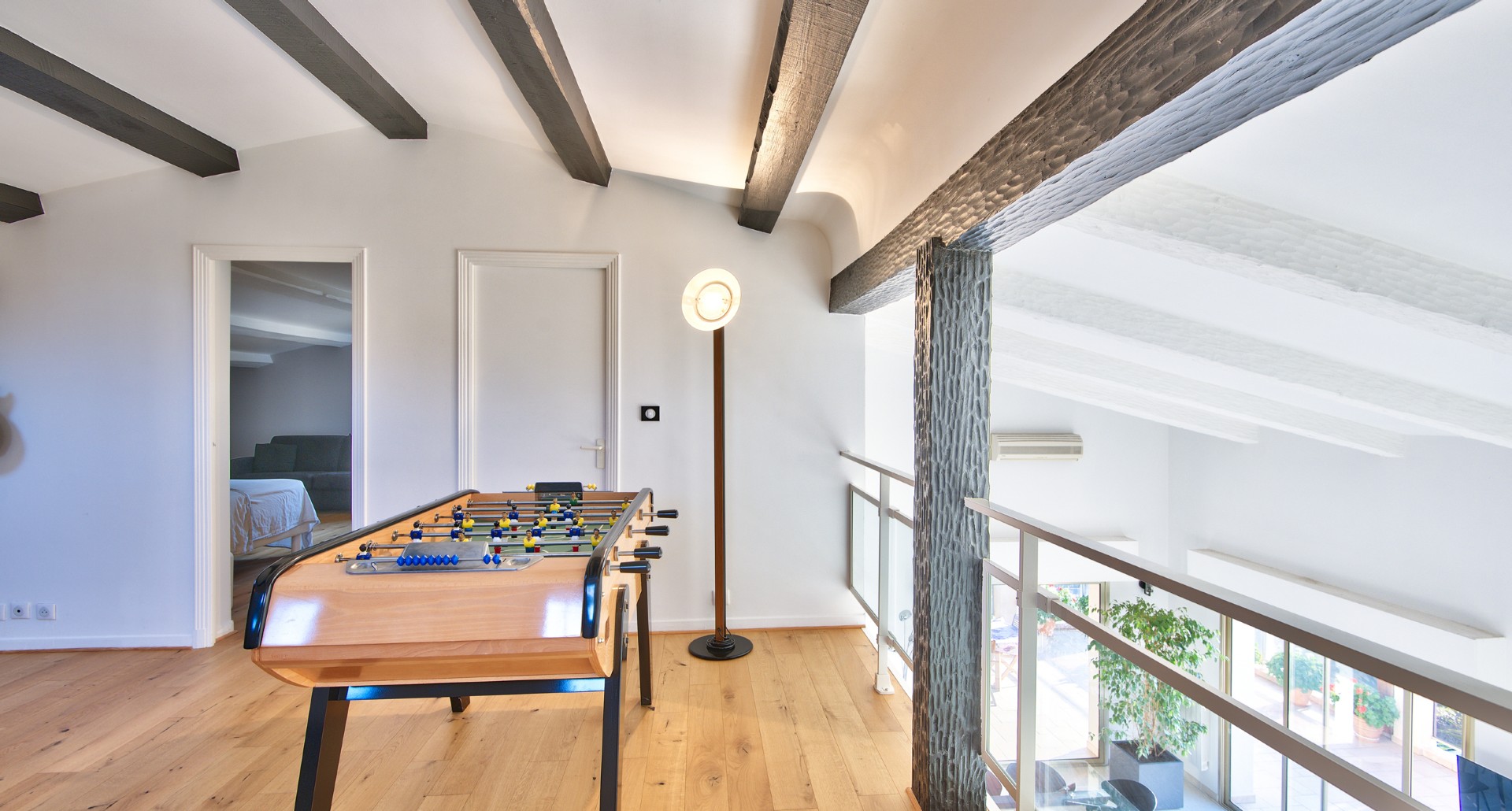 Talon kaksi asuntoa ovat 120 m2 ja 180 m2, ja ne voi helposti yhdistää toisiinsa. Toisessa asunnoista on korkea olohuone, jossa puoliavoin keittiö, parvi, kolme makuuhuonetta ja kaksi kylpyhuonetta. Toisessa asunnossa on tilava olohuone, keittiö, kaksi makuuhuonetta ja kylpyhuone. Talo on erittäin hyvin pidetty ja rakennuslupaa on jäljellä.