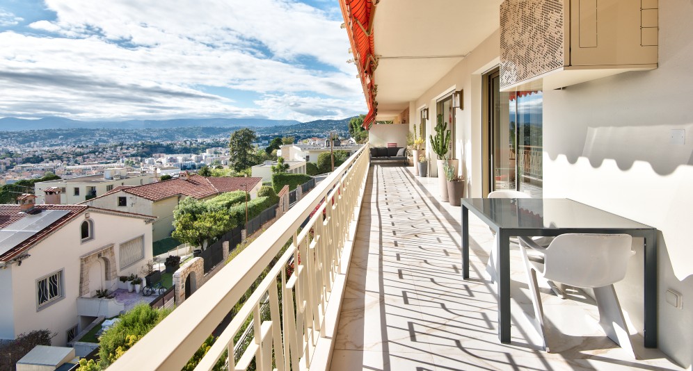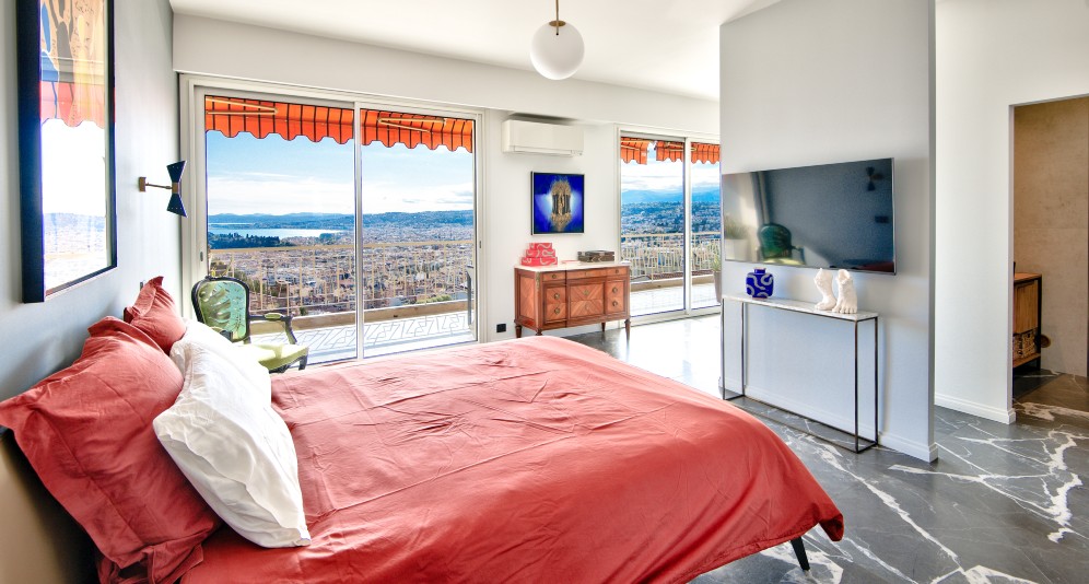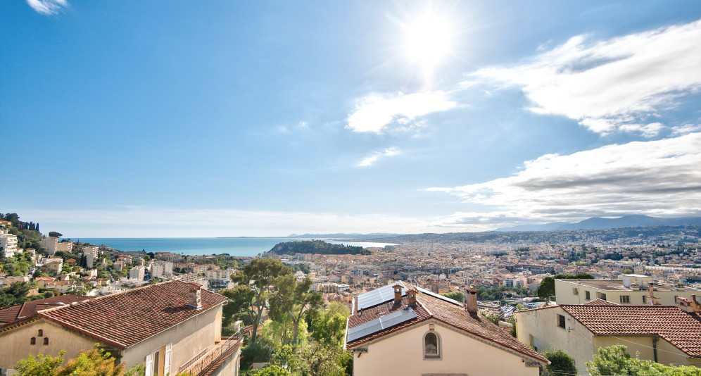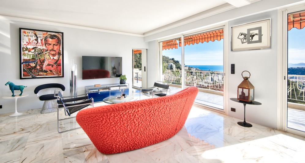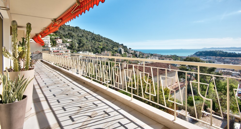 Nizzan ja Villefranche-sur-Merin välissä, Col-de-Villefranchella sijaitseva, erinomaisessa kunnossa oleva asunto, jolta aukeaa panoraamanäkymät kaupungin yli pitkälle merelle.