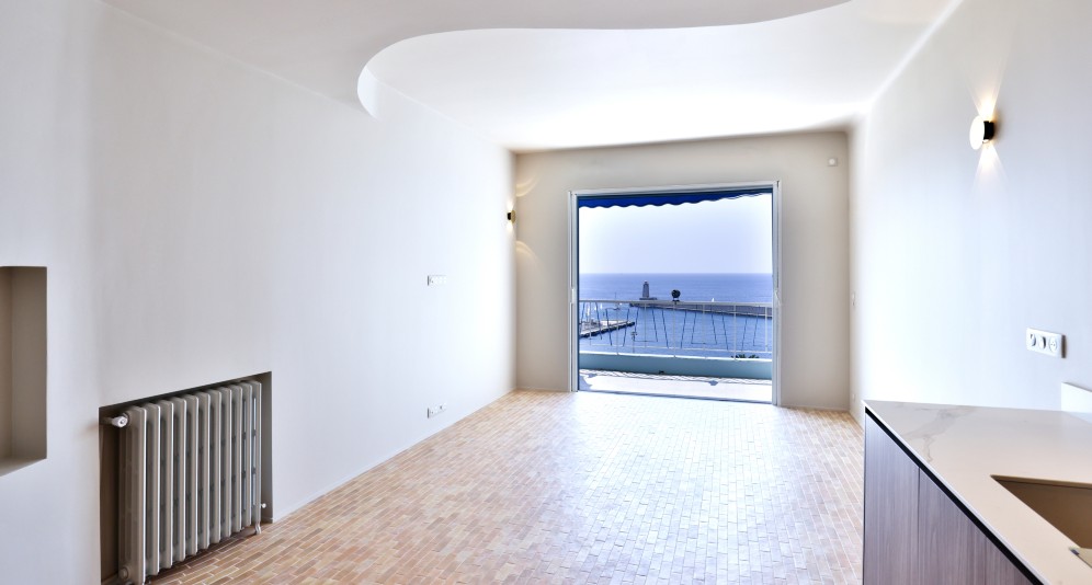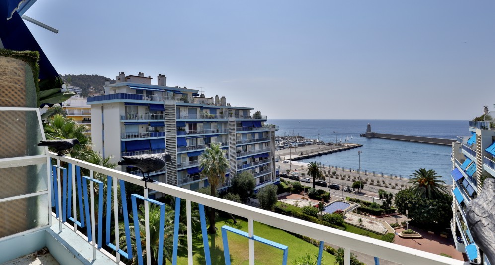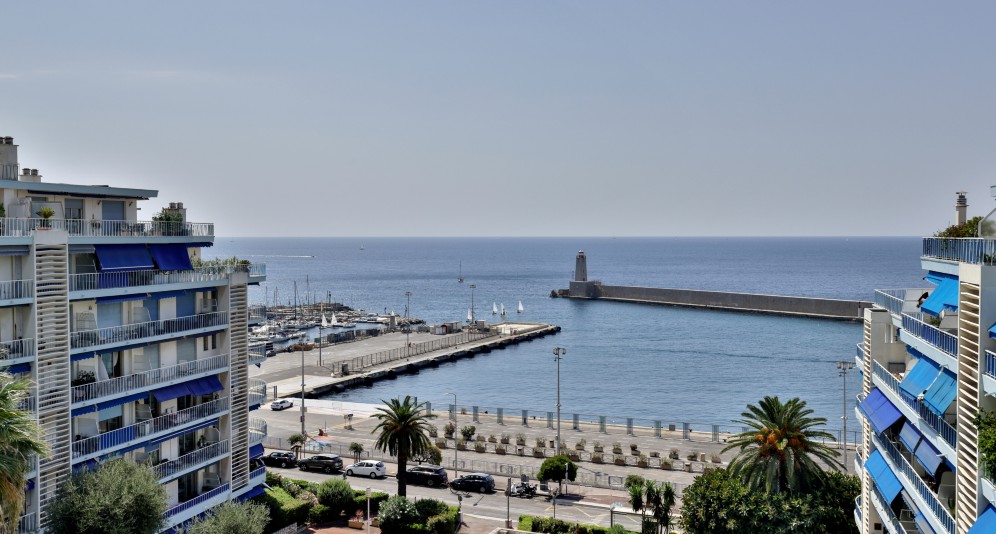Nizzan sataman arvostetun boulevard Franck Pilatten varrella, korkeatasoisessa taloyhtiössä sijaitseva, remontoitu läpitalon asunto, jonka terassilta merinäkymä.