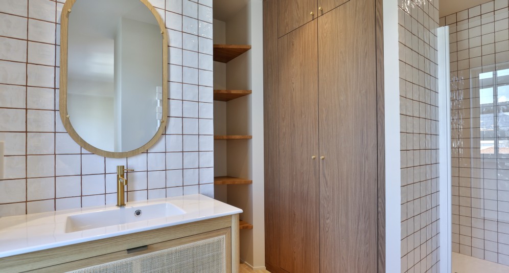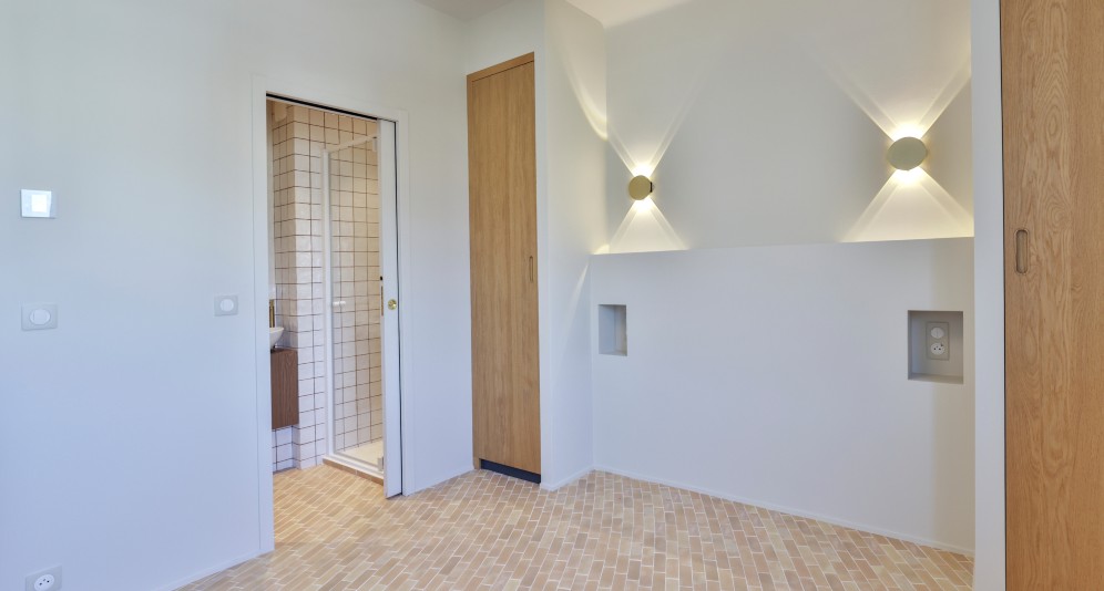 Asunnossa on eteinen, valoisa olohuone avokeittiöllä, kaksi tilavaa makuuhuonetta omilla kylpyhuoneillaan, joissa wc:t ja lisäksi kodinhoitohuone. Olohuoneesta on käynti etelään suuntautuvalle 10 m2:n terassille, jolta suora näkymä merelle. Makuuhuoneista on näkymät kukkuloille. Asuntoon kuuluu ulkoparkkipaikka ja tilava kellarivarasto. Asunto sijaitsee toiseksi ylimmässä kerroksessa. Talossa on hissi.
