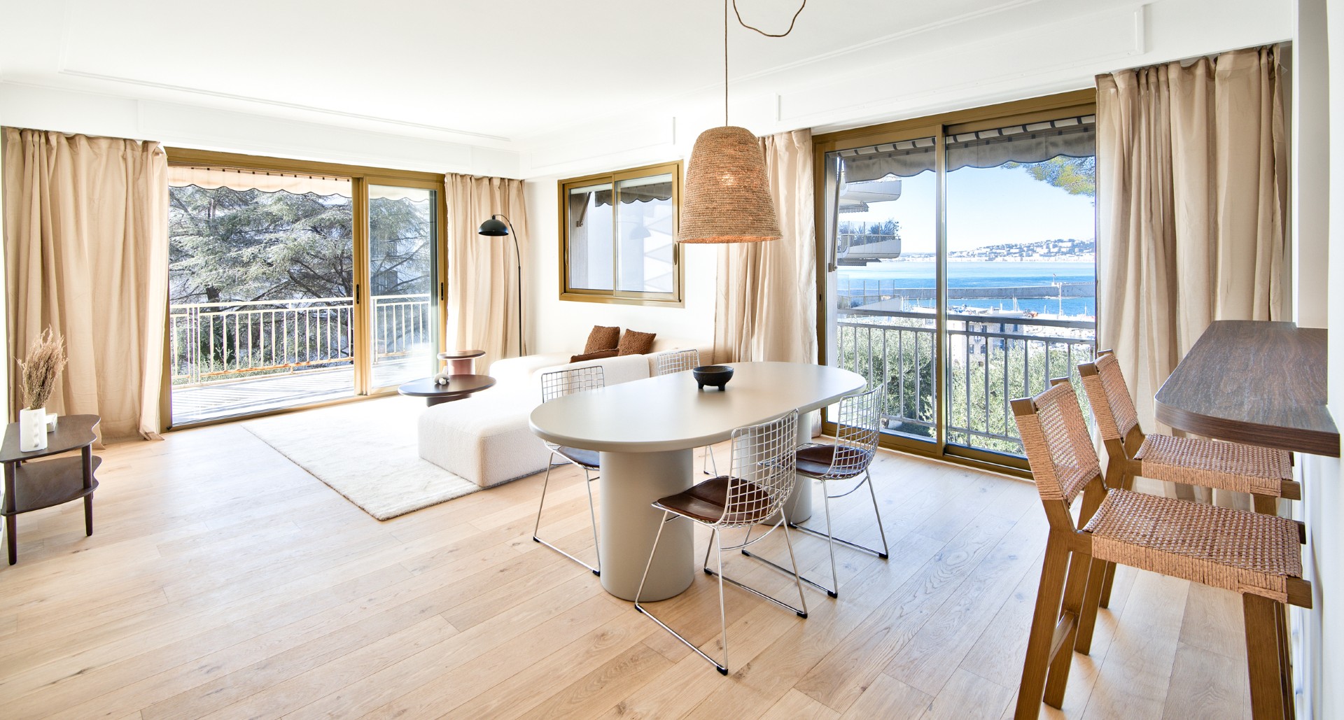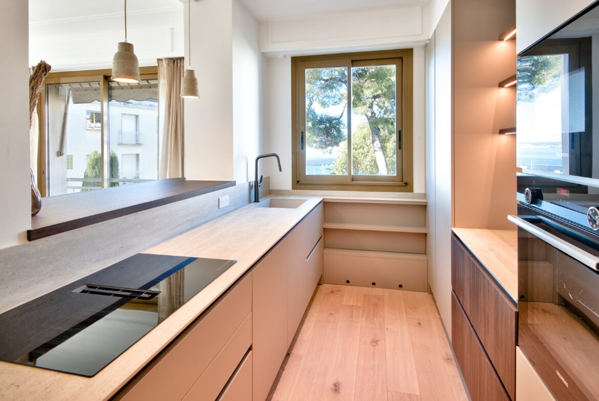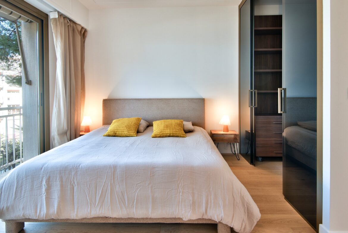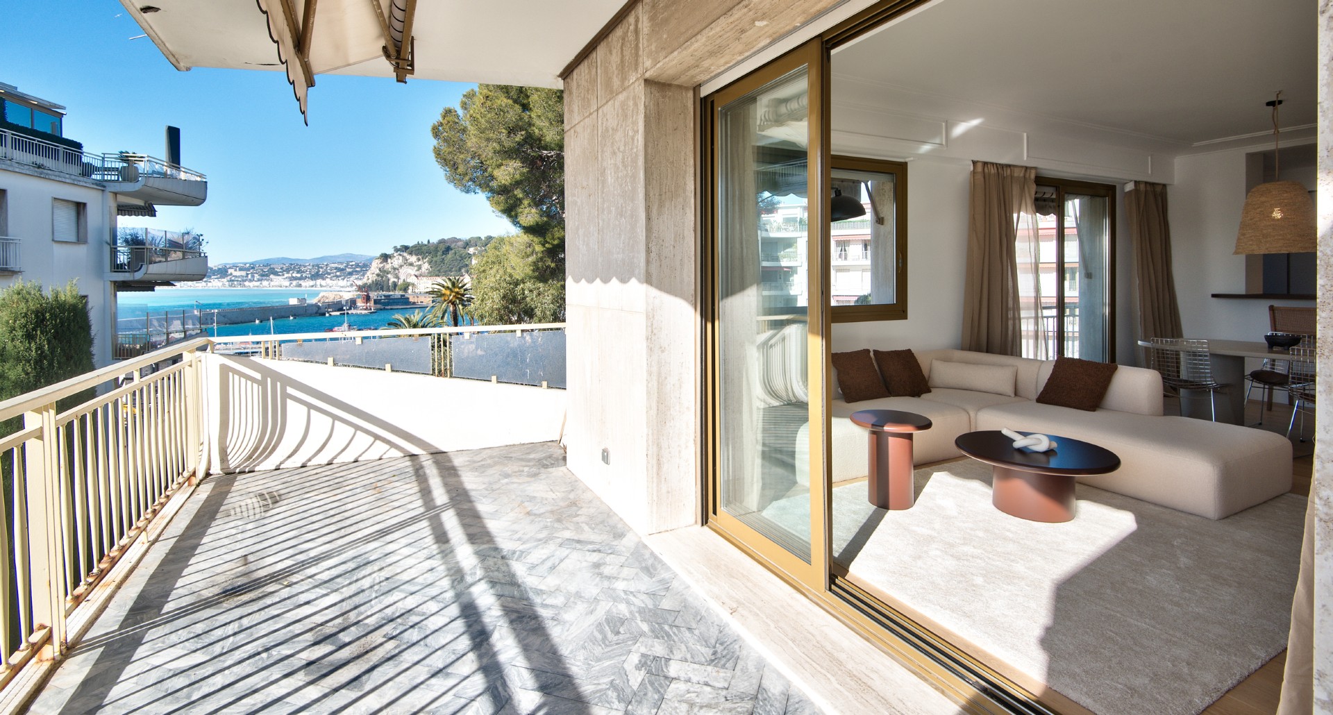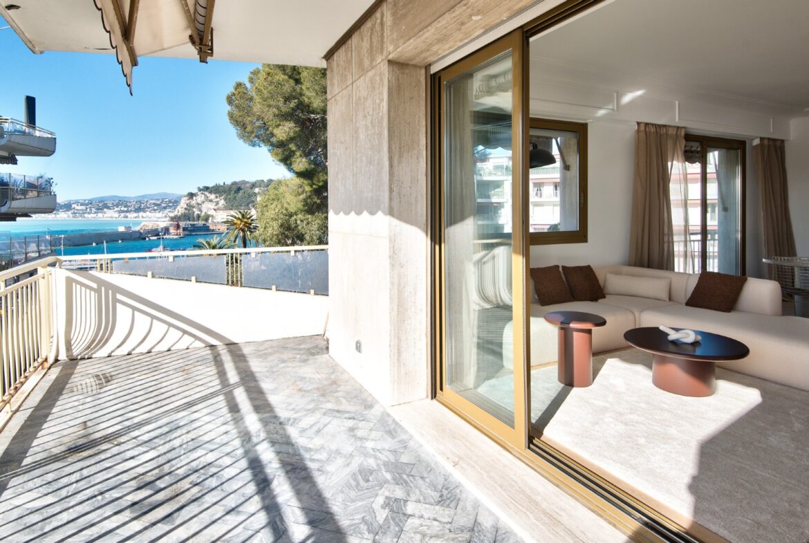 Nizzan arvostetun boulevard Franck Pilatten varrella, korkeatasoisessa taloyhtiössä sijaitseva, täysin remontoitu kulmahuoneisto, jolta merinäkymät.