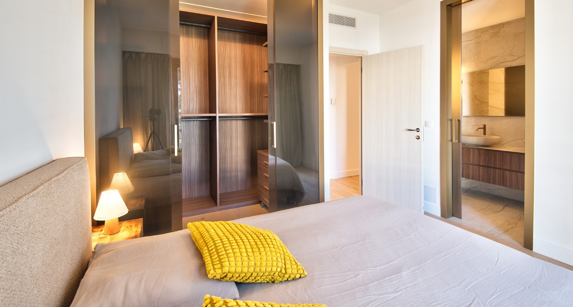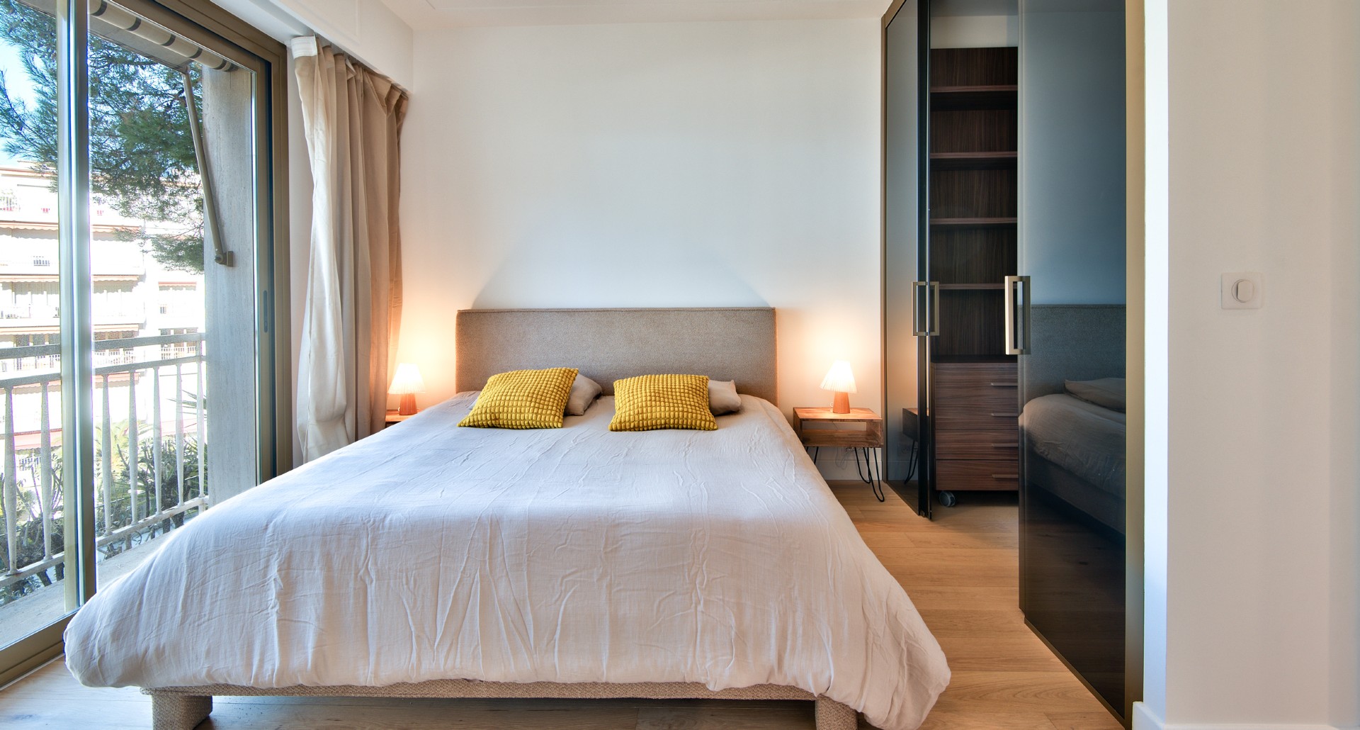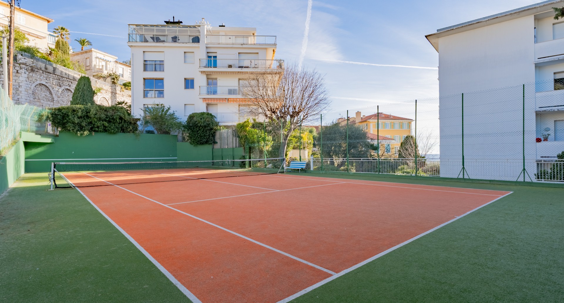 Asunnossa on valoisa olohuone, puoliavoin keittiö, kaksi makuuhuonetta, joissa kummassakin on oma kylpyhuone sekä erillinen wc. Olohuoneesta on käynti aurinkoiselle terassille. Olohuoneesta ja keittiöstä on näkymät merelle kahteen suuntaan ja postikorttimaisema satamaan ja Nizzan kuuluisalle rantakadulle. Taloyhtiössä on uima-allas, tenniskenttä ja talonmies. Asuntoon kuuluu ulkoparkkipaikka.
