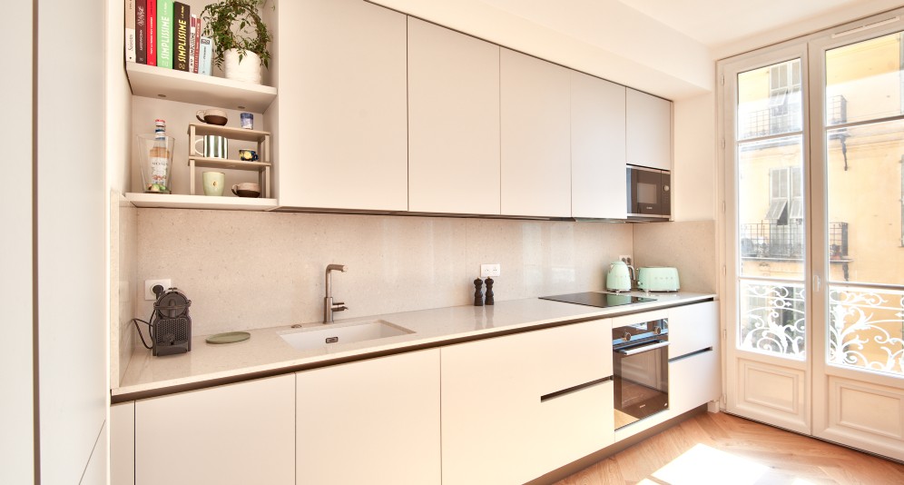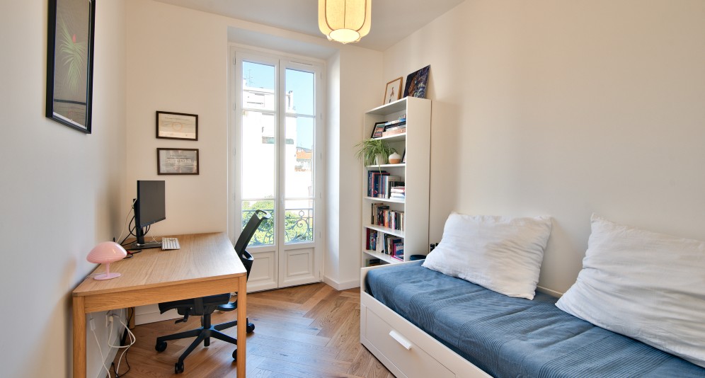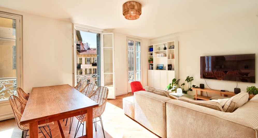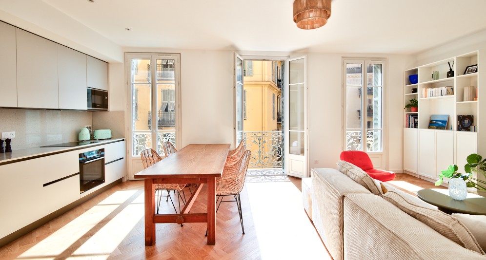 Nizzan keskustan Libérationin suositussa kaupunginosassa, korkeatasoisessa taloyhtiössä sijaitseva, täysin remontoitu asunto, jossa paljon vanhan ajan charmia.