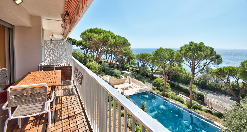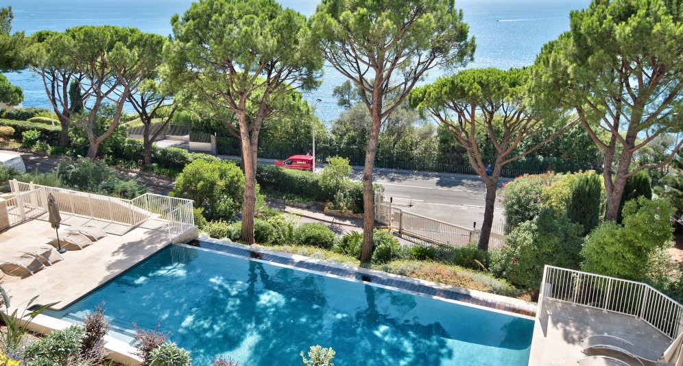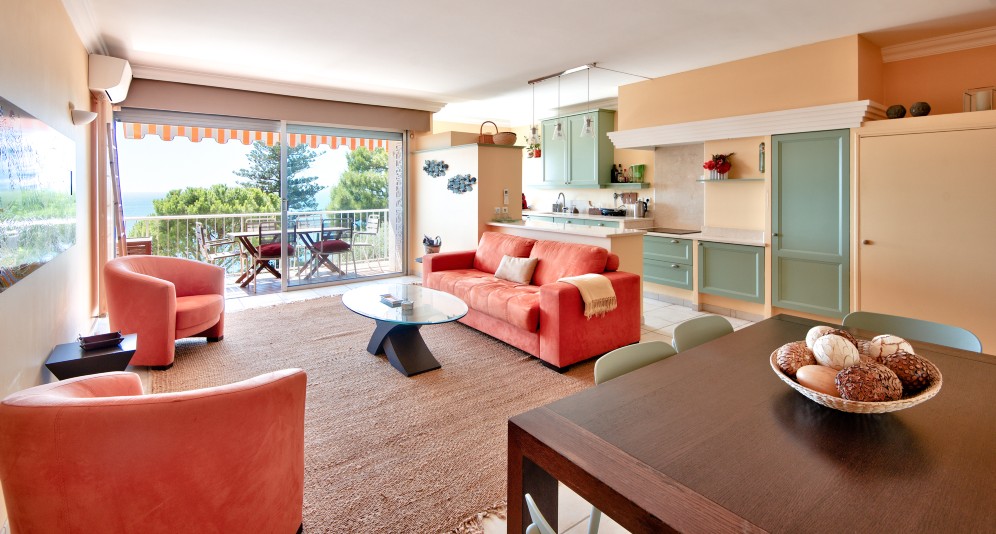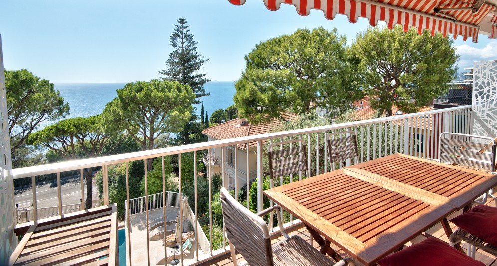 Nizzan Mont-Boronin parhaalla alueella, hyvin arvostetussa taloyhtiössä sijaitseva läpitalon asunto, jolta upeat näkymät merelle.