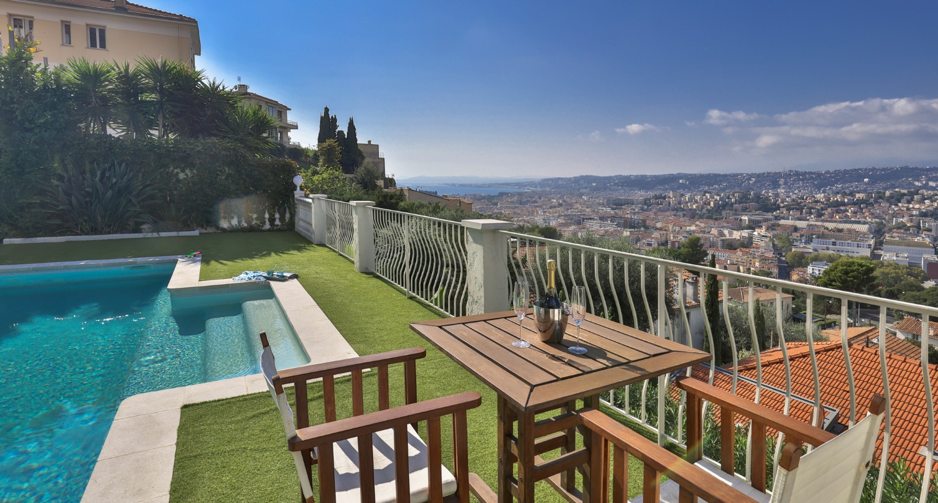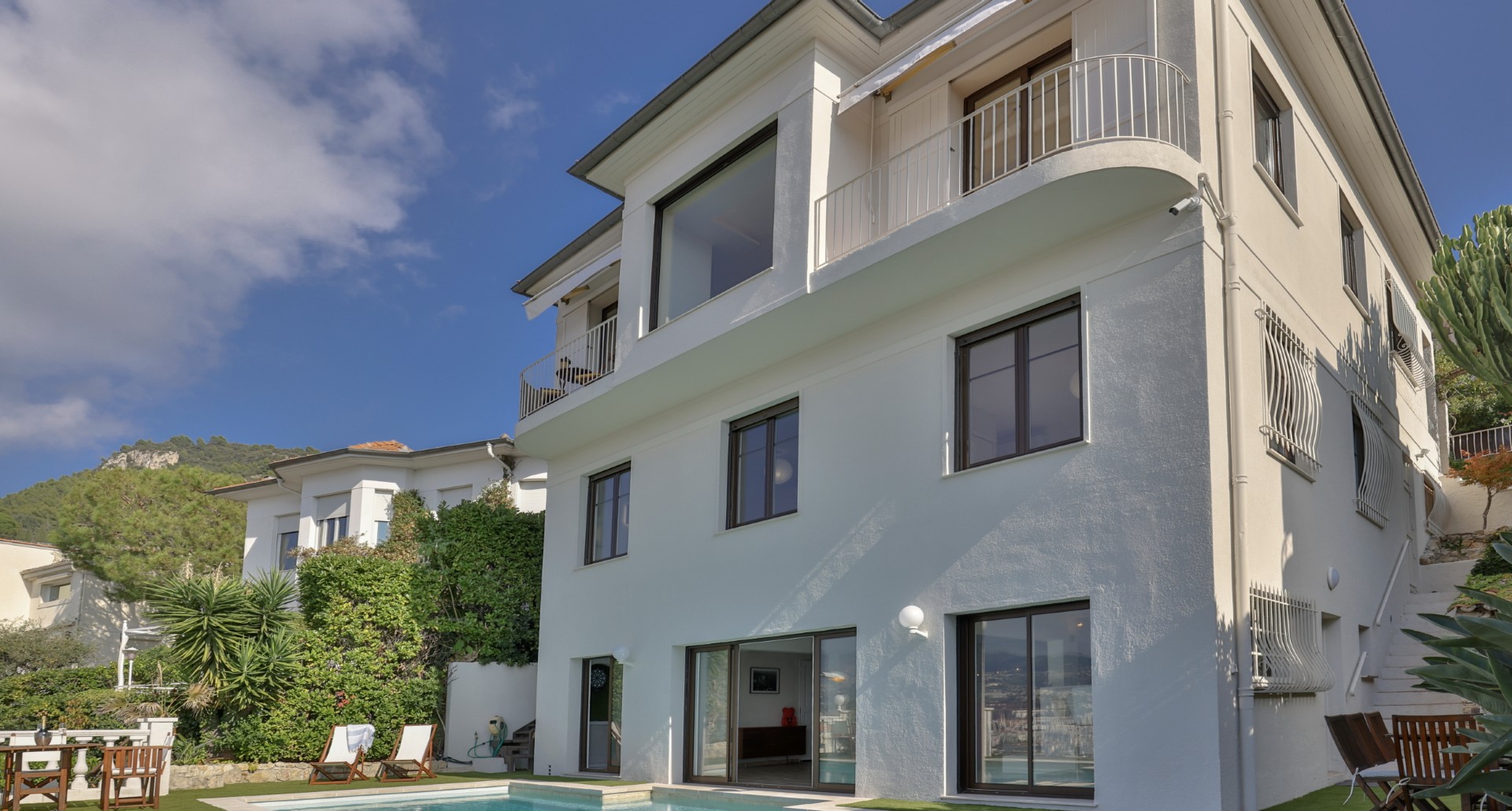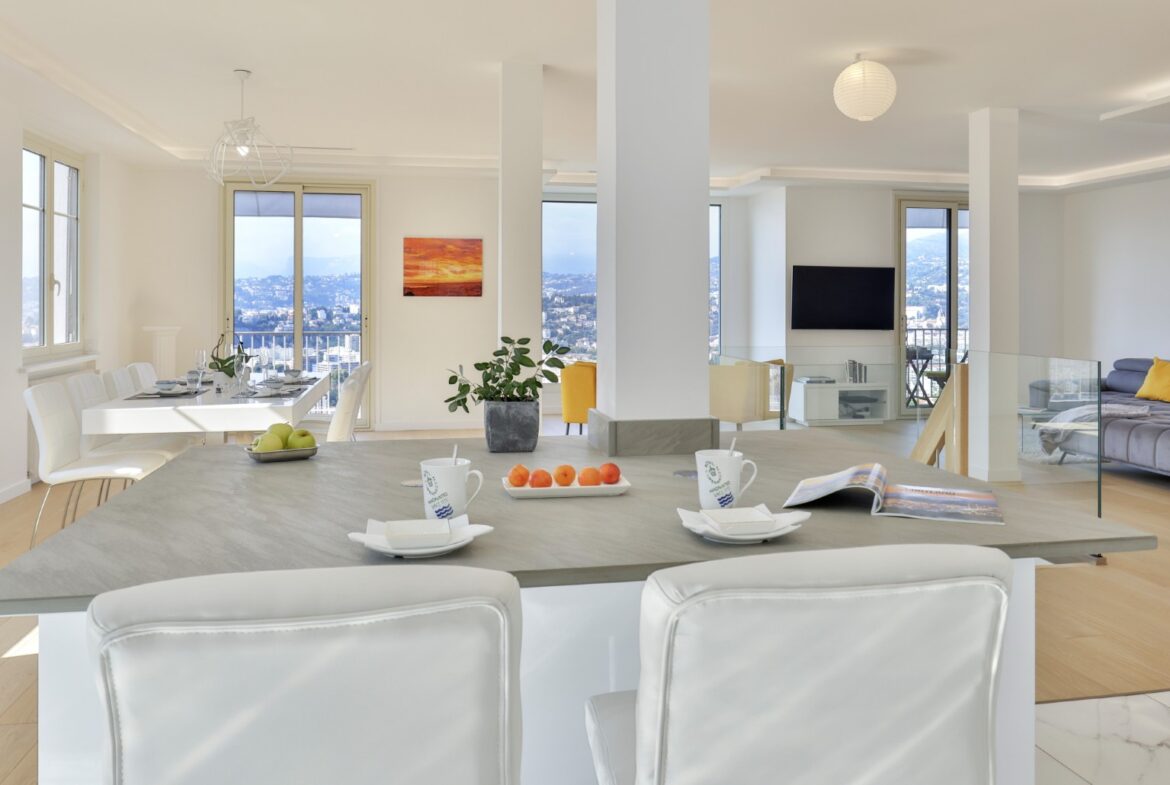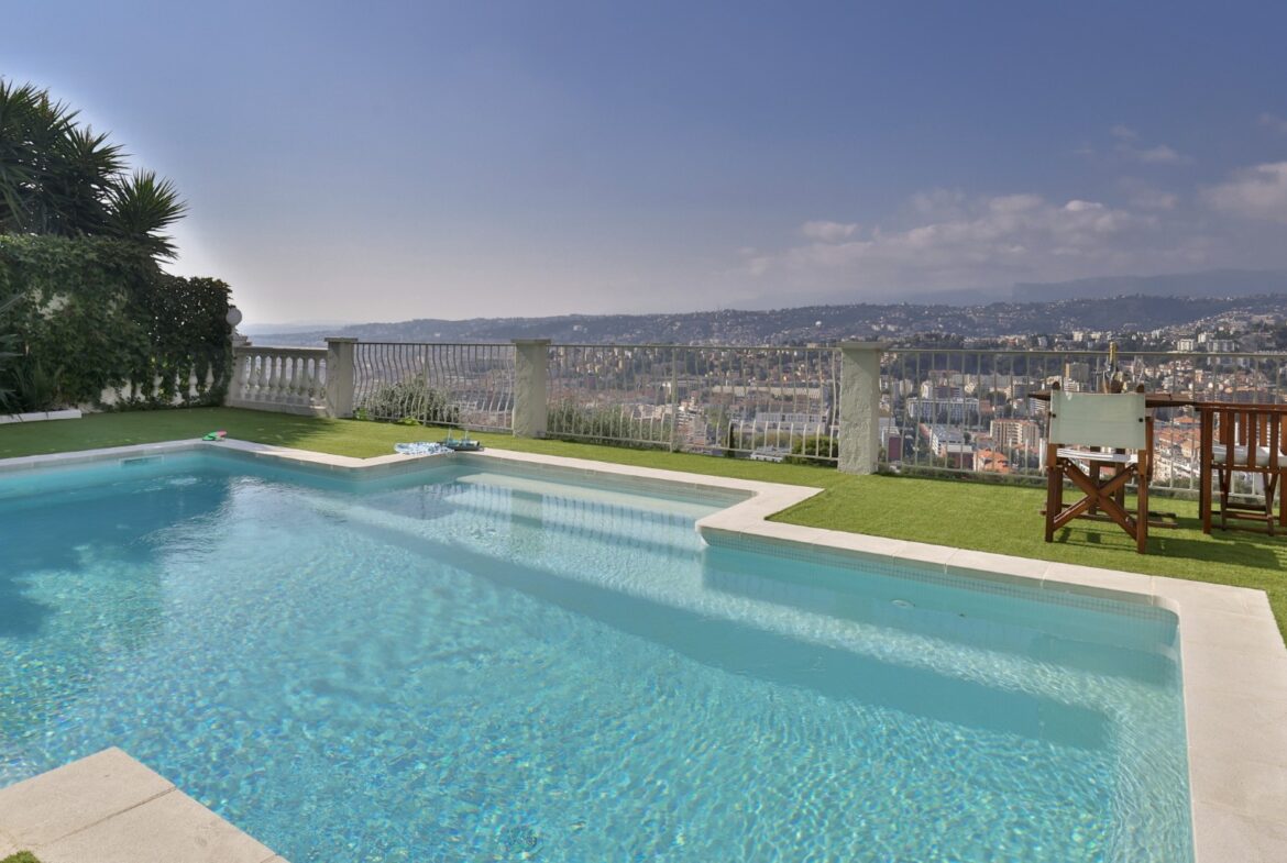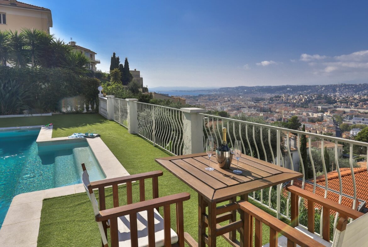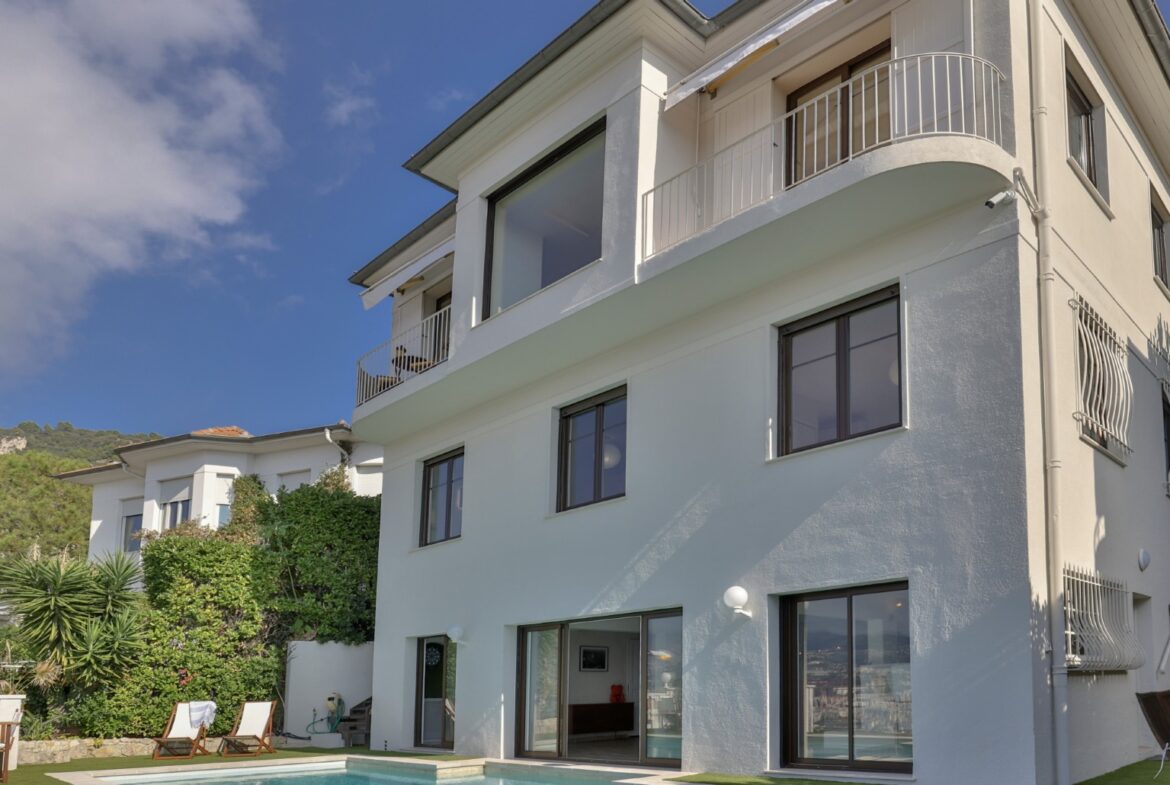 Nizzan Mont-Boron-kukkulalla sijaitseva, täysin remontoitu huvila, jolta aukeaa upeat näkymät Nizzan kaupungin ylle, merelle ja kukkuloille.