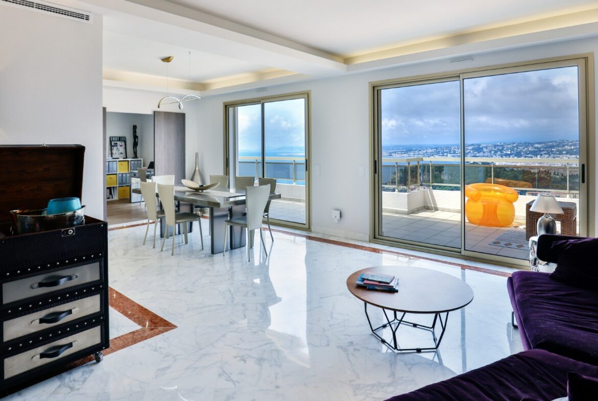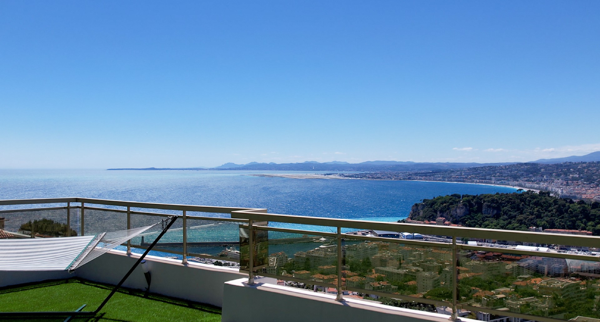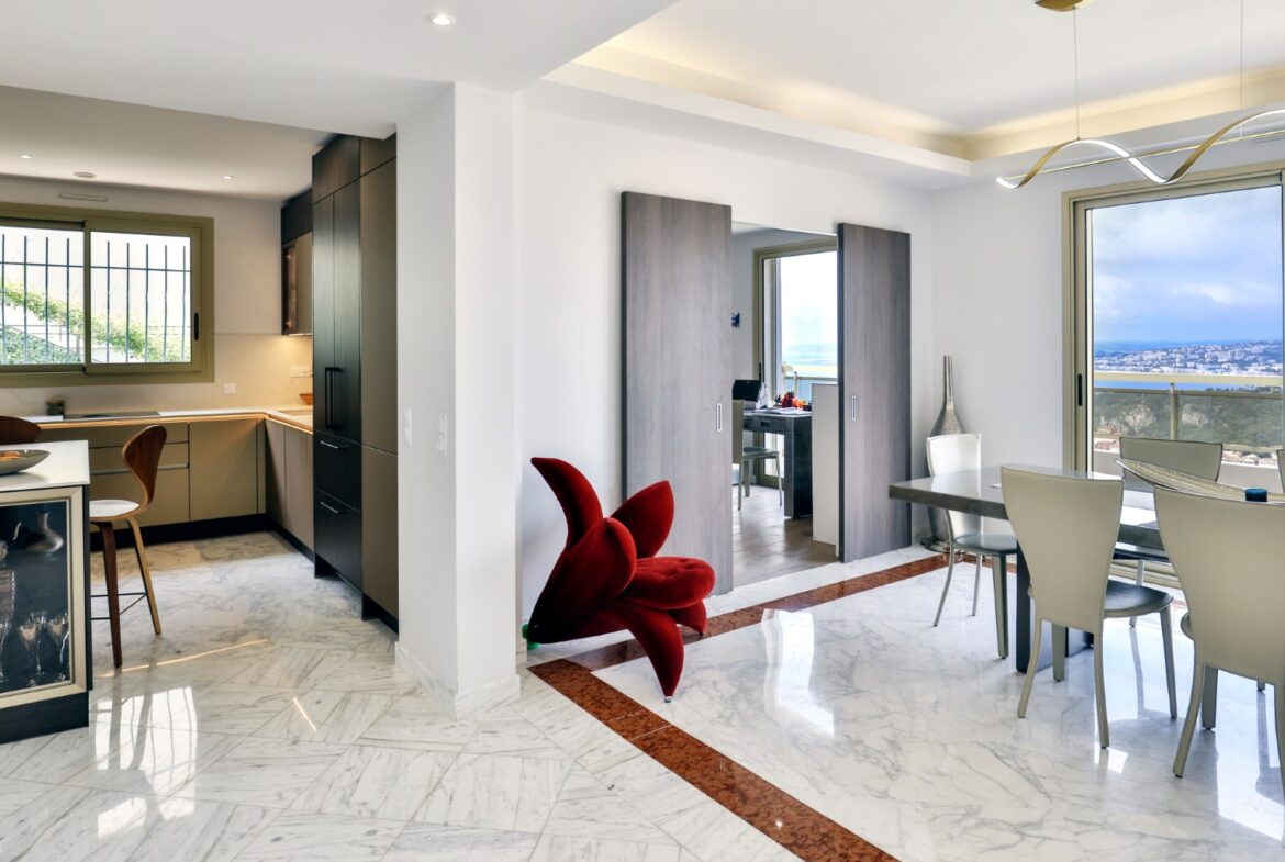 Monesta huoneesta aukeaa huikeat panoraamanäkymät merelle ja Nizzan kaupungin ylle. Talolta on suora käynti Mont-Boronin metsäiseen puistoon ja lyhyt ajomatka sataman ja keskustan kaikkien palveluiden pariin.