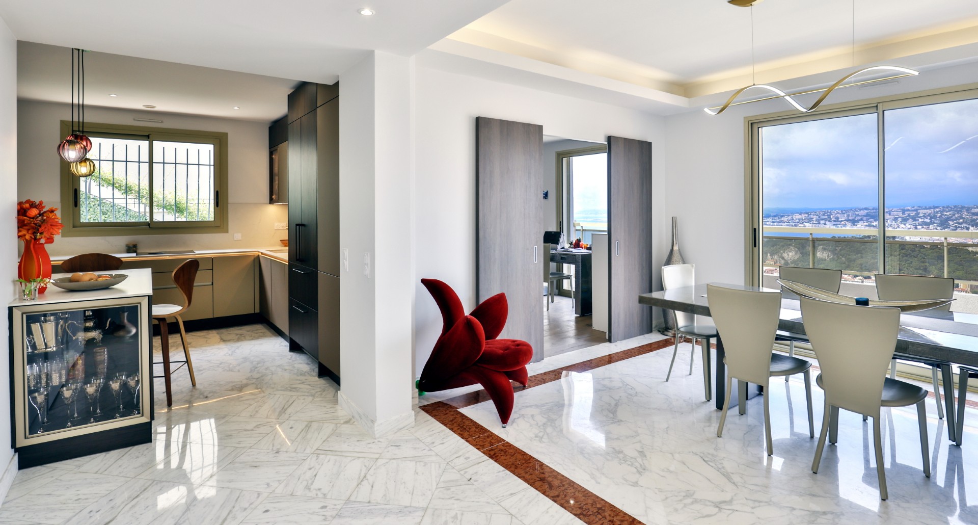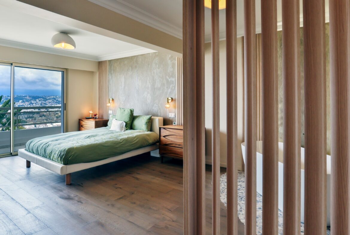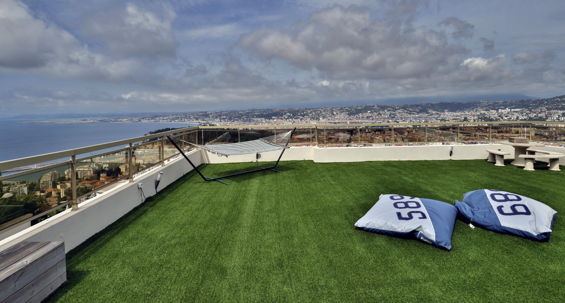 Monesta huoneesta aukeaa huikeat panoraamanäkymät merelle ja Nizzan kaupungin ylle. Talolta on suora käynti Mont-Boronin metsäiseen puistoon ja lyhyt ajomatka sataman ja keskustan kaikkien palveluiden pariin.
