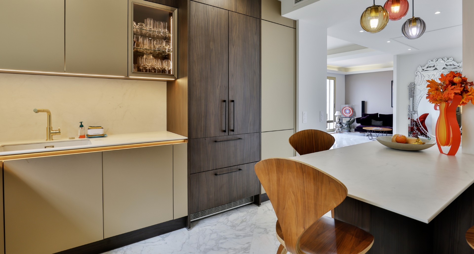 Talon sisääntulokerroksessa on eteinen, jossa hissi, joka johtaa kaikkiin kerroksiin, viinikellari ja kaksi autotallia.