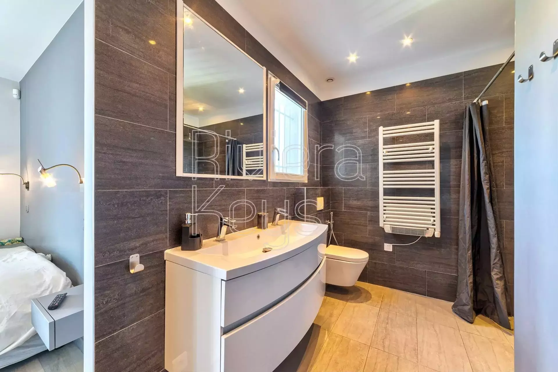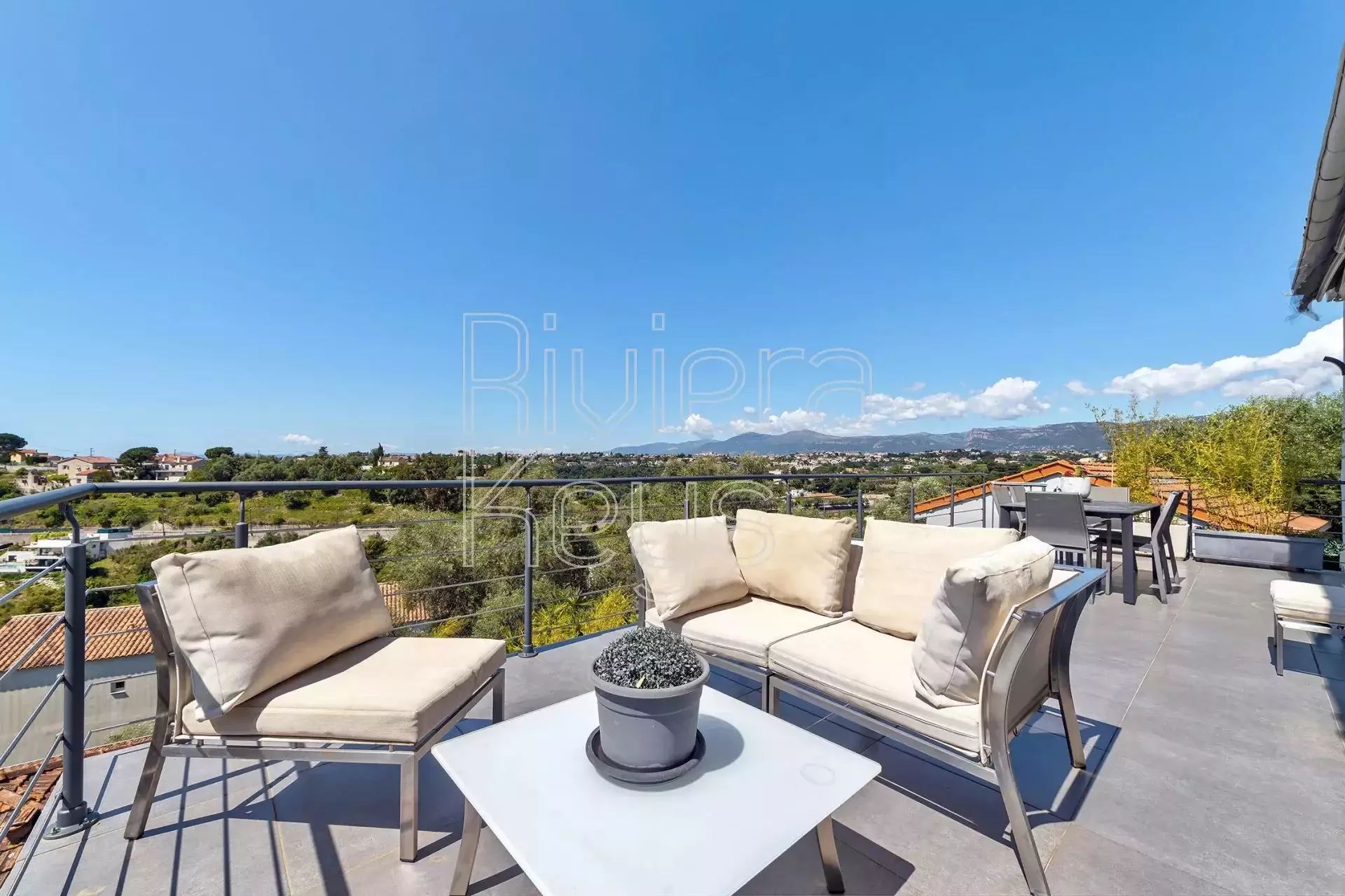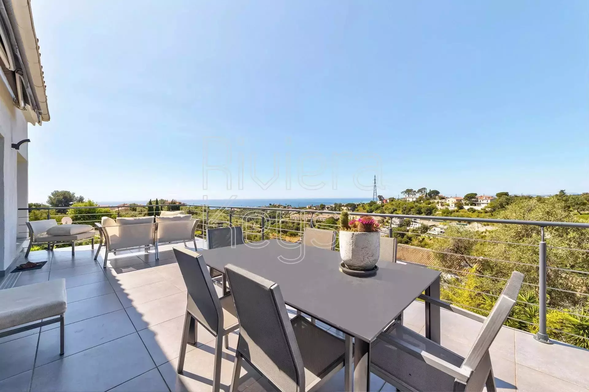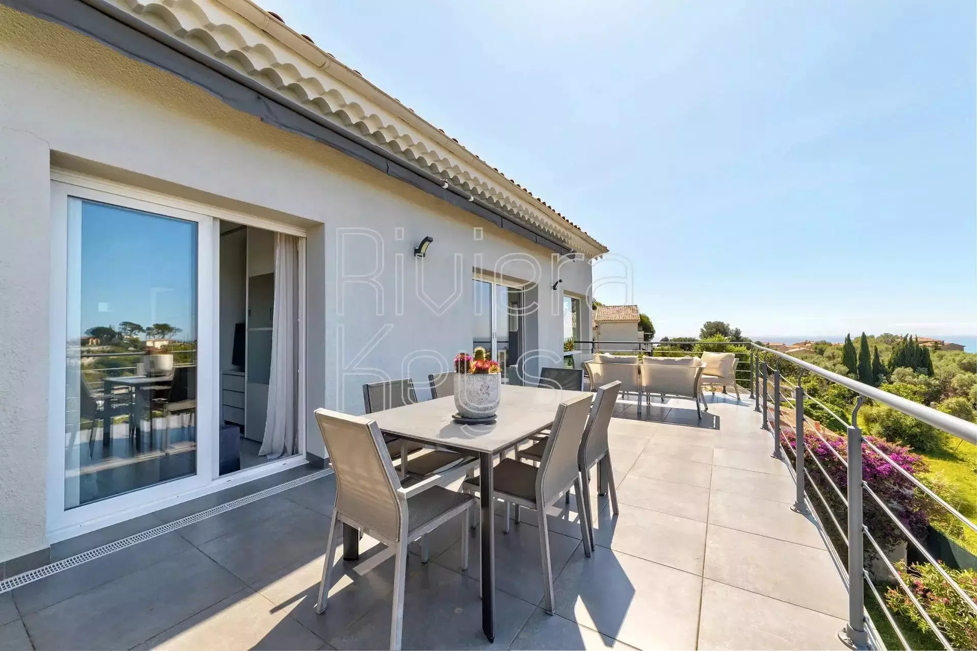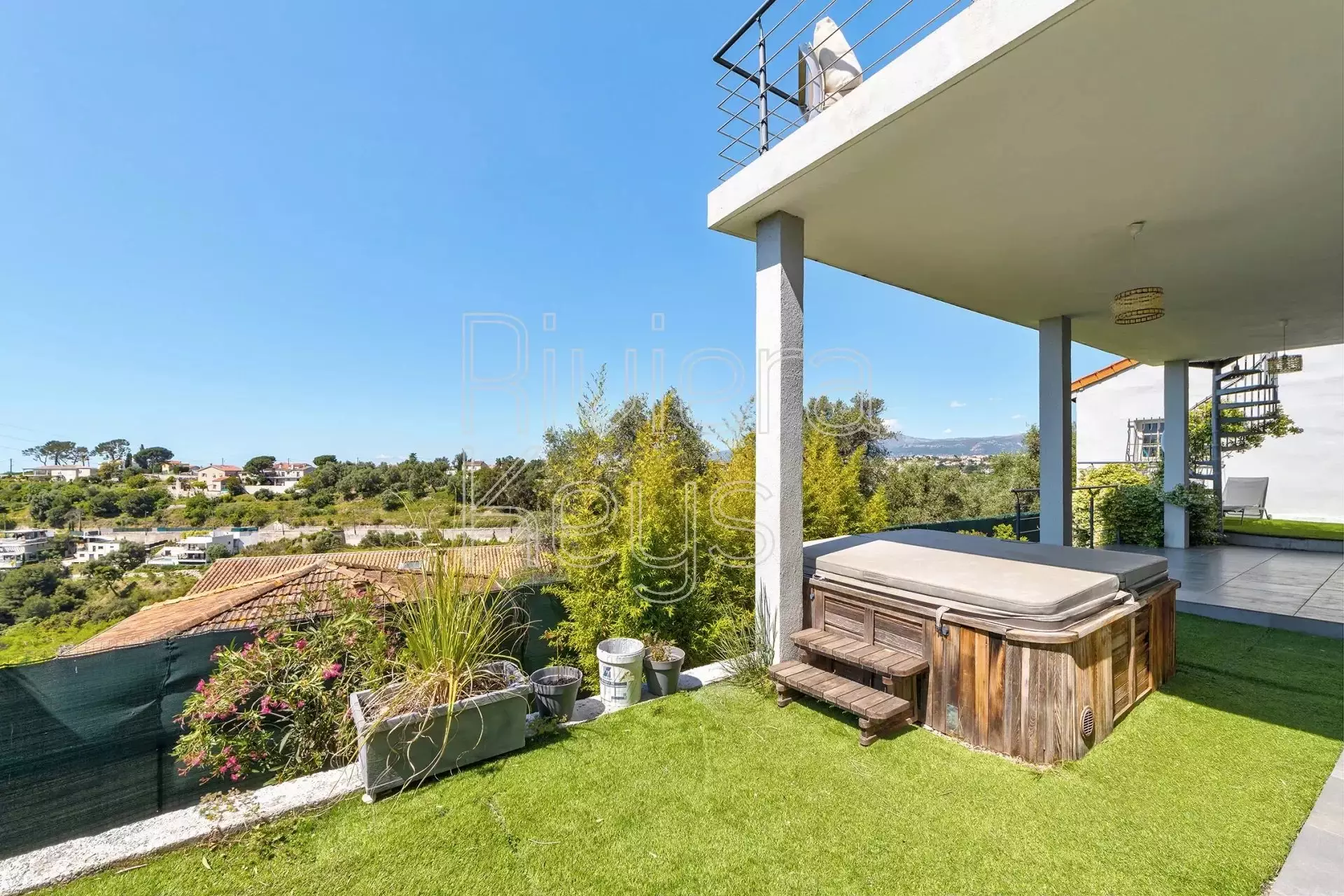Taloon kuuluu lisäksi autotalli kahdelle autolle sekä kellari. Talossa on useita terasseja, joilta aukeaa panoraamanäkymät ympäristöön ja merelle saakka. Pihalla on poreallas. Talo on remontoitu v. 2014.