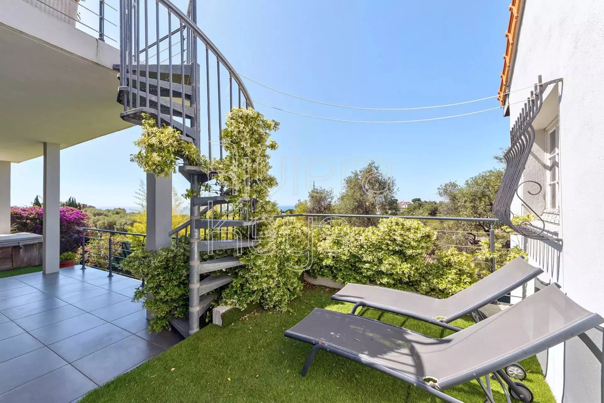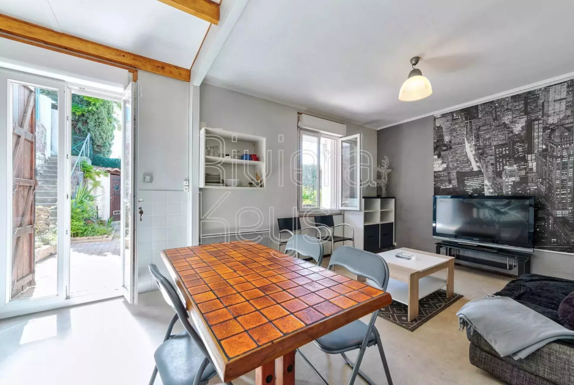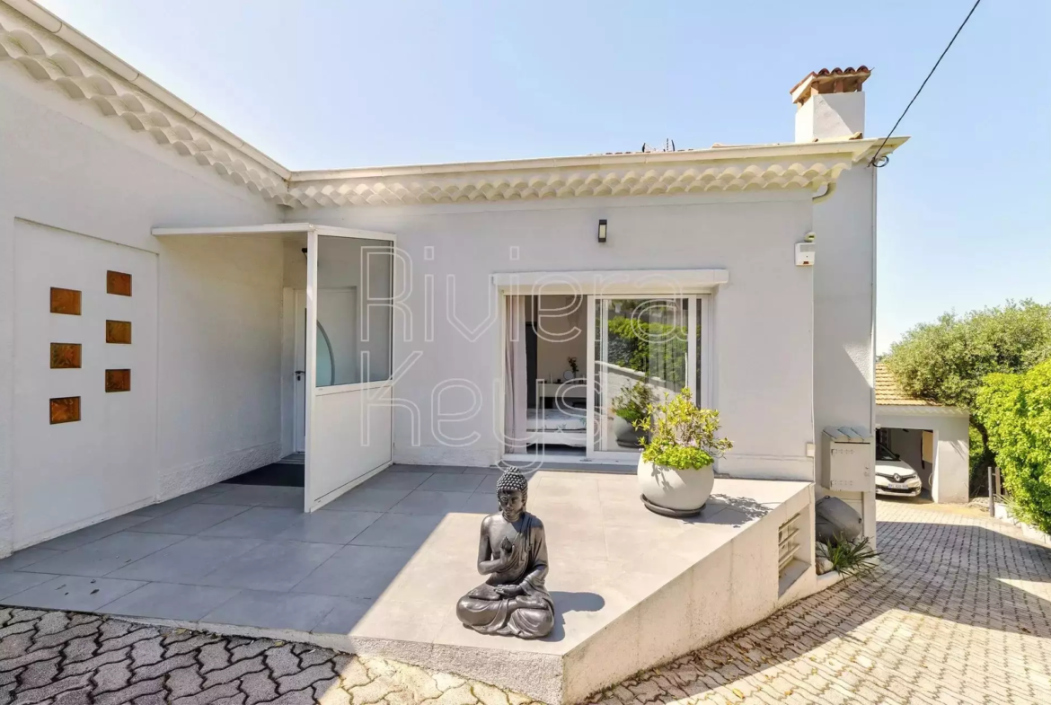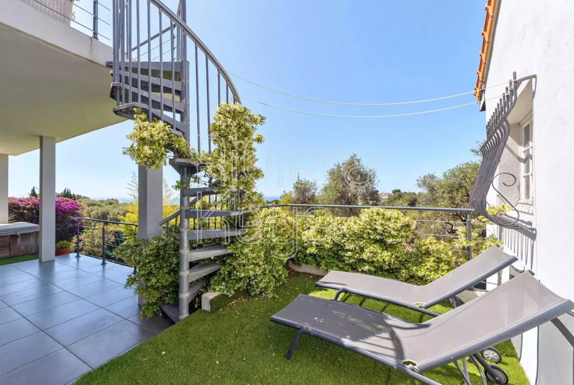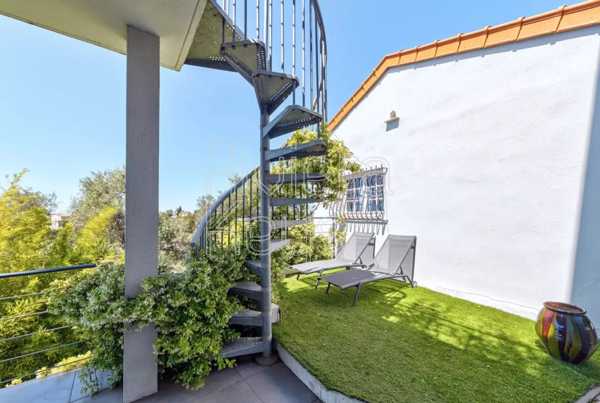 Nizzan Saint-Pierre-de-Féric’n rauhallisella kukkulalla, lähellä palveluita sijaitseva talo, joka on mahdollista jakaa kolmeksi erilliseksi asunnoksi.