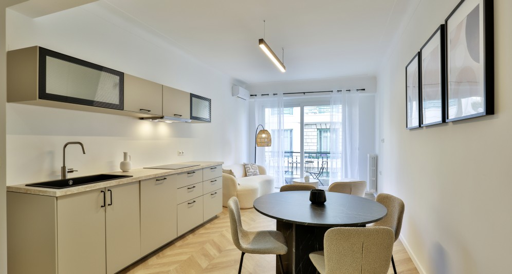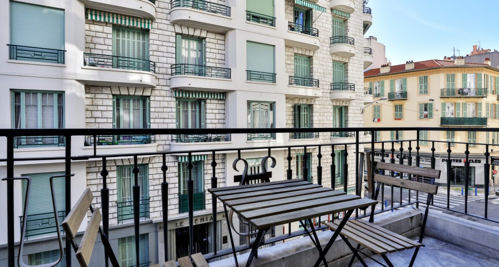 Nizzan keskustassa, Musiciens’n suositussa korttelissa sijaitseva, remontoitu läpitalon asunto, josta on lyhyt matka palveluihin, rannalle sekä julkisten pysäkeille.