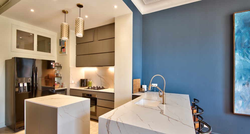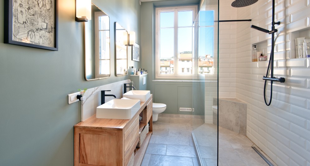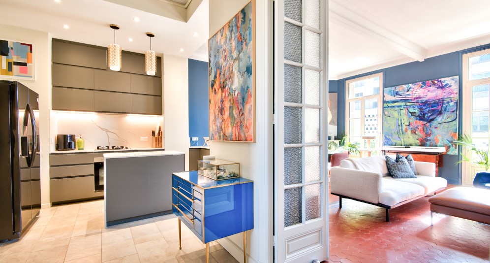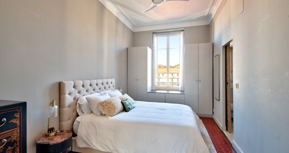 Nizzan sataman korttelissa, hyvin ylläpidetyssä nizzalaistyylisessä talossa sijaitseva, kauniisti remontoitu läpitalon asunto eteläisellä parvekkeella.