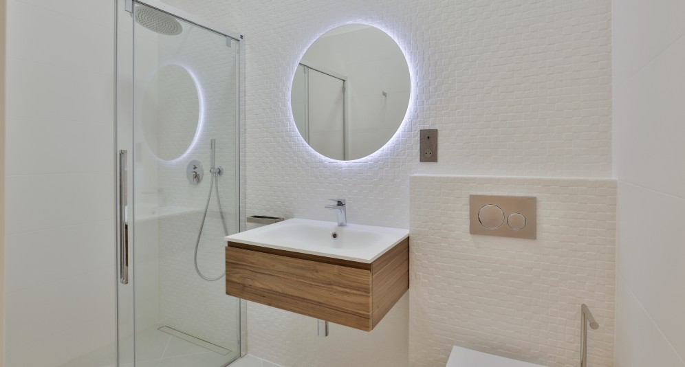 Asunnossa on eteinen, valoisa olohuone, erillinen keittiö, kolme makuuhuonetta omilla kylpyhuoneillaan sekä erillinen wc.