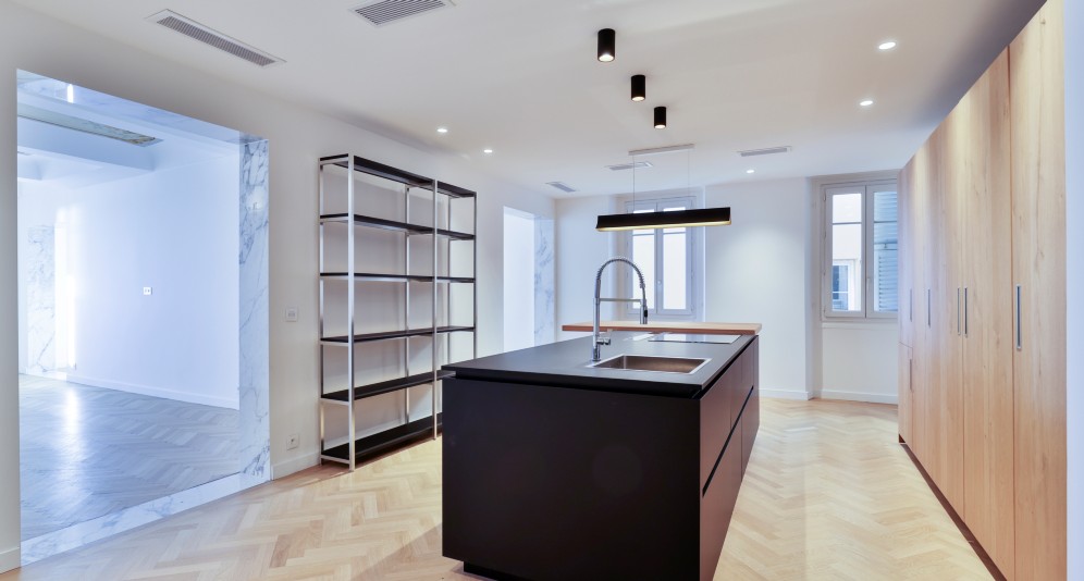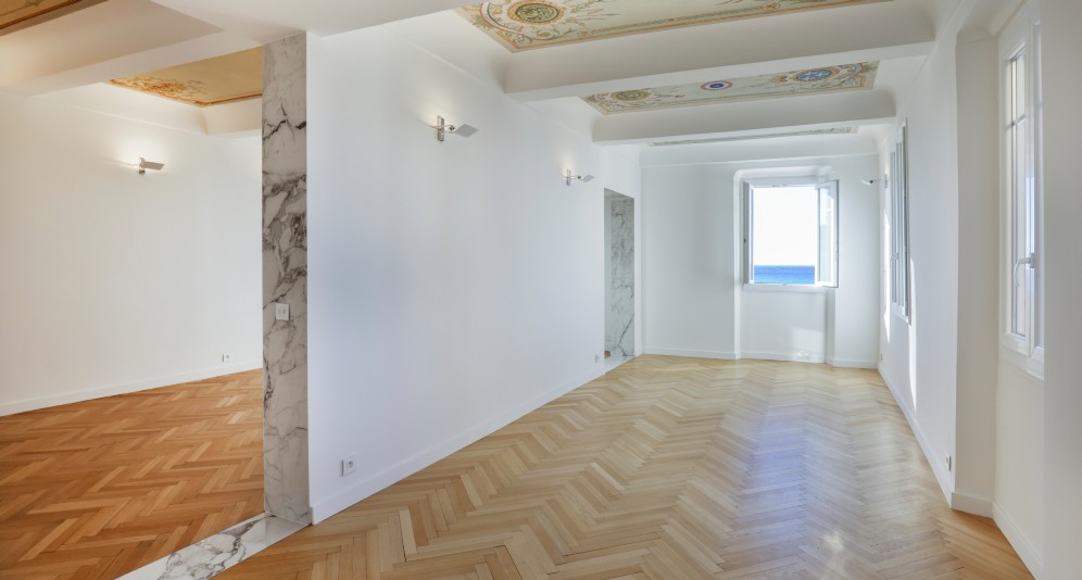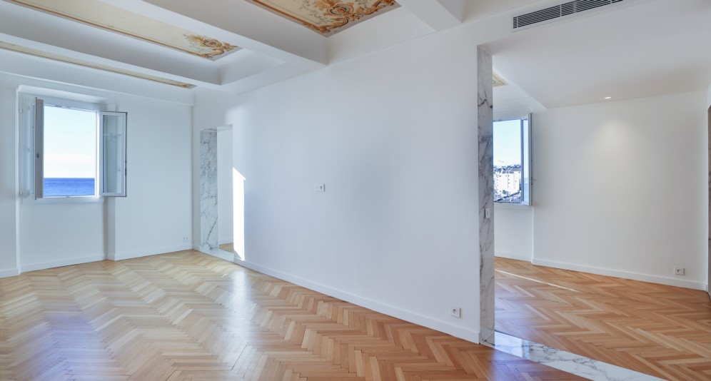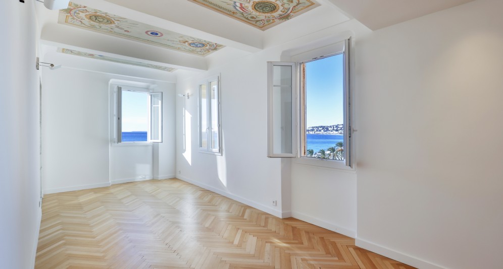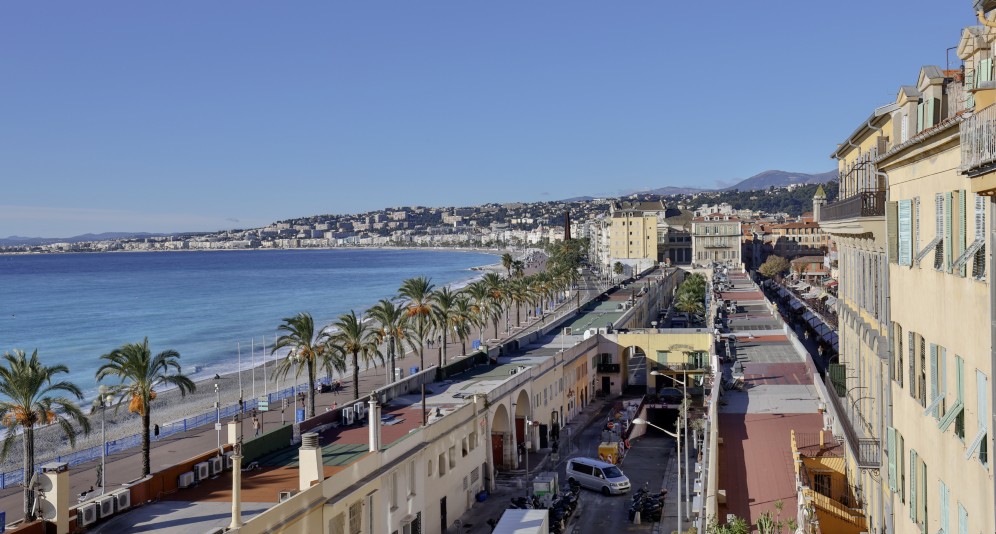 Nizzan vanhan kaupungin paraatipaikalla, rantakadusta seuraavalla kadulla, Cours Saleya -kukkaistorin vieressä sijaitseva remontoitu läpitalon asunto, jolta aukeaa upeat näkymät merelle ja Promenade des Anglais’lle.