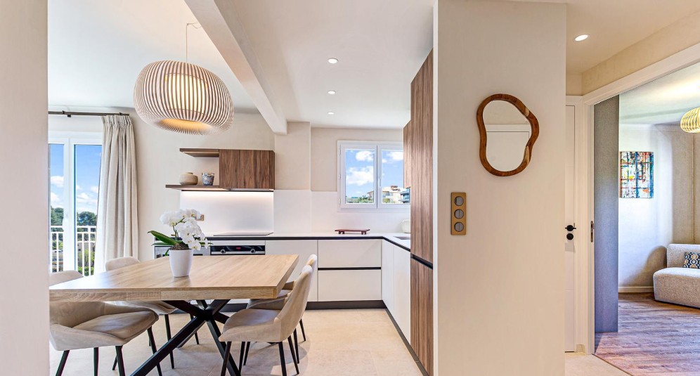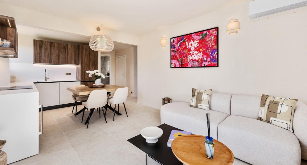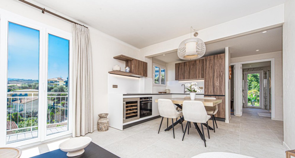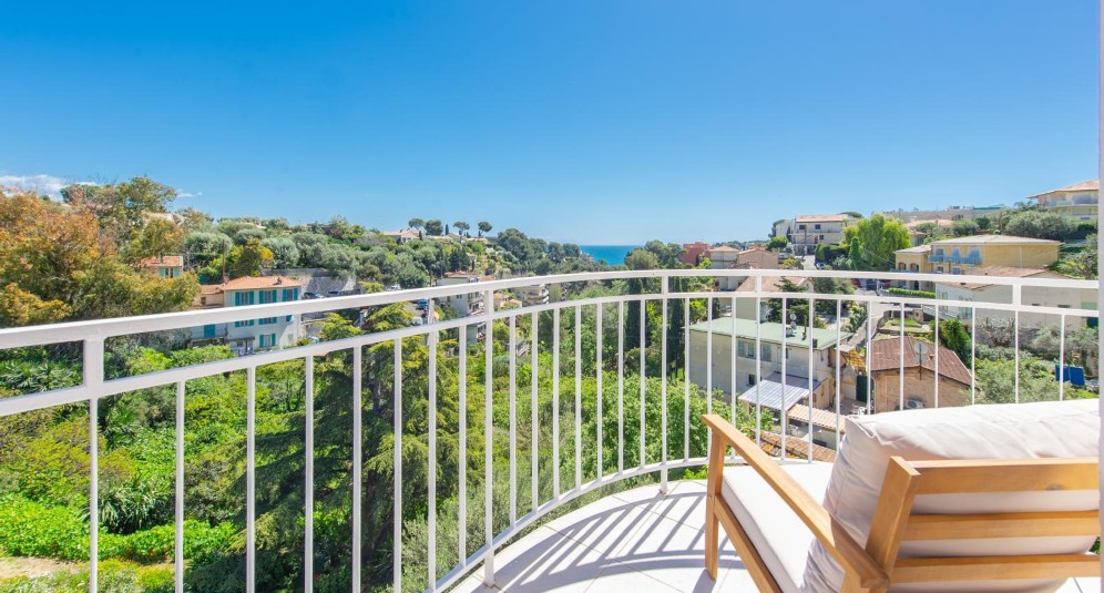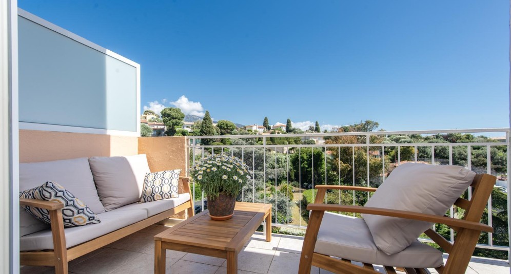Roquebrune-Cap-Martinissa, lähellä Monacoa sijaitseva, täysin remontoitu ylimmän kerroksen asunto, jolla terassi etelään ja merinäkymä.