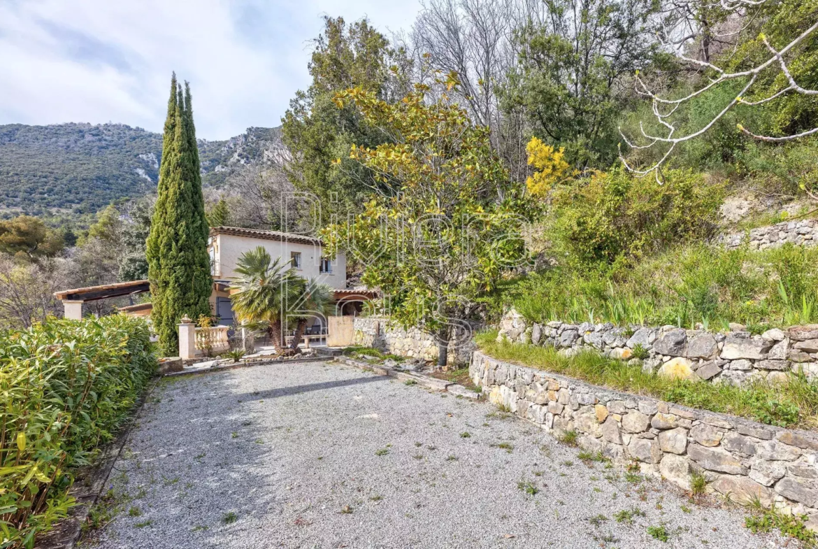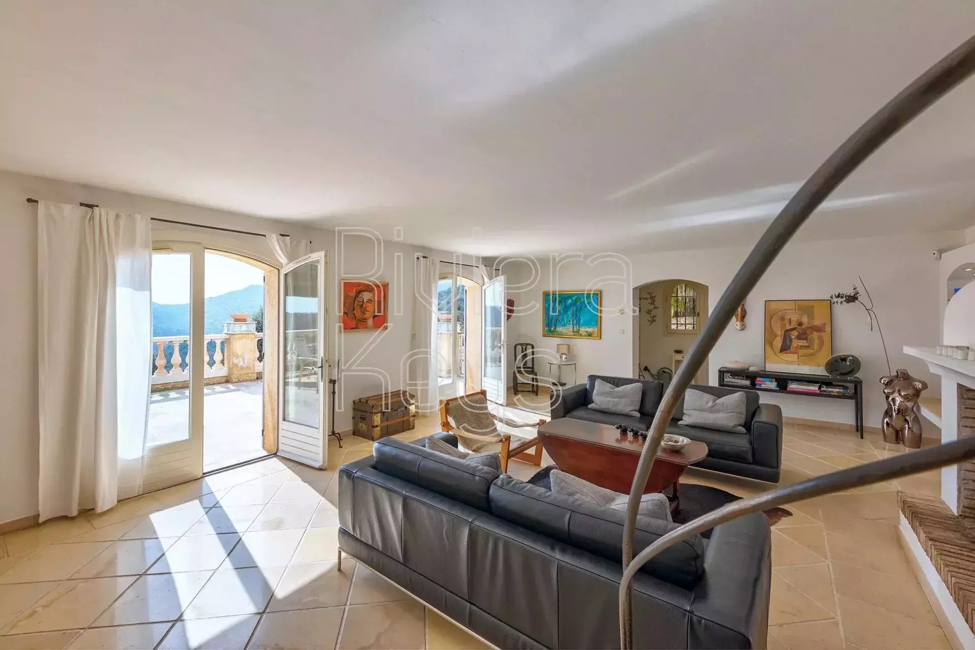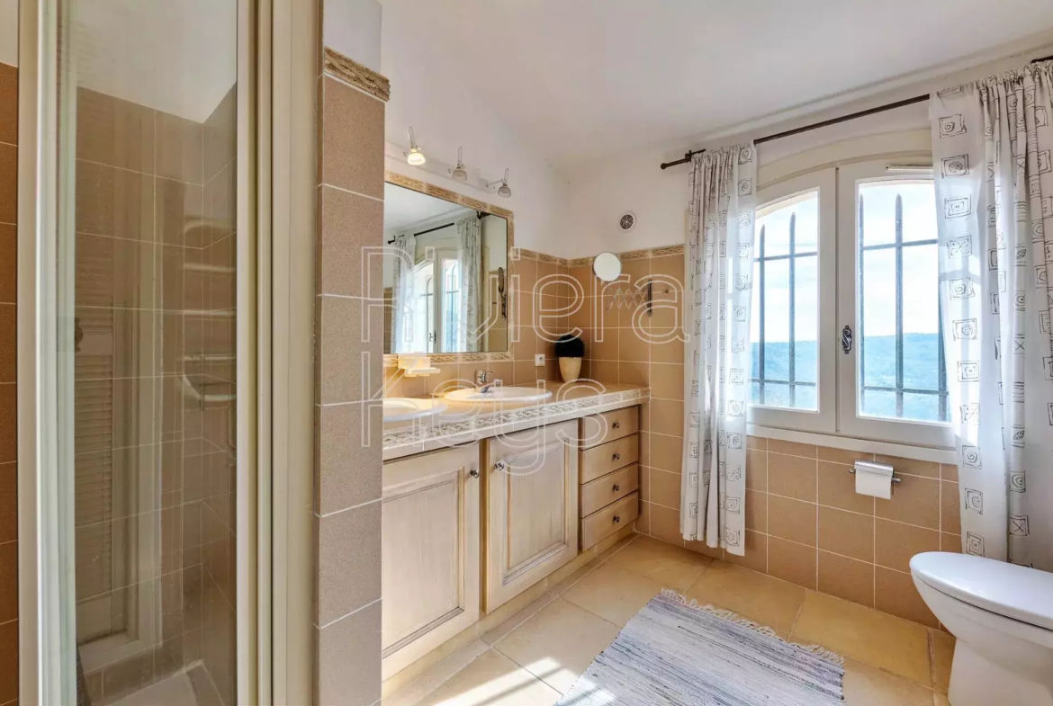 Tourrettes-sur-Loup’ssa, lyhyen ajomatkan päässä viehättävän, keskiaikaisen kylän palveluista sijaitseva talo, jolta aukeaa panoraamanäkymät merelle saakka.