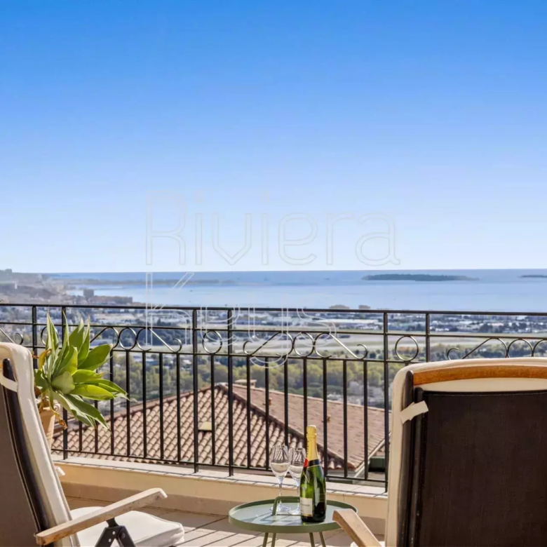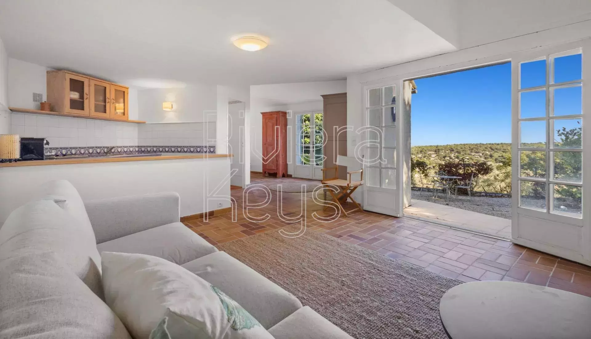 Tourrettes-sur-Loup’ssa, kävelymatkan päässä kylän keskustasta sijaitseva talo, jolta aukeaa upeat panoraamanäkymät merelle saakka.